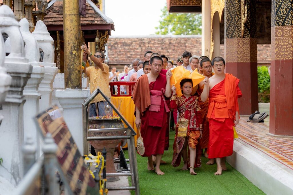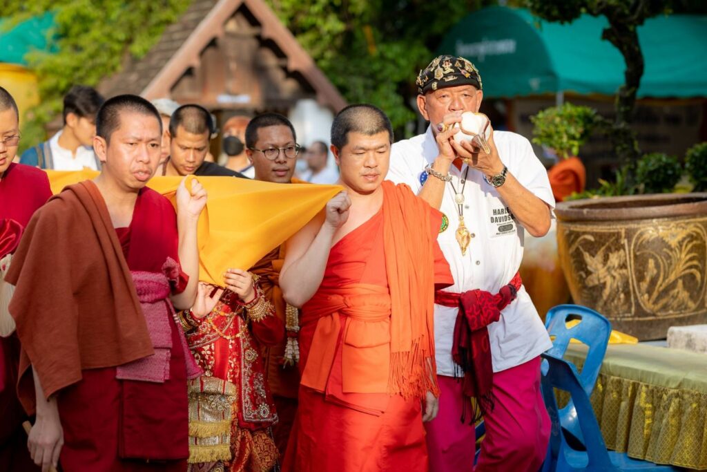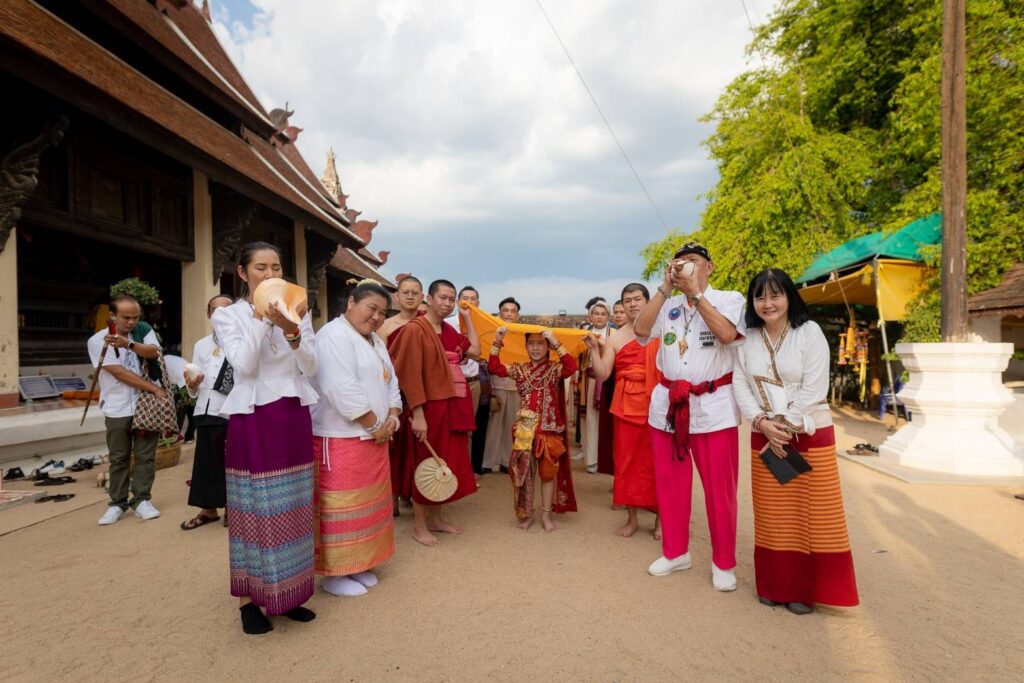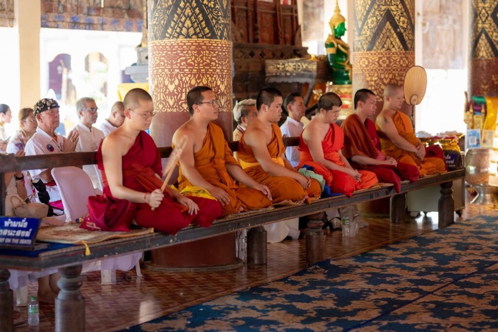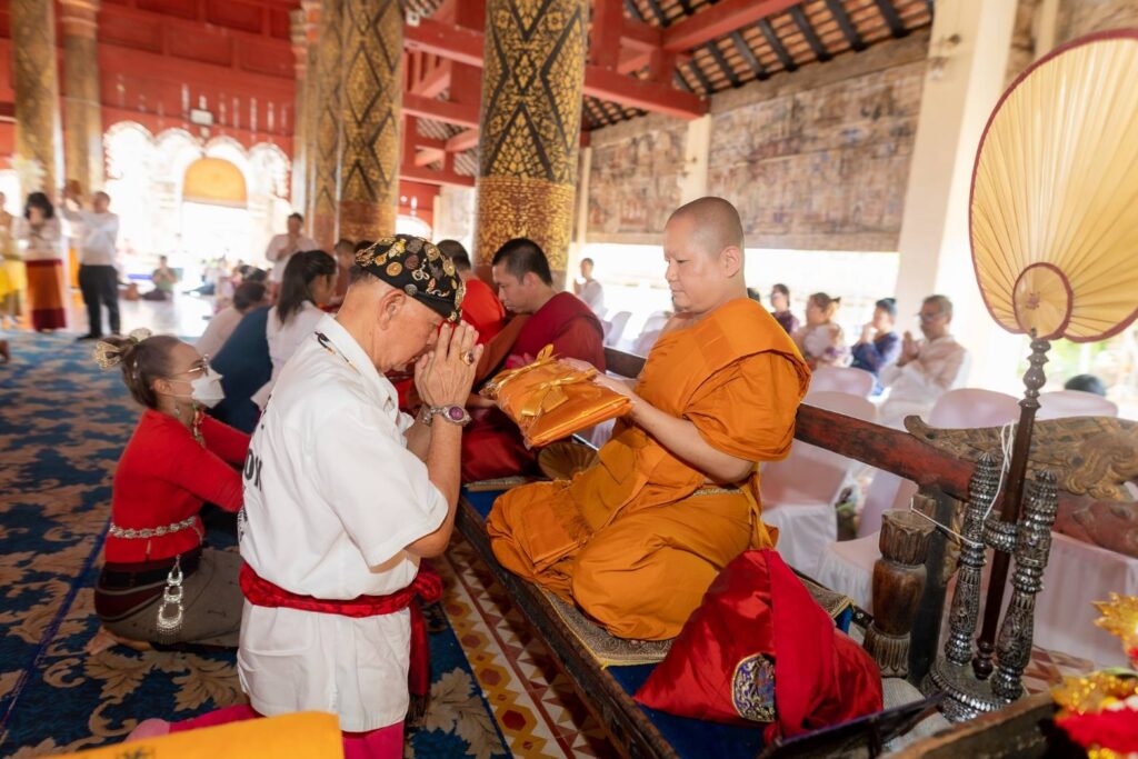 โดยได้รับความเมตตาจาก พระครูพิธานนพกิจ เจ้าอาวาส และคณะสงฆ์ทั้ง ๕ รูป ณ วัดพระธาตุลำปางหลวง อ.เกาะคา จ.ลำปาง พระครูปลัดกฤต ฐิตวิริโย (ครูบาโต) ผู้ช่วยเจ้าอาวาสวัดเจ็ดยอด พระอารามหลวง เชียงใหม่ และเจ้าอาวาสวัดพระบาทปางแฟน อ.ดอยสะเก็ด จ.เชียงใหม่, พระครูธำรงวีรพิทักษ์ เจ้าอาวาสวัดศรีมงคล อ.แม่ทา จ.ลำพูน, พระครูสถิตพัฒนโสภณ เจ้าอาวาสวัดทาดอยครั่ง อ.แม่ทา จ.ลำพูน, พระปลัดชัชวาล โชติปญฺโญ เจ้าอาวาสวัดทาหมื่นข้าว อ.แม่ทา จ.ลำพูน, พระอธิการภาณณริณทร์ ภูริญาโณ เจ้าอาวาส วัดวังธาร ดอยสะเก็ด จ.เชียงใหม่, พระสุกฤษฏิ์ ปริชาโน รักษาการแทนเจ้าอาวาสวัดบ้านถ้ำ(หัวนาค) อ.เชียงดาว จ.เชียงใหม่ และ พระมหามิลัน ปัญญาเสฏโฐ วัดพระธาตุดอยสะเก็ด พระอารามหลวง อ.ดอยสะเก็ด จ.เชียงใหม่ เข้าร่วมในพิธีสงฆ์