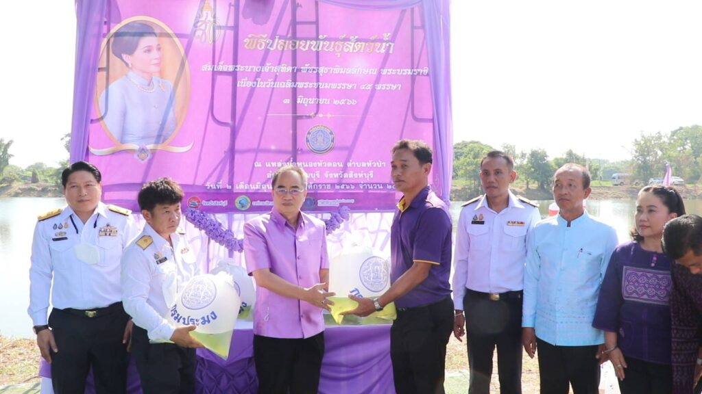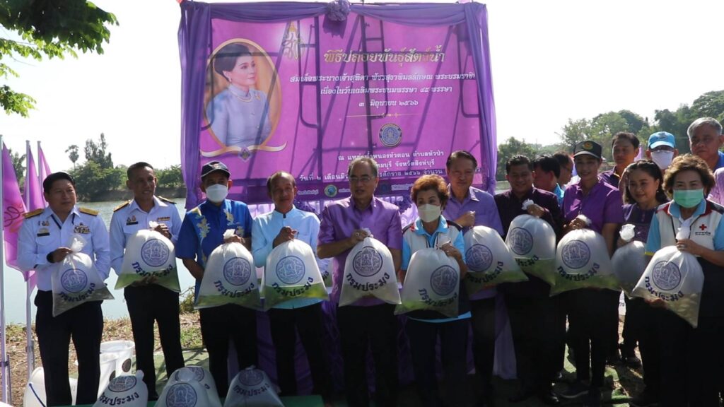 วันที่ 2 มิถุนายน 2566 เวลา 9.00 น.นายสุพจน์ ยศสิงห์คำ ผู้ว่าราชการจังหวัดสิงห์บุรี เป็นประธานในพิธีปล่อยพันธุ์สัตว์น้ำและปลูกต้นไม้ เนื่องในวันเฉลิมพระชนมพรรษา สมเด็จพระนางเจ้าสุทิดา พัชรสุธาพิมลลักษณ์ พระบรมราชินี วันที่ 3 มิถุนายน เป็นวันเฉลิมพระชนมพรรษา โดยมี นายสัมฤทธิ์ กองเงิน พร้อมนายสมชาย ลีหล้าน้อย รองผู้ว่าราชการจังหวัดสิงห์บุรี ปลัดจังหวัดสิงห์บุรี นายอำเภอพรหมบุรี ประมงจังหวัดสิงห์บุรี หัวหน้าส่วนราชการ จิตอาสา นายกองค์การบริหารส่วนตำบลโรงช้าง กำนัน ผู้ใหญ่บ้าน และประชาชนชาวตำบลโรงช้าง ร่วมกันปล่อยพันธุ์สัตว์น้ำจำนวน 200,000 ตัว และปลูกต้นทองอุไร เฉลิมพระเกียรติ แสดงความจงรักภักดี และถวายเป็นพระราชกุศลแด่สมเด็จพระนางเจ้าฯพระบรมราชินี เพื่อให้หน่วยงานภาครัฐ ภาคเอกชนและประชาชนมีส่วนร่วมเพิ่มผลผลิตพันธุ์สัตว์น้ำในแหล่งน้ำธรรมชาติ จำนวน 2 แห่งได้แก่ แหล่งน้ำหนองหัวดอน และแหล่งน้ำหนองสาหร่ายตอน 2