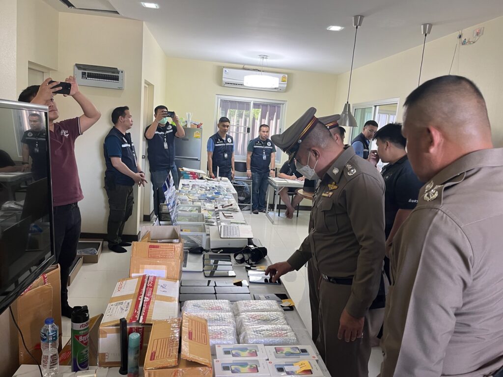 สำหรับการจับกุมครั้งนี้ เนื่องจากได้มีผู้ร้องเรียนมายังเจ้าหน้าที่ชุดจับกุม ศปอส.ภ.จว.เชียงใหม่ ว่าถูกกลุ่มแก๊งคอลเซ็นเตอร์แอบอ้างว่าเป็นเจ้าหน้าที่กรมสรรพากรติดต่อผู้ร้องเรียน(ไม่ประสงค์ออกนาม) โดยใช้โทรศัพท์มือถือหมายเลข 0621432569 โทรเข้ามาและข่มขู่ให้เกิดความตกใจกลัว จึงได้มาแจ้งเจ้าหน้าที่ตำรวจให้ติดตามสืบสวนตามเบาะแสและข้อเท็จจริงที่เกิดขึ้น จากการสืบสวนทางเทคนิค พบว่าหมายเลขโทรศัพท์ 0621432569 มีพิกัดการใช้พื้นที่บริเวณบ้านแห่งหนึ่งใน ต.สันทรายน้อย อ.สันทราย จ.เชียงใหม่ จึงได้รวบรวบพยานหลักฐานทั้งหมดที่เกี่ยวข้องและขออนุมัติศาลจังหวัดเชียงใหม่ ออกหมายค้น ซึ่งศาลจังหวัดเชียงใหม่ อนุมัติหมายค้น ตามหมายค้นที่ ค.218/2566 ลง 1 มิถุนายน 2566
