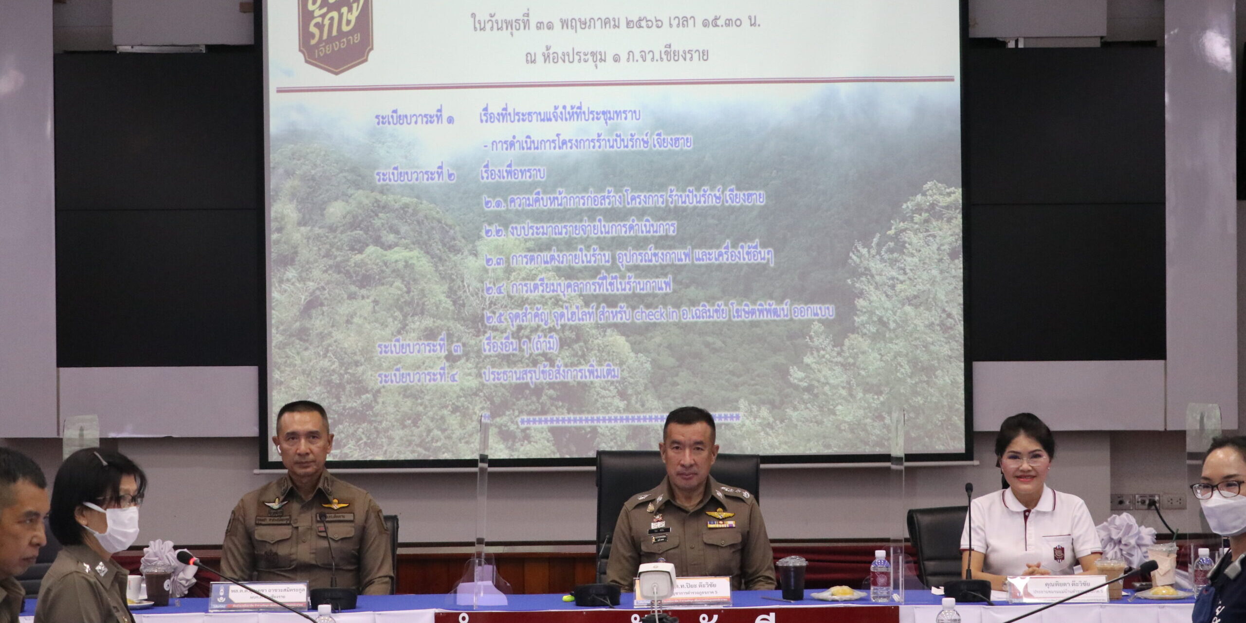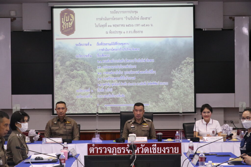 พล.ต.ท.ปิยะ ต๊ะวิชัย ผบช.ภ.5 พร้อมคุณพิยดา ต๊ะวิชัย ประธานชมรมแม่บ้านตำรวจภูธรภาค 5 ,พล.ต.ต.ดุลเดชา อาชวะสมิตระกูล ผบก.ภ.จว.เชียงราย ,ข้าราชการตำรวจ ภ.จว.เชียงราย และชมรมแม่บ้านตำรวจภูธรจังหวัดเชียงราย ได้ร่วมกันประชุมการดำเนินการโครงการร้านปันรักษ์เชียงราย ณ ห้องประชุม ภ.จว.เชียงราย