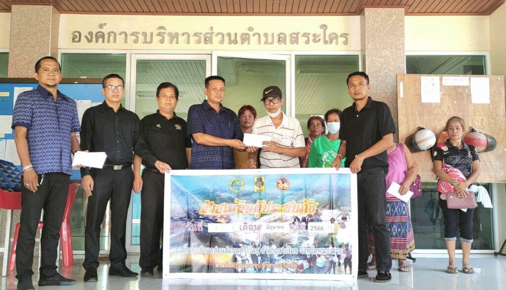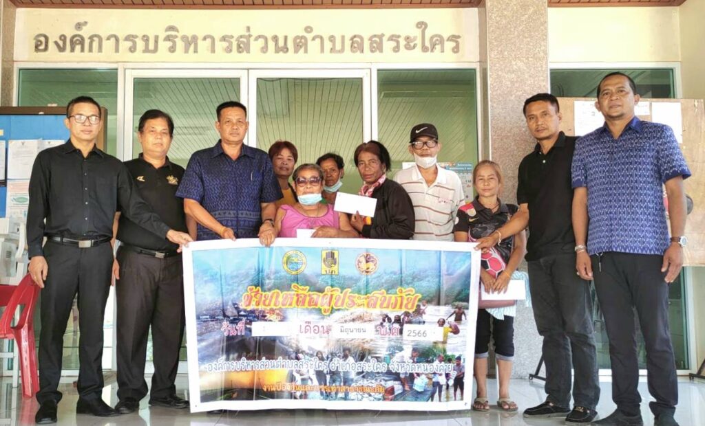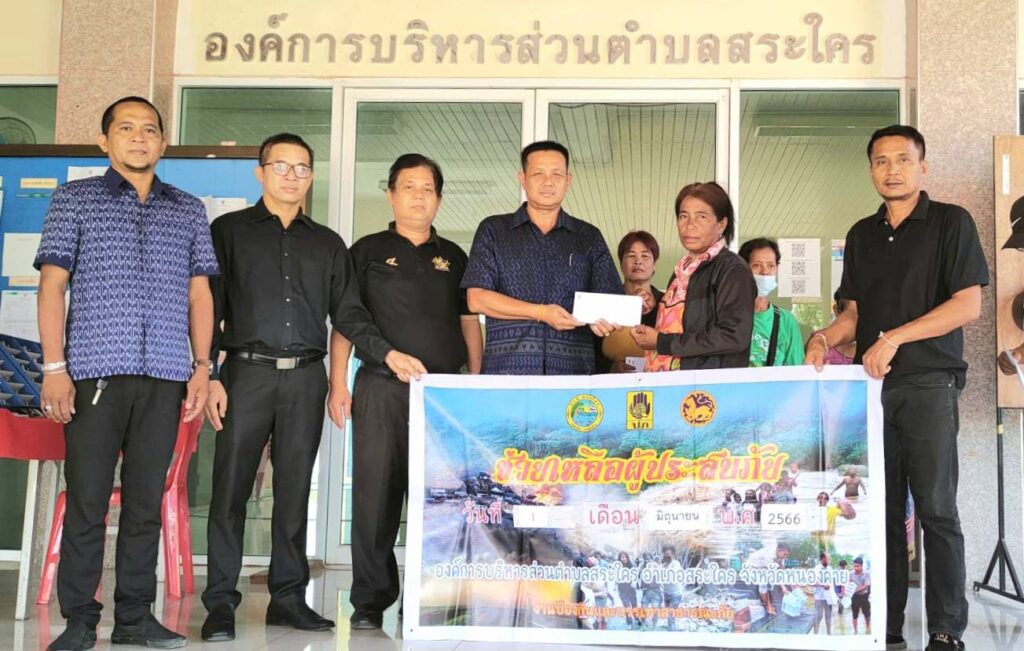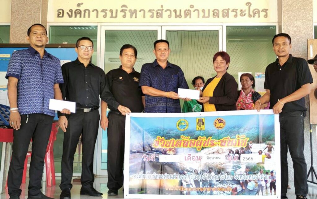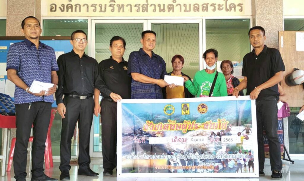 เนื่องจากในช่วงเดือนพฤษภาคม 2566 ที่ผ่านมาได้เกิดสถานการณ์พายุพัดถล่ม ส่งผลให้บ้านเรือนประชาชนในหมู่ที่ 13 บ้านโนนธงชัย ตำบลสระใคร อำเภอสระใคร จังหวัดหนองคาย ได้รับเสียหาย จำนวน 7 หลังคาเรือน จากเหตุการณ์ดังกล่าว อบต.สระใคร โดย นายสมนึก รัตนะคุณ นายกองค์การบริหารส่วนตำบลสระใคร พร้อมคณะ ได้ร่วมนำเงินมาช่วยเหลือเยียวยาให้กับประชาชนที่ได้รับผลกระทบเพื่อบรรเทาความเดือดร้อนต่อไป