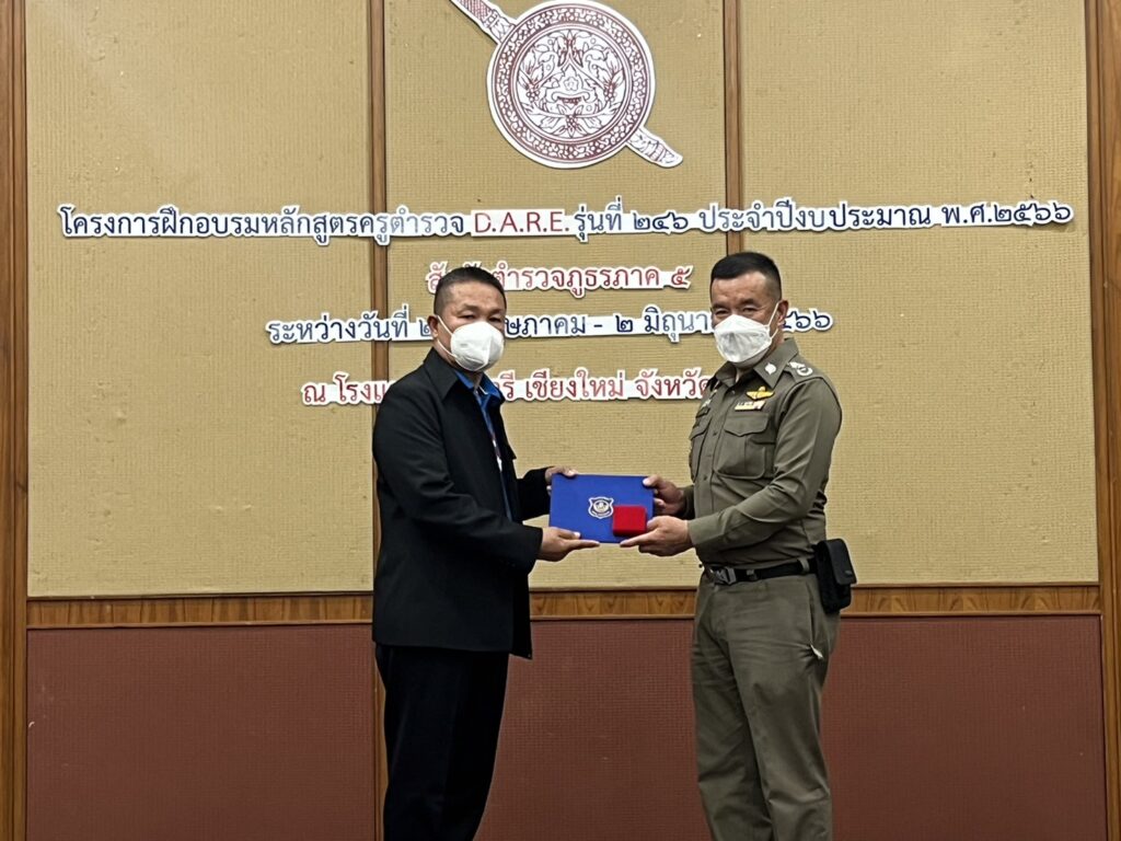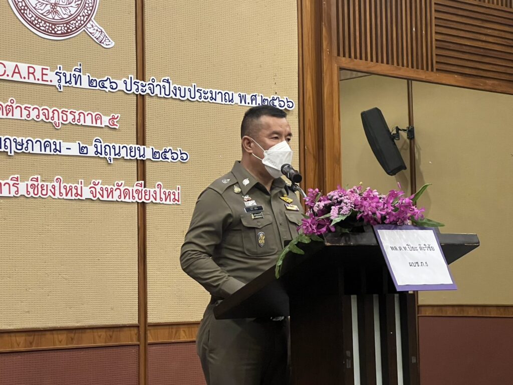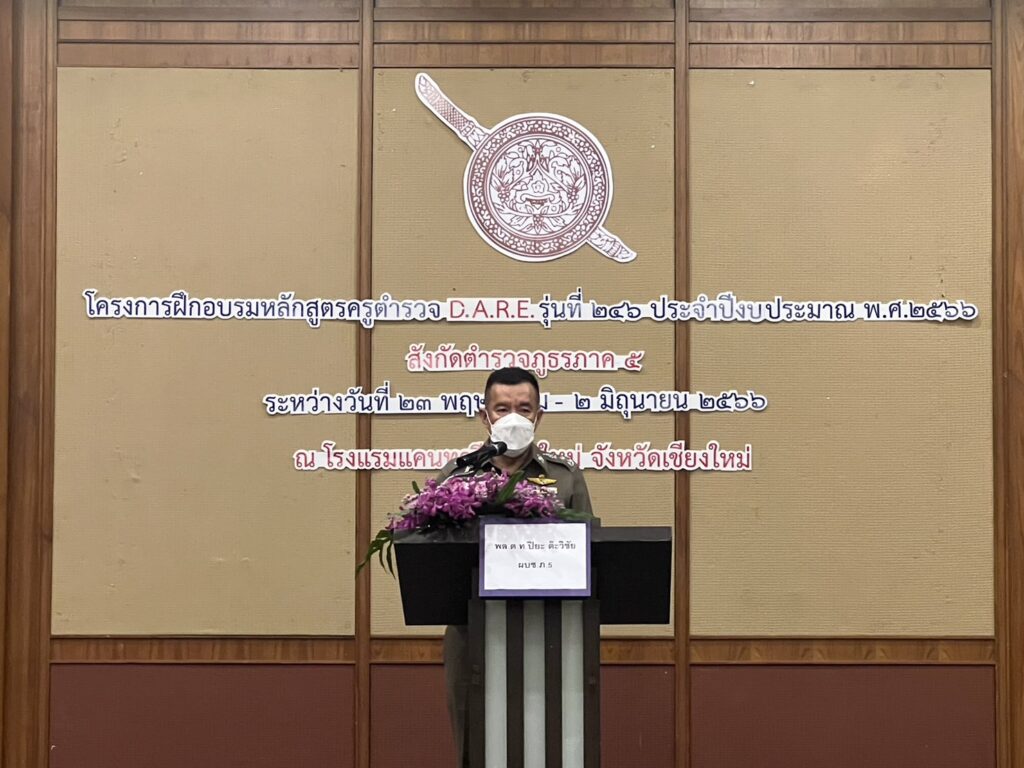 พล.ต.ท.ปิยะ ต๊ะวิชัย ผบช.ภ.5 ได้มาเป็นประธานพิธีปิดการฝึกอบรมและมอบโอวาท มอบเกียรติบัตรหลักสูตรครูตำรวจ D.A.R.E. รุ่นที่ 246 ประจำปีงบประมาณ 2566 ตำรวจภูธรภาค 5 ซึ่งได้ดำเนินการฝึกอบรมระหว่างวันที่ 23 พ.ค.- 2 มิ.ย. 66 โดยมี พล.ต.ต.พฤทธิพงษ์ ประยูรศิริ รอง ผบช.ภ.5 ,คุณสุกันยา ใหญ่วงศ์ ผอ.ส่วนประสานพื้นที่ ปปส.ภ.5 , แขกผู้มีเกียรติ และ ผู้เข้ารับการอบรมจำนวน 50 นาย ร่วมพิธีปิด ณ ห้องดอยสุเทพ โรงแรมแคนทารี อ.เมืองเชียงใหม่