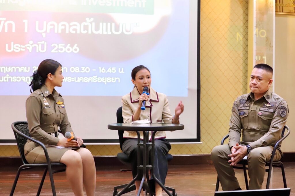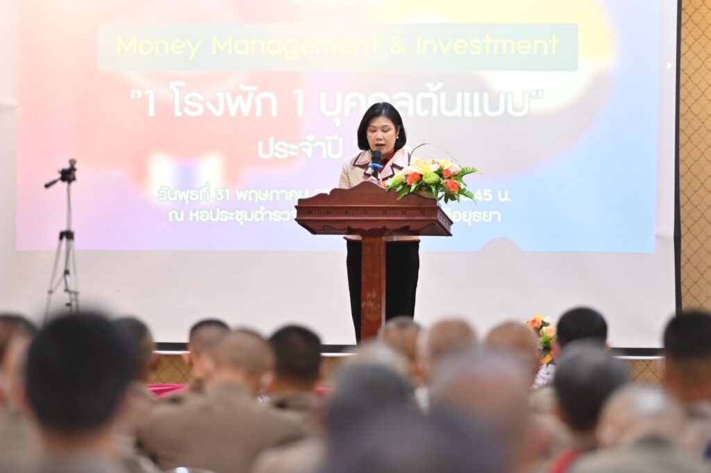 เมื่อวันที่ 31 พ.ค.66 : คุณสุมนา กิตติประภัสร์ นายกสมาคมแม่บ้านตำรวจ เป็นประธานเปิดการอบรมโครงการ Money Management and Investment ให้กับข้าราชการตำรวจภูธรจังหวัดพระนครศรีอยุธยา ห้องประชุมตำรวจภูธรจังหวัดพระนครศรีอยุธยา โดยมีคุณณฐิกา ปิตะนีละบุตร กรรมการบริหารสมาคมแม่บ้านตำรวจและที่ปรึกษาโครงการ,คุณโยทะกา วัฒน์นครบัญชา กรรมการบริหารสมาคมฯ,พล.ต.ต.ชยานนท์ มีสติ ผบก.ภ.จ.พระนครศรีอยุธยา,คุณสุดา พฤกษจำรูญ ประธานแม่บ้าน ภ.จ.อ่างทอง,คุณปาริชาติ พุทไธสง รองประธานแม่บ้าน ภ.จ.พระนครศรีอยุธยา และคุณพรรณวดี ลดาวัลย์ ณ อยุธยา ผู้ช่วยผู้จัดการ หัวหน้ากลุ่มงานพัฒนาความรู้ตลาดทุน ตลาดหลักทรัพย์แห่งประเทศไทย เข้าร่วมพิธีเปิด โดยในการอบรมครั้งนี้ มีข้าราชการตำรวจเข้าอบรมรวมทั้งหมด 242 นายเป็น onsite จำนวน 104 นาย และออนไลน์ผ่านระบบ zoom อีก 138 นาย มี คุณชยุต ปริญญาธนกุล ผู้ทรงคุณวุฒิจากตลาดหลักทรัพย์แห่งประเทศไทย,คุณกชพร คะสุวรรณ จากกองทุนบําเหน็จบํานาญข้าราชการ เป็นวิทยากร อีกทั้งในการอบรม คุณณฐิกา ปิตะนีละบุตร ที่ปรึกษาโครงการ และ ด.ต.จิณณะ สอนอุ่น ผู้ได้รับรางวัลบุคคลต้นแบบ การพัฒนาทักษะด้านการเงินและการจัดการหนี้สินของสมาคมแม่บ้านตำรวจ ปี 2565 ได้เสวนาเรื่อง “Happy Money Success Story เปลี่ยนวิธีคิดชีวิตเปลี่ยน เรื่องจริงคุณทำได้” อีกด้วย