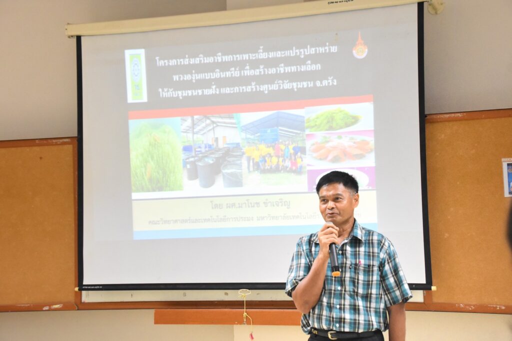 นายเอนก บำรุงกิจ รองผู้อำนวยการสำนักงานการวิจัยแห่งชาติ (รอง ผอ.วช.) กล่าวว่า (วช.) ภายใต้กระทรวง (อว.) มีภารกิจหลักในการให้ทุนวิจัยและนวัตกรรมแก่นักวิจัยหน่วยงานในระบบวิจัยและนวัตกรรมในประเด็นสำคัญของประเทศ โดยมุ่งเน้นผลงานวิจัยที่สามารถนำไปใช้ประโยชน์และแก้ไขปัญหาได้จริงอย่างทันท่วงที ทั้งเชิงวิชาการ เชิงนโยบาย เชิงสังคมชุมชน และเชิงเศรษฐกิจ เพื่อใช้เป็นกลไกในการพัฒนาและแก้ปัญหาเร่งด่วนที่สำคัญของประเทศ โดย (วช.) ได้สนับสนุนโครงการส่งเสริมการเลี้ยงสาหร่ายพวงองุ่นแบบอินทรีย์เพื่อสร้างอาชีพทางเลือกให้กับชุมชนชายฝั่ง และกิจกรรมการสร้างศูนย์วิจัยชุมชน : ศูนย์วิจัยและเรียนรู้การเพาะเลี้ยงและแปรรูปสาหร่ายพวงองุ่นแบบอินทรีย์ จ.ตรัง แก่คณะวิทยาศาสตร์และเทคโนโลยีการประมง มหาวิทยาลัยเทคโนโลยีราชมงคลศรีวิชัย วิทยาเขตตรัง โดยมี ผศ.มาโนช ขำเจริญ เป็นหัวหน้าโครงการฯ ในการดำเนินการส่งเสริมการเพาะเลี้ยงสาหร่ายพวงองุ่น และพัฒนาการตลาดและการยอมรับของผู้บริโภคเพื่อการส่งออก เพื่อเพิ่มรายได้ให้แก่เกษตรกรผู้เลี้ยงสาหร่ายพวงองุ่น นอกจากการถ่ายทอดองค์ความรู้จากงานวิจัยแล้ว คณะนักวิจัยยังได้จัดตั้งศูนย์วิจัยและเรียนรู้การเพาะเลี้ยงและแปรรูปสาหร่ายพวงองุ่นแบบอินทรีย์ 3 พื้นที่ของจังหวัดตรัง โดยใช้กลไกความร่วมมือของทุกภาคส่วน ระหว่างหน่วยงานวิจัย สถาบันการศึกษา และชุมชน เพื่อขับเคลื่อนผลผลิตและผลสำเร็จจากผลงานวิจัยและนวัตกรรม ไปสู่การใช้ประโยชน์ และ (วช.) หวังเป็นอย่างยิ่งว่าผลสำเร็จจากงานวิจัยนี้ จะเป็นส่วนหนึ่งที่จะช่วยยกระดับความสามารถในการแข่งขันของประเทศ ทั้งในมิติของการพัฒนาสินค้าหรือผลิตภัณฑ์ให้มีคุณภาพและเกิดการสร้างมูลค่าทางเศรษฐกิจอย่างมั่นคงและยั่งยืนต่อไป