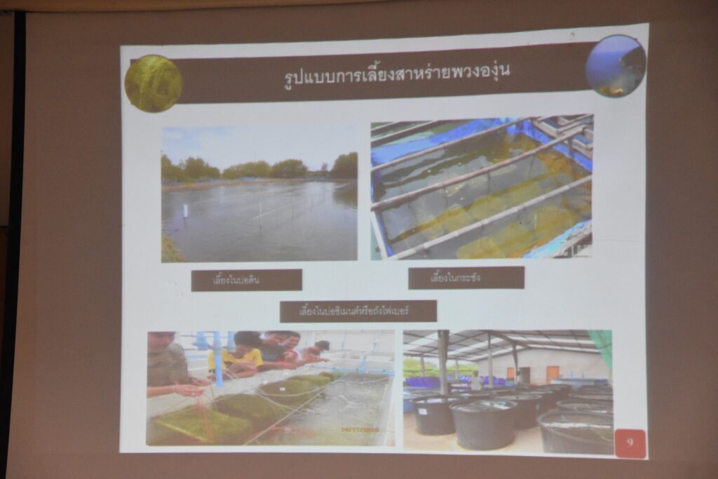 ผศ.มาโนช ขำเจริญ คณบดีคณะวิทยาศาสตร์และเทคโนโลยีการประมง แห่ง มทร.ศรีวิชัย หัวหน้าโครงการฯ กล่าวว่า สาหร่ายพวงองุ่น (Caulerpa lentilifera) เป็นสาหร่ายทะเลที่มีความต้องการของตลาดทั้งในประเทศและต่างประเทศ จึงถือว่ามีความสำคัญต่อเศรษฐกิจของประเทศไทยมากขึ้น เป็นที่นิยมในการใช้ทำอาหาร รวมถึงการนำไปใช้ประโยชน์ในด้านยาและเครื่องสำอาง เนื่องจากสาหร่ายชนิดนี้มีสารอาหารที่มีประโยชน์และให้ผลดีต่อสุขภาพ โดยในประเทศไทยพบสาหร่ายชนิดนี้ในบริเวณภาคใต้ทั้งฝั่งอ่าวไทยและฝั่งอันดามัน มทร.ศรีวิชัย ได้รับการสนับสนุนทุนจาก (วช.) ในการดำเนินโครงการ “การส่งเสริมอาชีพการเพาะเลี้ยงสาหร่ายพวงองุ่นแบบอินทรีย์ เพื่อสร้างอาชีพทางเลือกให้กับชุมชนชายฝั่ง” โดยคณะนักวิจัยได้นำสาหร่ายพวงองุ่นถือเป็นสาหร่ายทะเลที่มีศักยภาพในการพัฒนาเพื่อการเพาะเลี้ยงแบบอินทรีย์ โดยการเลี้ยงในบ่อซีเมนต์ ถังพลาสติกในโรงเรือน ซึ่งมีผู้นิยมบริโภคสาหร่ายชนิดนี้เป็นอาหารเพื่อสุขภาพจำนวนมาก ซึ่งการดำเนินงานโครงการดังกล่าวมีการสร้างโรงเรือนต้นแบบเพาะเลี้ยงสาหร่ายพวงองุ่นแบบอินทรีย์ ในพื้นที่ของคณะวิทยาศาสตร์และเทคโนโลยีการประมง มทร.ศรีวิชัย วิทยาเขตตรัง ซึ่งในโรงเรือนแห่งนี้มีระบบน้ำทะเล ระบบลม ระบบไฟฟ้าพร้อมใช้งาน ปัจจุบันได้ทำการเพาะเลี้ยงสาหร่ายพวงองุ่นแบบอินทรีย์ภาชนะถังไฟเบอร์และถังพลาสติก เพื่อใช้เป็นสถานที่ฝึกนักศึกษาและเกษตรกรในการเรียนรู้ รวมทั้งใช้เป็นฟาร์มต้นแบบอีกด้วย นอกจากนี้ ยังมีการจัดฝึกอบรมให้กับเกษตรกรผู้เลี้ยงสาหร่ายพวงองุ่น ทั้งภายในและภายนอก มทร.ศรีวิชัย วิทยาเขตตรัง การจัดอบรมการแปรรูปลิตภัณฑ์แปรรูปจากสาหร่ายพวงองุ่น ได้แก่ ข้าวเกรียบปลาสดผสมสาหร่ายพวงองุ่น (กะโป๊ะ) ข้าวเกรียบปลาผสมสาหร่ายพวงองุ่น นักเก็ตปลาสาหร่ายพวงองุ่น และสาหร่ายพวงองุ่นในน้ำเกลือ
