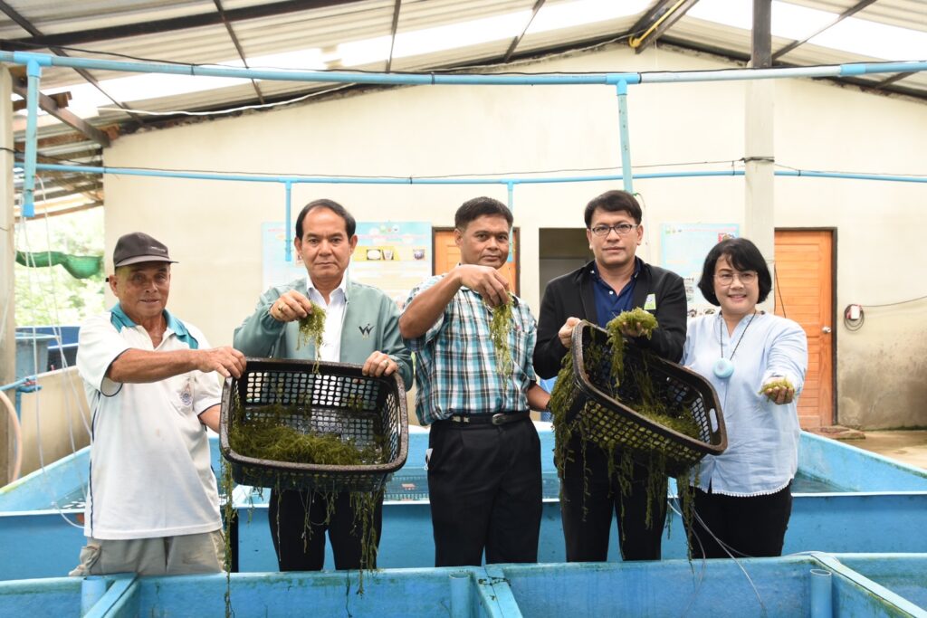 เมื่อวันที่ 2 มิถุนายน 2566 สำนักงานการวิจัยแห่งชาติ (วช.) กระทรวงการอุดมศึกษา วิทยาศาสตร์ วิจัยและนวัตกรรม (อว.) โดย ดร.วิภารัตน์ ดีอ่อง ผู้อำนวยการสำนักงานการวิจัยแห่งชาติ (ผอ.วช.) ได้มอบหมายให้ นายเอนก บำรุงกิจ รองผู้อำนวยการสำนักงานการวิจัยแห่งชาติ (รอง ผอ.วช.) พร้อมด้วย กลุ่มสารนิเทศและประชาสัมพันธ์ นำคณะสื่อมวลชนเยี่ยมชมผลสำเร็จของโครงการ “การส่งเสริมอาชีพการเพาะเลี้ยงสาหร่ายพวงองุ่นแบบอินทรีย์ เพื่อสร้างอาชีพทางเลือกให้กับชุมชนชายฝั่ง” และกิจกรรมสร้างศูนย์วิจัยชุมชน : ศูนย์วิจัยและเรียนรู้การเพาะเลี้ยงและแปรรูปสาหร่ายพวงองุ่นแบบอินทรีย์ จ.ตรัง โดยมี ผศ.มาโนช ขำเจริญ คณบดีคณะวิทยาศาสตร์และเทคโนโลยีการประมง แห่งมหาวิทยาลัยเทคโนโลยีราชมงคลศรีวิชัย เป็นหัวหน้าโครงการฯ ณ มหาวิทยาลัยเทคโนโลยีราชมงคลศรีวิชัย วิทยาเขตตรัง และศูนย์วิจัยและเรียนรู้การเพาะเลี้ยงและแปรรูปสาหร่ายพวงองุ่นแบบอินทรีย์ อ.สิเกา จ.ตรัง