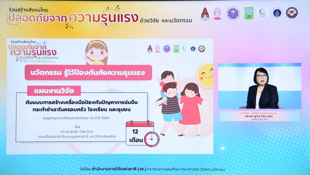 เป็นหน่วยงานหลักด้านการวิจัยและนวัตกรรมของประเทศ ที่มีบทบาทสำคัญด้านการขับเคลื่อน และสนับสนุนการดำเนินโครงการวิจัย ที่มีความท้าทายและมีเป้าหมายชัดเจนรวมถึงการส่งเสริมและถ่ายทอดองค์ความรู้ ตลอดจนผลักดันให้เกิดการนำผลงานวิจัยและนวัตกรรมไปสู่การใช้ประโยชน์ในมิติต่างๆ ที่ก่อให้เกิดการพัฒนา และสามารถแก้ไขปัญหาสำคัญของประเทศได้อย่างเป็นรูปธรรม ซึ่งสังคมไทยไร้ความรุนแรง ถือเป็นปัญหาทางสังคมที่มีความท้าทายในการแก้ไข เพราะความรุนแรงมีหลายมิติมีความสลับซับซ้อน เช่น ความรุนแรงในครอบครัว ความรุนแรงในโรงเรียน ความรุนแรงทางสื่อ ความรุนแรงบนท้องถนน และยังมีความรุนแรงอีกหลายรูปแบบ ที่เป็นภัยแฝงอยุ่ในสังคมไทย ซึ่งสามารถเกิดขึ้นได้กับประชาชนทุกกลุ่มเพศและทุกวัย ดังนั้นการลดความรุนแรงในสังคมไทยจึงถือเป็นโจทย์ท้าทายที่สำคัญสำหรับการวิจัยและการสร้างสรรค์นวัตกรรมที่จะช่วยยกระดับคุณภาพชีวิตและความเป็นอยู่ทางสังคมให้กับคนไทยได้อย่างมั่นคง และสามารถนำไปสู่การลดปัญหาความรุนแรงในสังคมไทยได้อย่างยั่งยืน