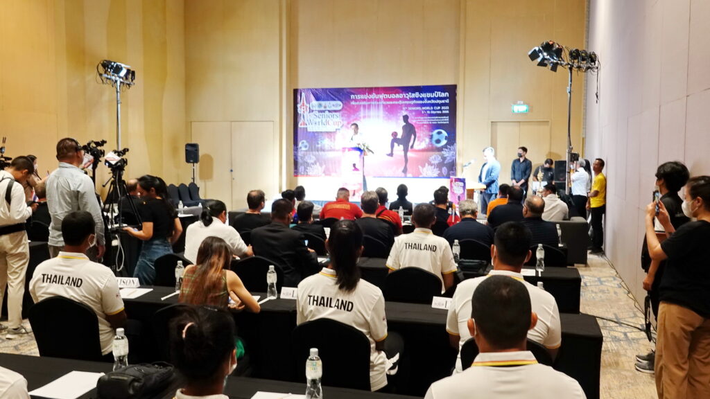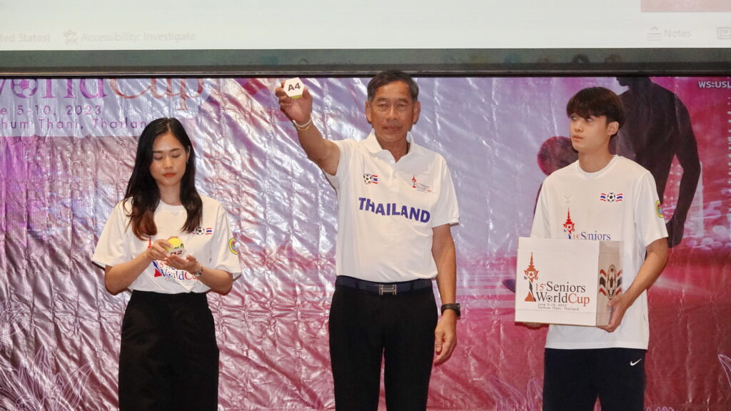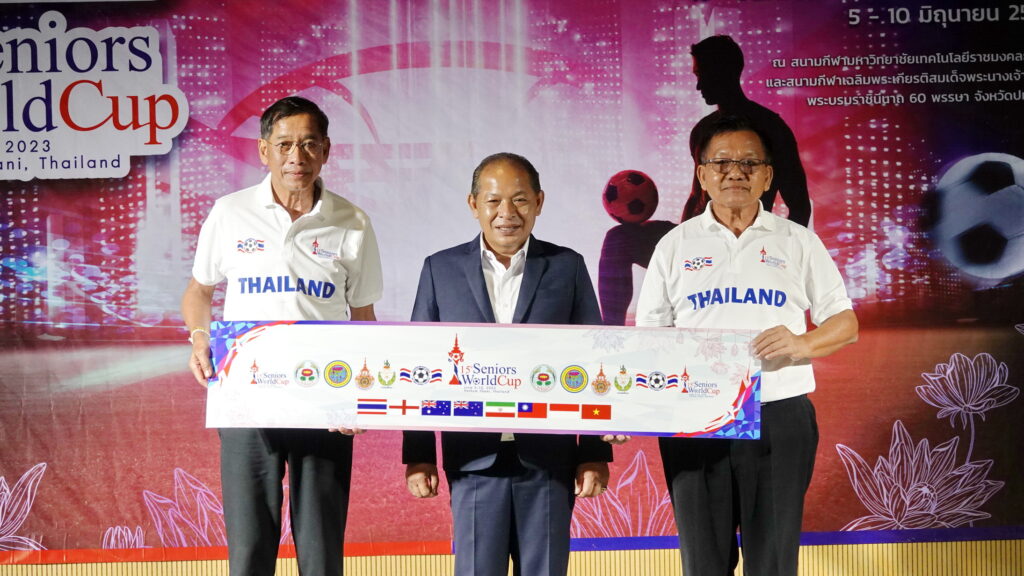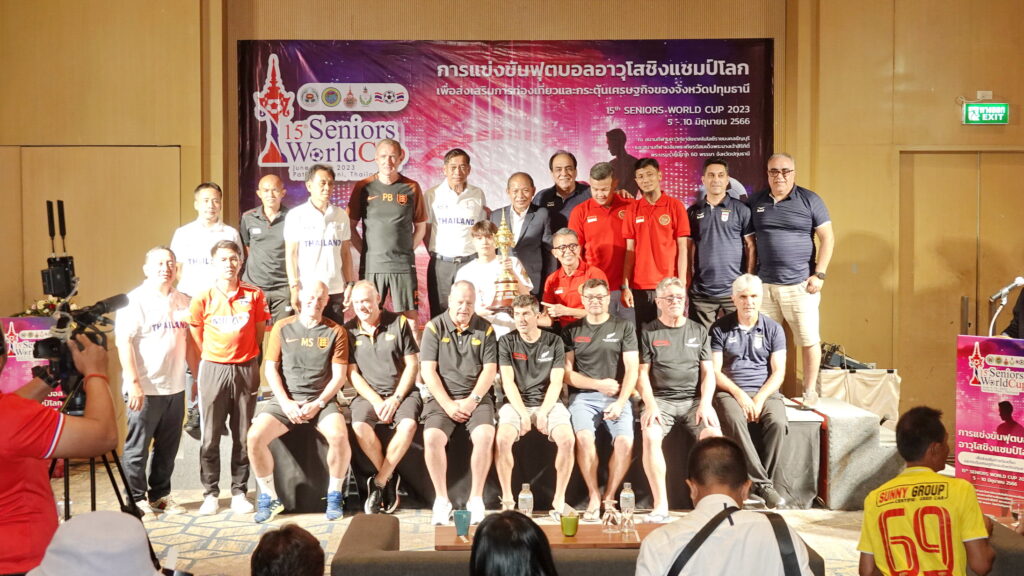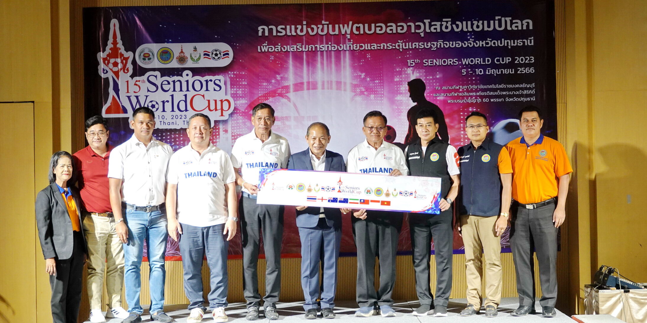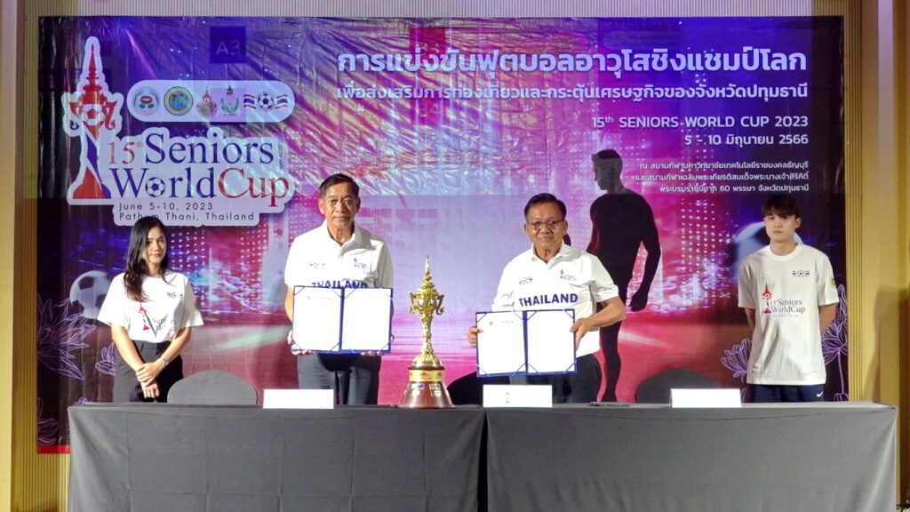 เมื่อเวลา 17.00 น. วันที่ 4 มิถุนายน 2566 ที่โรงแรม ดิ ไอเดิล โฮเท็ล แอนด์ เรสซิเดนซ์ ตำบลคลองหนึ่ง อำเภอคลองหลวง จังหวัดปทุมธานี นายอดิเทพ กมลเวชช็ รองผู้ว่าราชการจังหวัดปทุมธานี เป็นประธานงานแถลงข่าวและจับฉลากแบ่งสายการแข่งขันฟุตบอลอาวุโสชิงแชมป์โลก เพื่อส่งเสริมการท่องเที่ยว และกระตุ้นเศรษฐกิจของจังหวัดปทุมธานี โดยมี พล.ต.ท.คำรณวิทย์ ธูปกระจ่าง นายกองค์การบริหารส่วนจังหวัดปทุมธานี และนายเทพพิทักษ์ จันทร์สุเทพ นายกสมาคมกีฬาฟุตบอลอาวุโสไทย ร่วมลงนาม MOU การจัดการแข่งขันฟุตบอลอาวุโสชิงแชมป์โลก “15th SENIOR WORLD CUP 2023 “