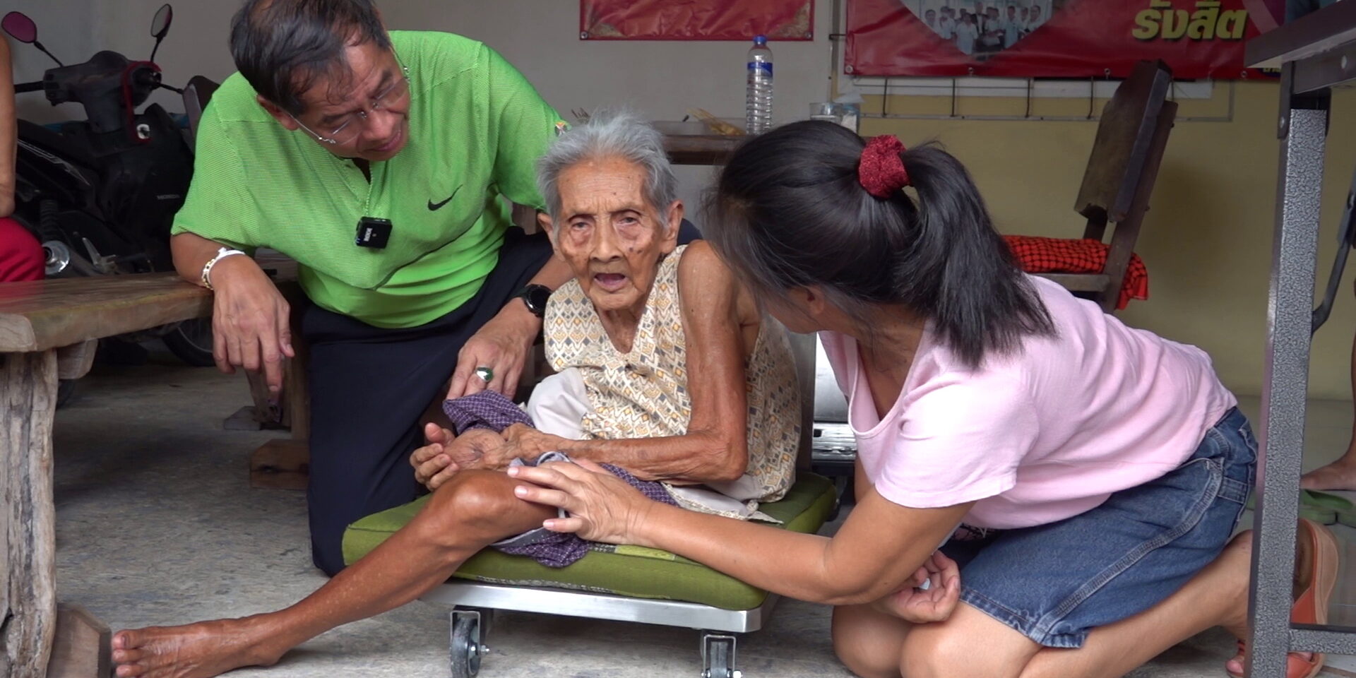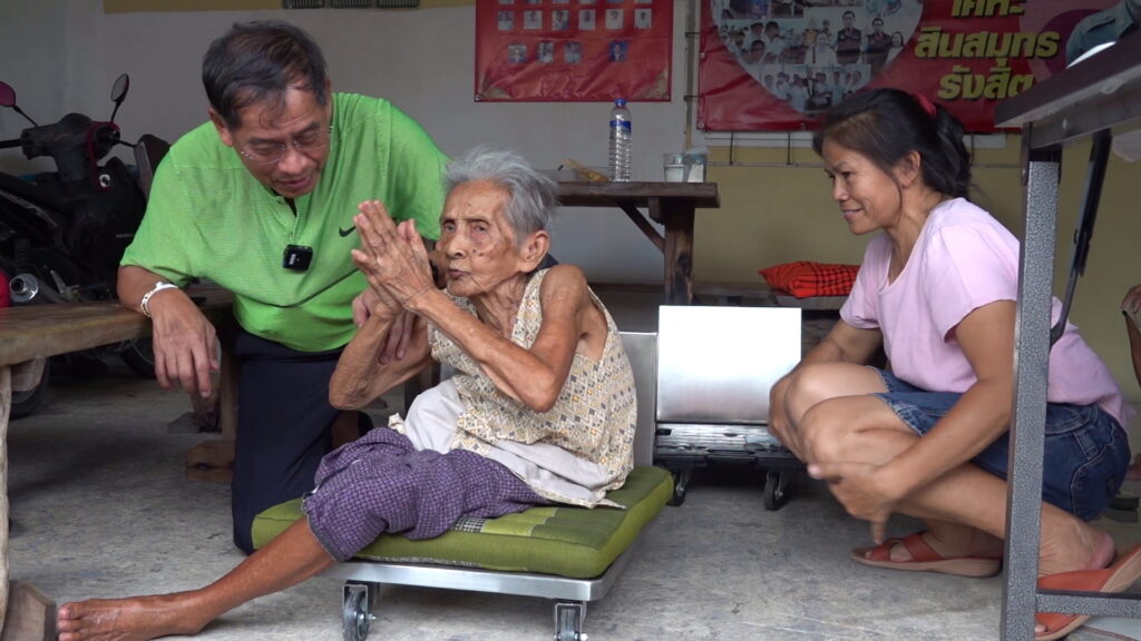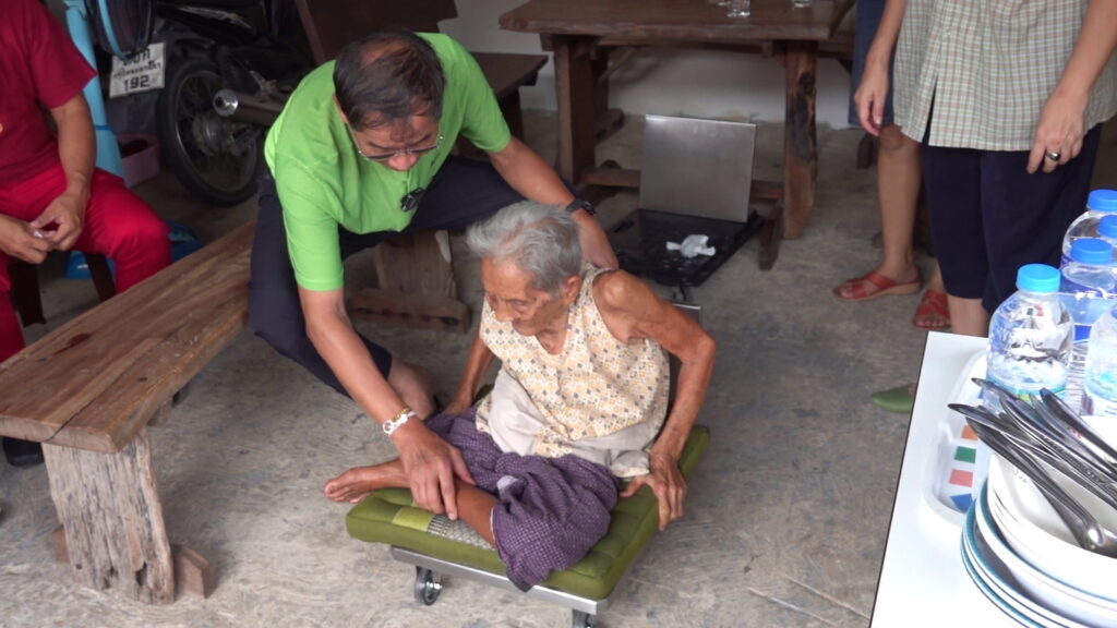 โดยนางจรูญ สำเภอทอง เป็นผู้พิการขาขวาขาดจากการลุยน้ำท่วมแล้วเท้าเป็นแผล ต่อมาดูแลรักษาแผลไม่ดีจนติดเชื้อจึงต้องตัดขาขวา ปัจจุบันเดินไม่ได้จึงต้องอาศัยรถเลื่อนช่วยเหลือในการเคลื่อนที่สำหรับผู้พิการ แต่สภาพของรถเลื่อนเก่าชำรุดแล้ว พลตำรวจโทคำรณวิทย์ ธูปกระจ่าง นายกองค์การบริหารส่วนจังหวัดปทุมธานีและทีมงาน อบจ.ปทุมธานีจึงได้ประดิษฐ์จากสแตนเลสให้มีสภาพทนทานเพื่อใช้แทนของเดิม ส่วนนางจรูญ สำเภอทอง กล่าวว่า ขอบคุณพลตำรวจโทคำรณวิทย์ ธูปกระจ่าง นายกองค์การบริหารส่วนจังหวัดปทุมธานีและทีมงานที่ได้นำรถเลื่อนมามอบให้ เนื่องจากคันเดิมไม่มีที่พิงเวลานั่งนานๆ แล้วเมื่อยหลังมา คันใหม่ที่ได้มานั่นสบายดี