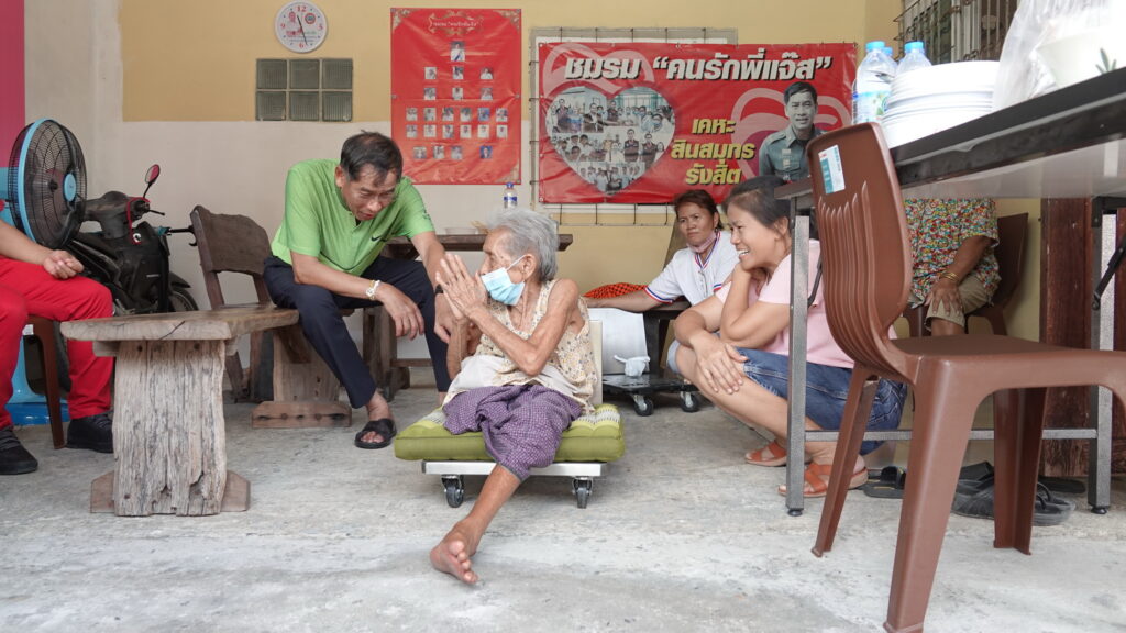 วันที่ 5 มิถุนายน 2566 ที่ชมรมคนรักพี่แจ๊ส เคหะสินสมุทรรังสิต ต.ประชาธิปัตย์ อ.ธัญบุรี จ.ปทุมธานี พลตำรวจโทคำรณวิทย์ ธูปกระจ่าง นายกองค์การบริหารส่วนจังหวัดปทุมธานี นายทนงศักดิ์ อาภาโรจนกิจ สมาชิกสภาองค์การบริหารส่วนจังหวัดปทุมธานี เขตอำเภอเมือง พร้อมสมาชิกกลุ่มกลอฟจิตอาสาได้ร่วมกันมอบรถเลื่อนช่วยเหลือในการเคลื่อนที่สำหรับผู้พิการ นางจรูญ สำเภอทอง อายุ 87 ปี บ้านเลขที่ 38 ตำบลประชาธิปัตย์ อำเภอธัญบุรี จังหวัดปทุมธานี เพื่อใช้ในการดำเนินชีวิตประจำวันได้สะดวกยิ่งขึ้น