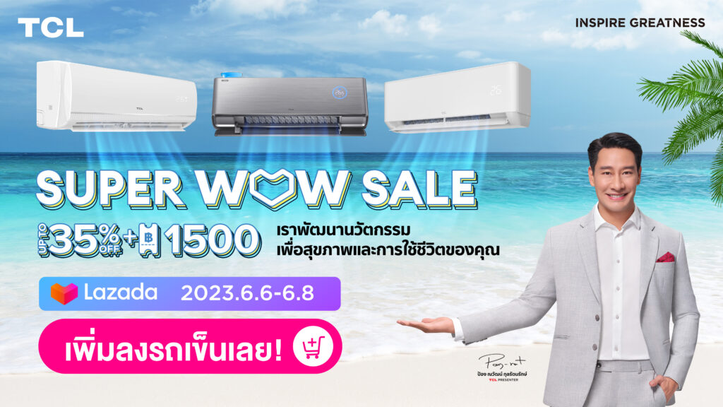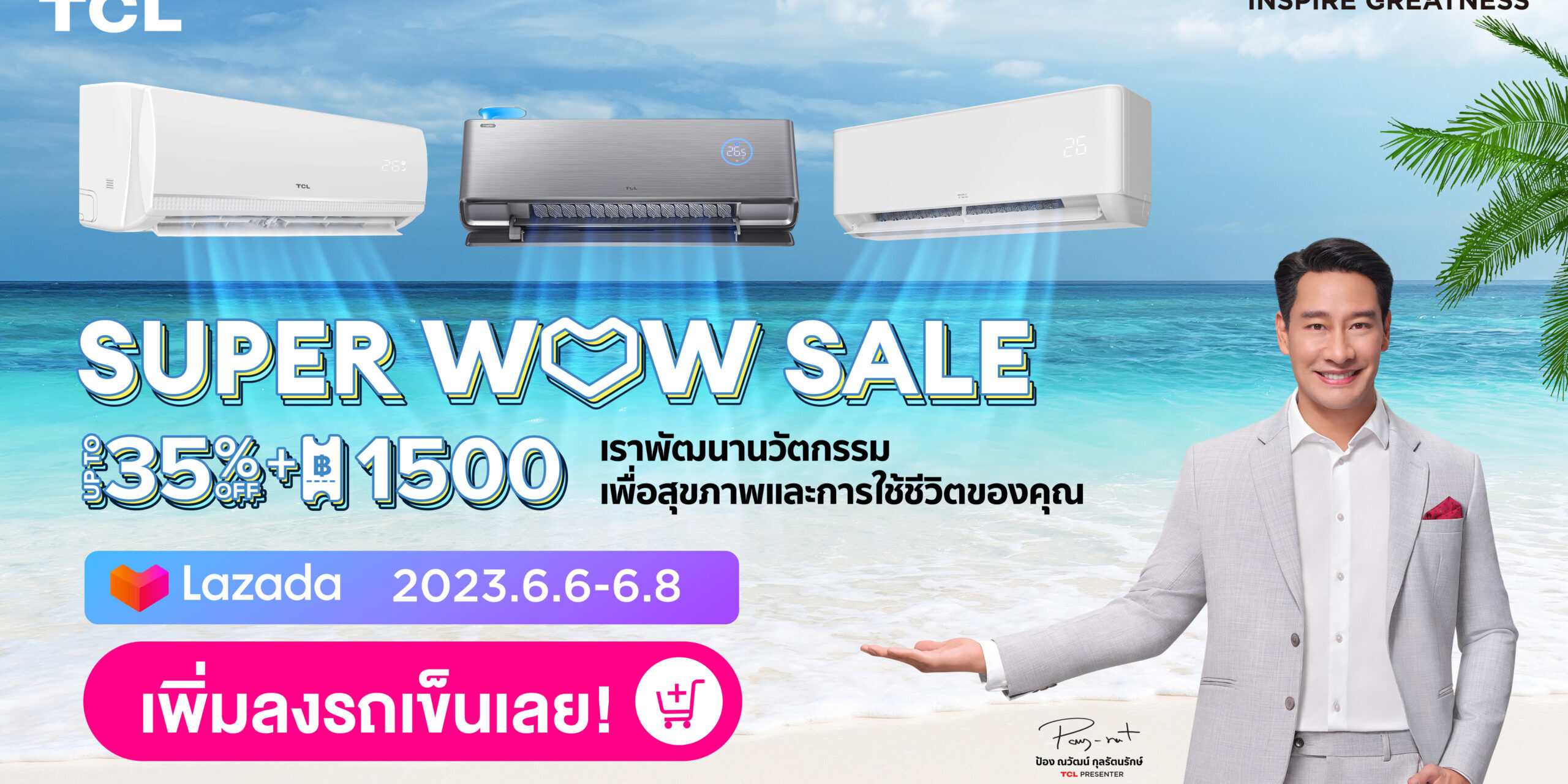 นอกจากนั้นแล้ว TCL เตรียมจัด เทศกาลเครื่องปรับอากาศ TCL Healthy and Comfort Living Festival ซึ่งจัดจำหน่ายทั้ง online และ offline (ลาซาด้า,ช็อปปี,เพาเวอร์บายออนไลน์,โอมโปรออนไลน์,สยามทีวีออนไลน์ และอื่นๆ ไปจนถึงร้านค้าปลีกชั้นนำทั่วประเทศ) ทั้งนี้ เครื่องปรับอากาศ รุ่น FreshIN Series,T-Pro Series,Elite Series และเครื่องปรับอากาศ TCL อื่น ๆ อีกมากมาย มีวางจำหน่ายให้เป็นเจ้าของได้อย่างง่าย ตั้งแต่วันที่ 6 ถึง 8 มิถุนายน พร้อมส่วนลด “Super WOW” สูงสุด 35%() ()ข้อเสนอส่วนลดจะแตกต่างกันไปตามร้านค้าที่ซื้อและช่องทางจำหน่ายต่างๆ