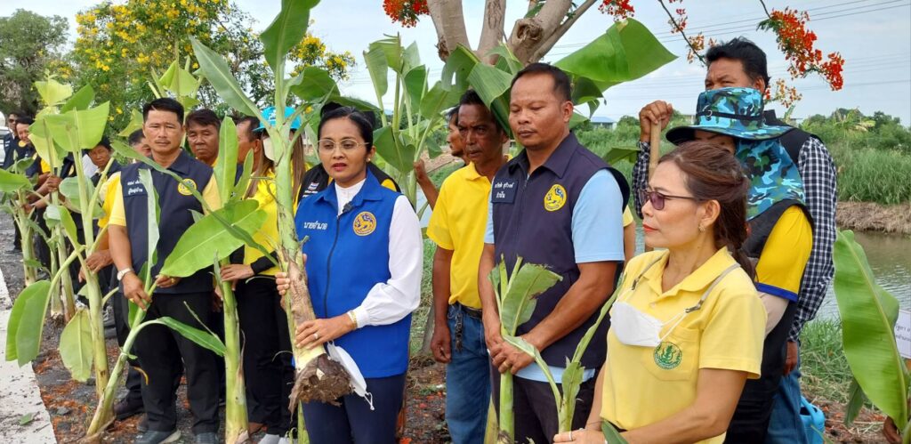 เมื่อเวลา 09.30 น. วันที่ 7 มิถุนายน 2566 ที่บริเวณริมคลองลากค้อน หมู่ที่ 10 ตำบลหน้าไม้ อำเภอลาดหลุมแก้ว จังหวัดปทุมธานี ภายใต้การอำนวยการของนายณรงค์ศักดิ์ โอสถธนากร ผู้ว่าราชการจังหวัดปทุมธานี นำโดย นางรัฐยา อาจหาญ เผยพร นายอำเภอ ลาดหลุมแก้ว พร้อมด้วย หัวหน้าส่วนราชการประจำอำเภอ กำนัน ผู้ใหญ่บ้าน ผู้ช่วยผู้ใหญ่บ้าน ประชาชนในพื้นที่ และภาคีเครือข่ายต่างๆ ของอำเภอลาดหลุมแก้ว ร่วมกันจัดกิจกรรมปลูกต้นกล้วยในที่สาธารณะ บริเวณริมคลองลากค้อน ระยะทาง 2 กิโลเมตร เพื่อเป็นแหล่งอาหารให้มนุษย์และสัตว์