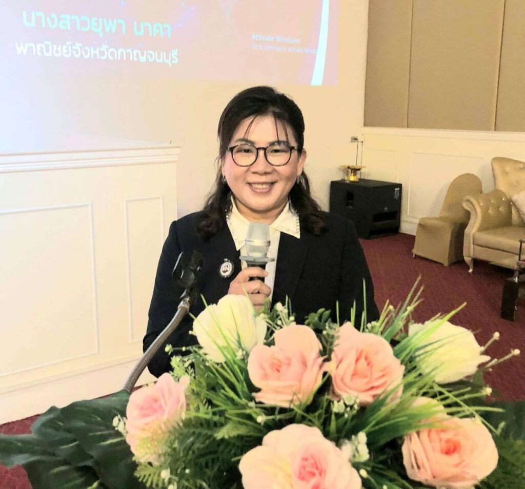 กล่าวต้อนรับและรายงานโดย นางสาวยุพา นาคา พาณิชย์จังหวัดกาญจนบุรี