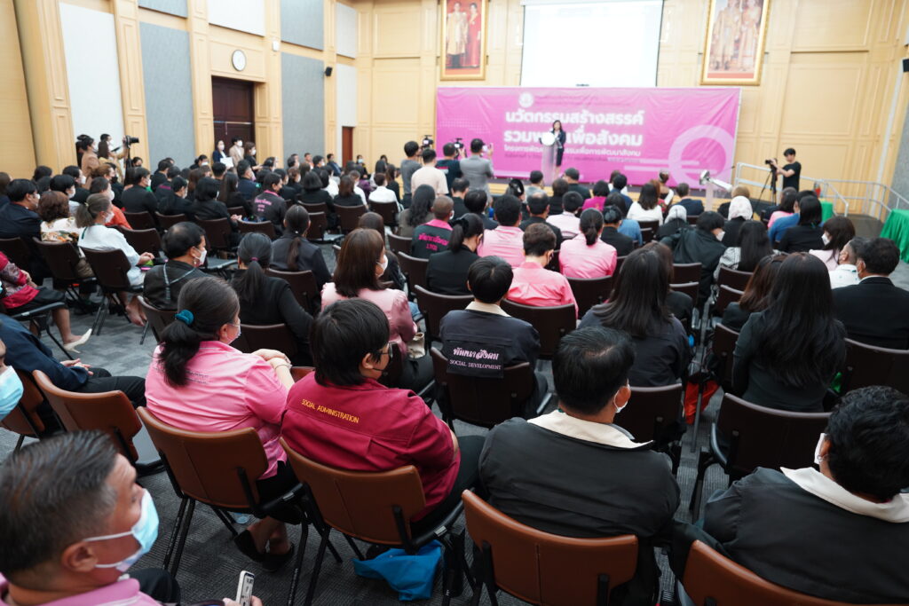 กรมพัฒนาสังคมและสวัสดิการ ได้จัดเวทีนวัตกรรมสร้างสรรค์รวมพลังเพื่อสังคม ในโครงการพัฒนานวัตกรรมเพื่อการพัฒนาสังคม โดยมี นางจตุพร โรจนพานิช อธิบดีกรมพัฒนาสังคมและสวัสดิการเป็นประธานในพิธีเปิด ซึ่งโครงการมีวัตถุประสงค์เพื่อส่งเสริมการมีส่วนร่วมในการออกแบบและพัฒนานวัตกรรมเพื่อการพัฒนาสังคมของกรมพัฒนาสังคมและสวัสดิการกับภาคีเครือข่าย ตลอดจนสามารถใช้เป็นแนวทางร่วมกันในการแก้ไขปัญหาให้กับกลุ่มเป้าหมายผู้ประสบปัญหาทางสังคม โดย กองยุทธศาสตร์และแผนงาน กรมพัฒนาสังคมและสวัสดิการ เป็นผู้ดำเนินโครงการรวมถึงค้นหาแนวทางการพัฒนานวัตกรรมเพื่อนำมาเป็นเครื่องมือในการแก้ปัญหาทางสังคม ผ่านการ มีส่วนร่วมในการออกแบบและพัฒนานวัตกรรม ร่วมกับภาคีเครือข่ายองค์กรภาครัฐ องค์กรภาคเอกชน นักธุรกิจ รวมถึงนักวิชาการ และสื่อมวลชน 35 องค์กร และมีผู้เข้าร่วม ซึ่งเป็นผู้บริหารและผู้แทนจากกรมต่าง ๆ ในสังกัดกระทรวงการพัฒนาสังคมและความมั่นคงของมนุษย์ อีกทั้งผู้แทนหน่วยงานในสังกัดกรมพัฒนาสังคมและสวัสดิการ เข้าร่วม 54 หน่วย และหน่วยงานทั้งหมดของกรมพัฒนาสังคมและสวัสดิการ เข้าร่วมผ่านระบบออนไลน์ 154 หน่วย รวมหน่วยงานและองค์กรที่เข้าร่วมทั้งสิ้น 196 องค์กร
