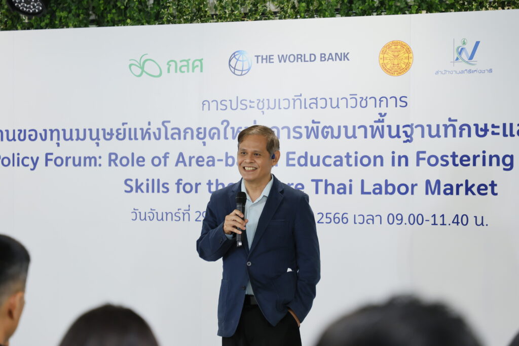 เมื่อวันที่ 31 พฤษภาคม 2566 กองทุนเพื่อความเสมอภาคทางการศึกษา (กสศ.) ร่วมกับ ธนาคารโลก มหาวิทยาลัยธรรมศาสตร์ และ สำนักงานสถิติแห่งชาติ จัดเวทีเสวนาวิชาการนานาชาติ ‘ทักษะพื้นฐานของทุนมนุษย์แห่งโลกยุคใหม่: การพัฒนาพื้นฐานทักษะและบทบาทในระดับจังหวัด’ เพื่อร่วมกันหาแนวทางยกระดับทักษะพื้นฐานของทุนมนุษย์ในประเทศไทย และออกแบบนโยบายสร้างความเสมอภาคทางการศึกษาให้สอดรับกับการเปลี่ยนแปลงของตลาดแรงงานในยุคดิจิทัล เพิ่มขีดความสามารถด้านการแข่งขันให้ประเทศพ้นจากกับดักรายได้ปานกลาง