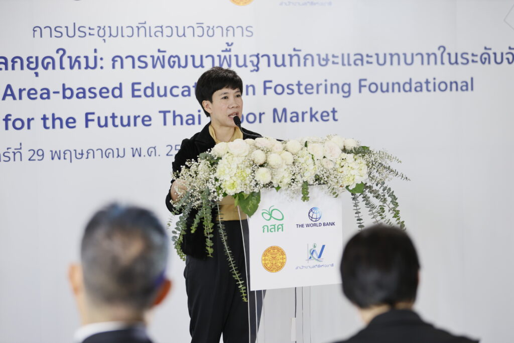 นางสาวธันว์ธิดา เน้นย้ำว่า การพัฒนาทักษะพื้นฐานของทุนมนุษย์ (Foundational Skills) จะช่วยให้ไทยเป็นประเทศที่มีรายได้สูงขึ้น และสามารถลดความเหลื่อมล้ำในมิติต่าง ๆ ซึ่งมีความท้าทายเนื่องจากปัจจุบันพบว่ามีกลุ่มแรงงานนอกระบบสูงถึง 20.2 ล้านคน โดยร้อยละ 67 มีการศึกษาต่ำกว่าชั้นมัธยมต้น นอกจากนี้ยังพบว่ามีวัยแรงงานซึ่งเป็นกลุ่มเยาวชนรุ่นใหม่ประมาณ 1.4 ล้านคนกำลังว่างงาน และมีจำนวนเพิ่มขึ้นทุกปีประมาณปีละร้อยละ 1 แรงงานกลุ่มนี้ถือเป็นกลไกสำคัญในการขับเคลื่อนเศรษฐกิจทั้งในระดับพื้นที่และระดับประเทศ