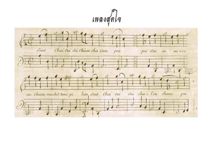 เพลงสุดใจ เป็นเพลงที่อ้างอิงมาจาก นิโคลาส์ แซร์แวส ซึ่งเป็นชาวฝรั่งเศสที่เข้ามาประเทศไทยในแผ่นดินของสมเด็จพระนารายณ์ ระหว่าง พ.ศ. ๒๒๒๔ – ๒๒๒๙ ซึ่งนายนิโคลาส์ได้ทำการบันทึกเพลงไว้สองเพลง แต่ในการพิมพ์จดหมายเหตุนี้ครั้งแรกที่ฝรั่งเศสกลับมีโน้ตเพลงประกอบเพียงเพลงเดียว คือเพลง สุดใจ (Sout Chai) เพลง สุดใจ เขียนขึ้นด้วยการร้อยทำนองสองทำนองเข้าด้วยกัน มีทำนองหลักอยู่ด้านบน และให้ทางเบสอยู่ไลน์ต่ำ ซึ่งเป็นขนบนิยมของของดนตรีตะวันตก ซึ่งเมื่อได้ทดลองบรรเลงดูแล้ว เสียงที่ออกมาก็ไม่คล้ายดนตรีตะวันออกแต่อย่างใด ในส่วนของเนื้อร้องก็ยังไม่ไปกับท่วงทำนองดนตรีมากนัก