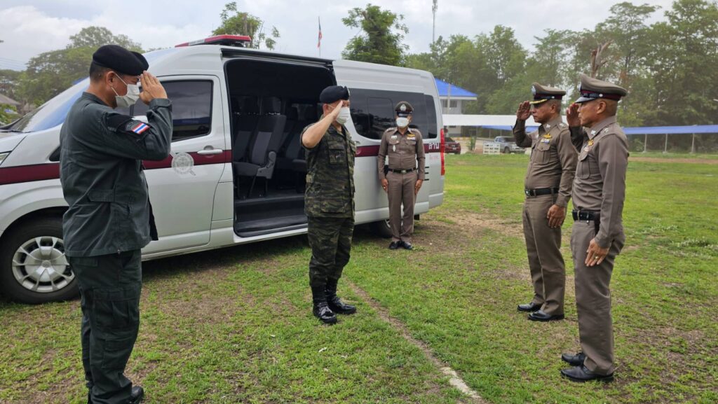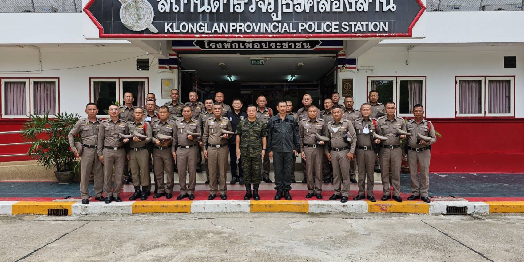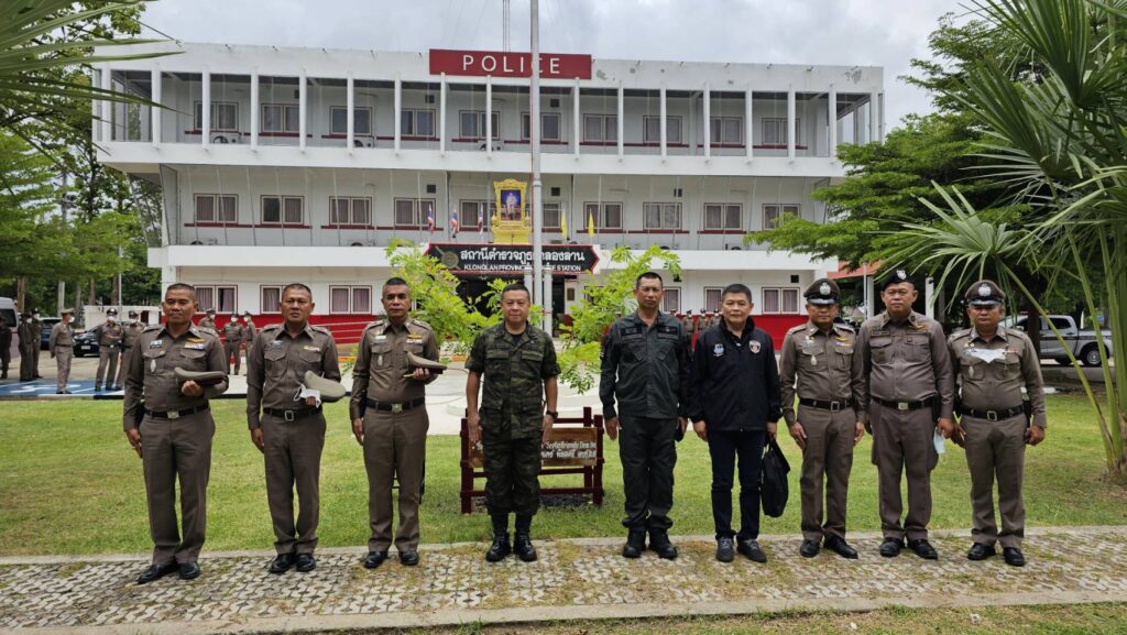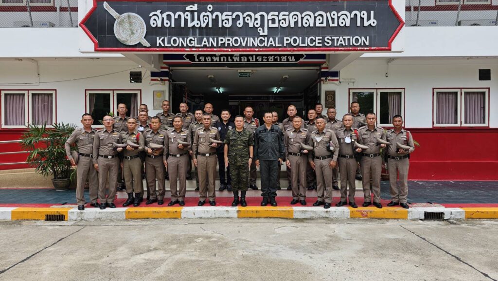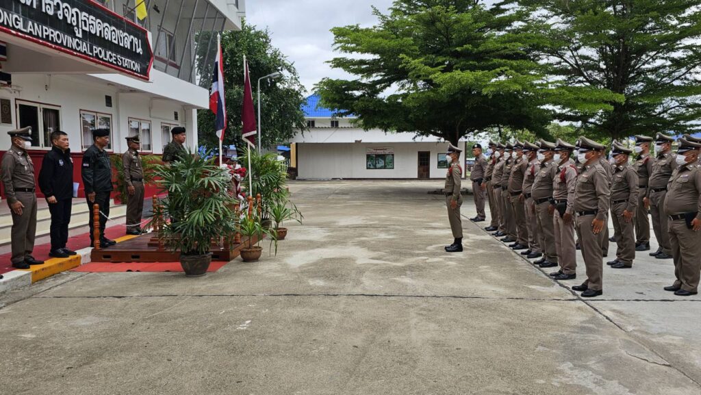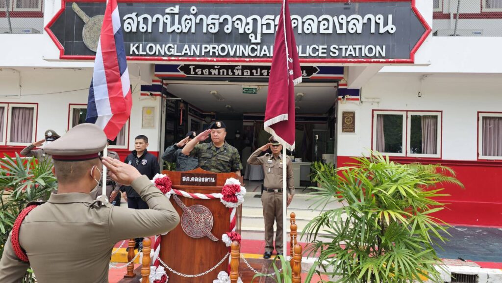 ผกก.สภ.คลองลาน พร้อมด้วยข้าราชการตำรวจในสังกัดฯรอรับการตรวจเยี่ยม