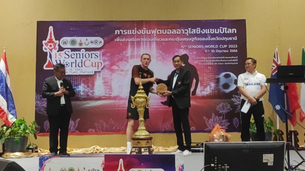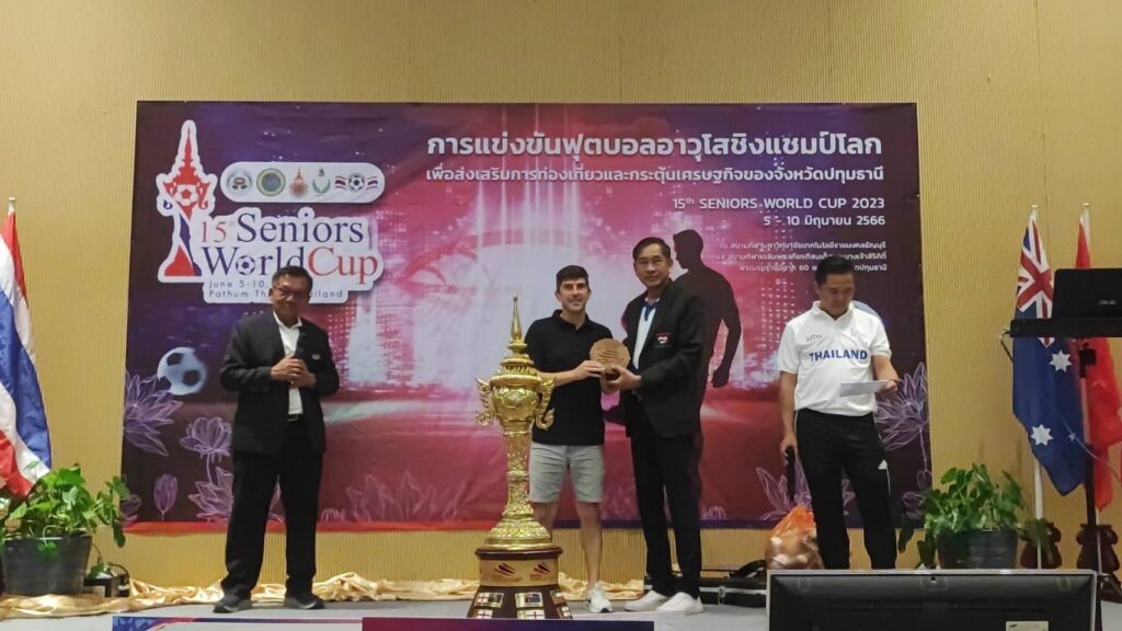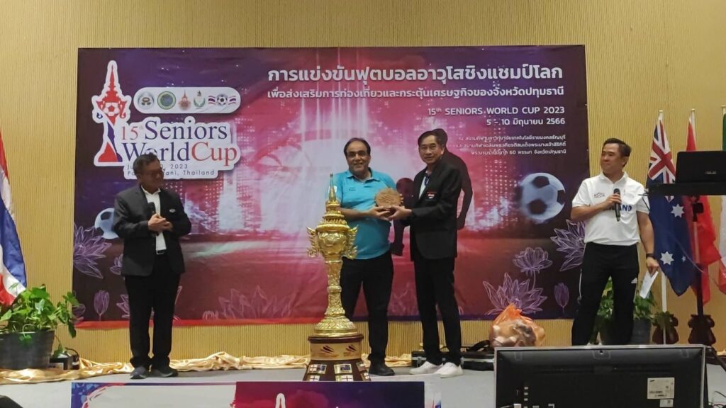 ด้านพล.ต.ท.คำรณวิทย์ ธูปกระจ่าง นายกองค์การบริหารส่วนจังหวัดปทุมธานี กล่าวว่าต้องเรียนว่าการแข่งขันฟุตบอลอาวุโสชิงแชมป์โลกมีมายาวนานถึง 15 ครั้งแล้วซึ่งมาชะงักไปในช่วงโควิดซึ่งณเวลาต้องขอขอบคุณนายเทพพิทักษ์ จันทร์สุเทพ นายกสมาคมกีฬาฟุตบอลอาวุโสไทย ที่จัดการแข่งขันฟุตบอลอาวุโสชิงแชมป์โลกครั้งนี้ขึ้นมา ซึ่งเป็นเรื่องที่ดีที่ใช้กีฬาเป็นสื่อให้คนรู้จักจังหวัดปทุมธานี ซึ่งมาประเทศไทยก็ต้องทานอาหารไทย เอาเงินมาใช้ในประเทศไทย มันก็ทำให้เศรษฐกิจของปทุมธานีมันดีขึ้น คนเขาก็รู้จักจังหวัดปทุมธานี ซึ่งการจัดแข่งขันครั้งนี้ใช้ระยะเวลาเพียงสั้นๆ แต่เราประทับใจที่ทั้ง 8 ประเทศส่งทีมฟุตบอลมาแข่งขันซึ่งทุกคนก็มีความสุขที่มาเยือนปทุมธานี ซึ่งครั้งต่อไปนั้น 8 ทีมยังน้อยไปเอามาซัก 15 ทีมจังหวัดปทุมธานียินดีต้อนรับทุกท่าน.
