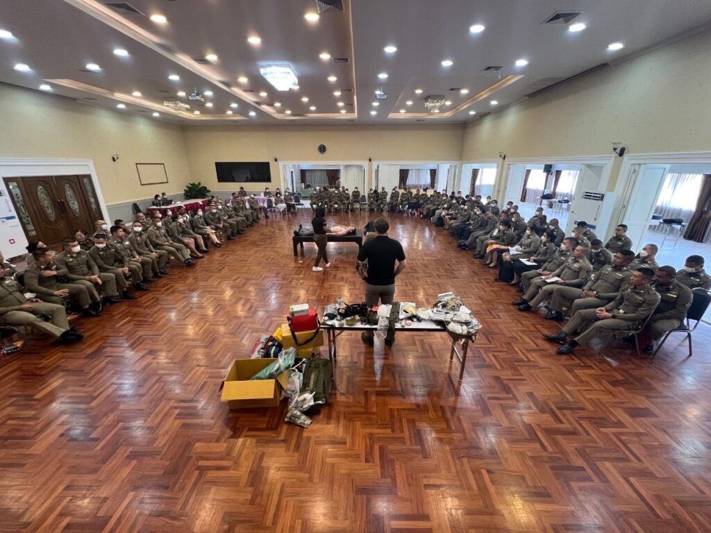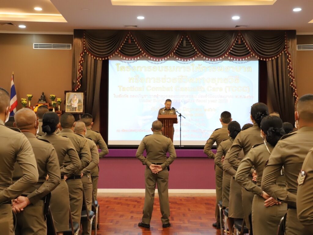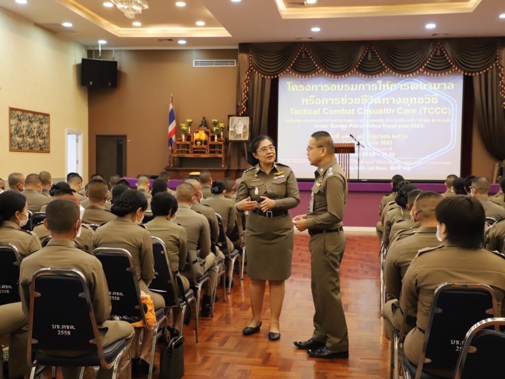 วันที่ 12 มิถุนายน 2566 เวลา 08.30 น. พลตำรวจโท พันธุ์พงษ์ สุขศิริมัช ผู้ทรงคุณวุฒิพิเศษ สำนักงานตำรวจแห่งชาติ รักษาราชการแทนรองผู้บัญชาการตำรวจตระเวนชายแดน เป็นประธานในพิธีเปิดการฝึกอบรม การให้การพยาบาลหรือการช่วยชีวิตทางยุทธวิธี Tactical Combat Casualth Care (TCCC) ในสังกัดกองบัญชาการตำรวจตระเวนชายแดน ประจำปีงบประมาณ พ.ศ.2566″ ณ ห้องประชุมชัยจินดา ชั้น 3 อาคารศรียานนท์ กองบัญชาการตำรวจตระเวนชายแดน โดยมีเจ้าหน้าที่สายการแพทย์ของหน่วยงานในสังกัดกองบัญชาการตำรวจตระเวนชายแดนทั่วประเทศ เข้ารับการอบรมจำนวน 111 คน ซึ่งจัดขึ้นระหว่างวันที่ 12–16 มิถุนายน 2566
