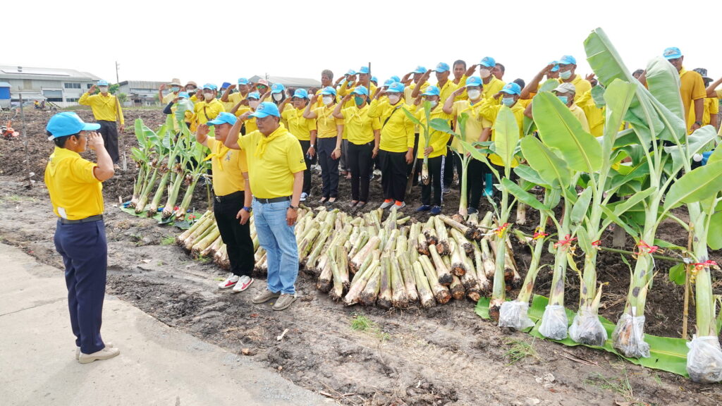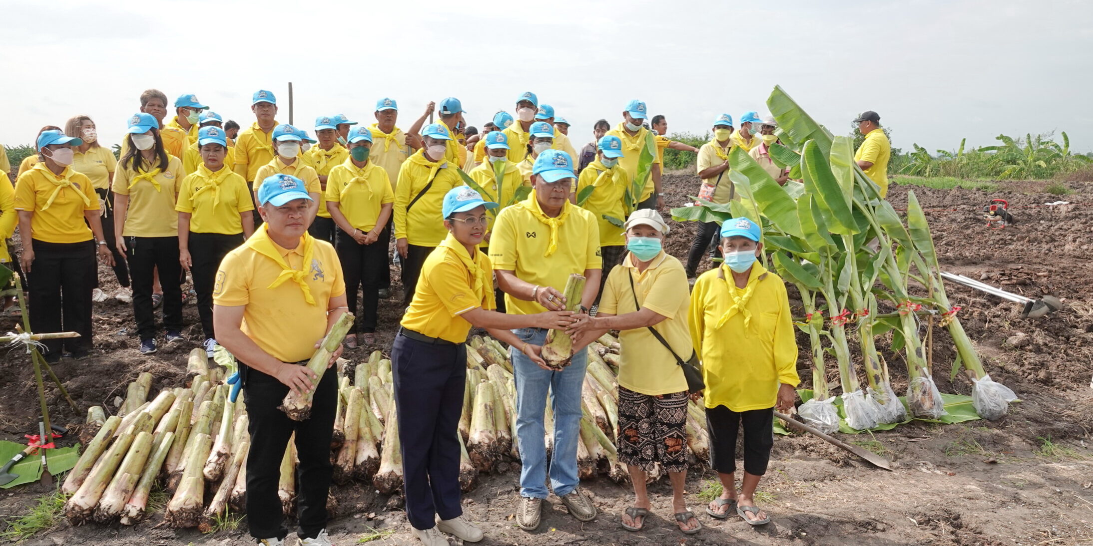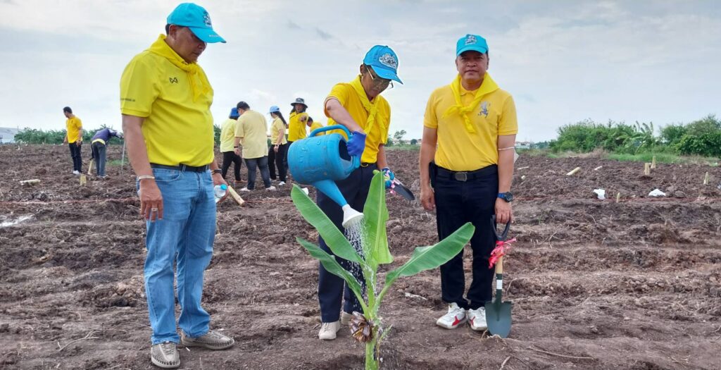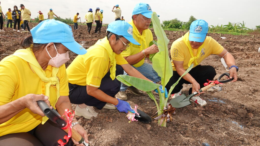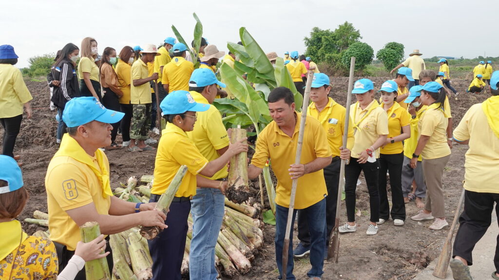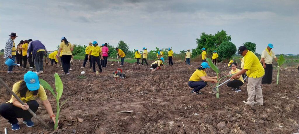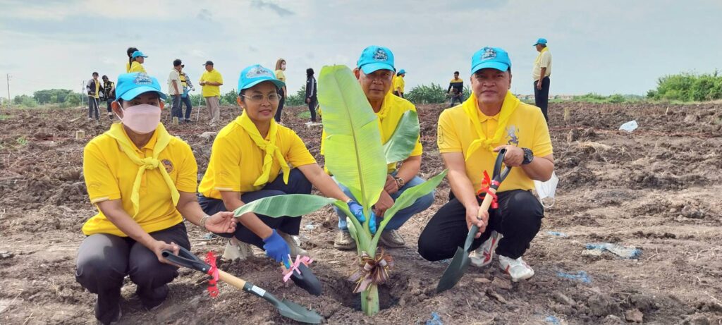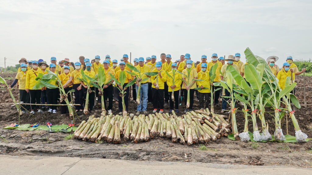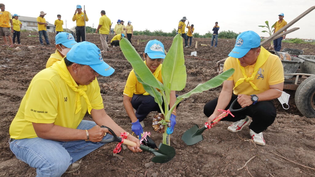 บรรยากาศกิจกรรมปลูกต้นกล้วย จำนวน 1,000 ต้น บนพื้นที่สาธารณะ 5 ไร่ มีนายสุริยะ ภิรมย์พร้อม นายกองค์การบริหารส่วนตำบลลาดหลุมแก้ว , นายสำรวย เกาะแก้ว กำนันตำบลลาดหลุมแก้ว ผู้ใหญ่บ้าน ผู้ช่วยผู้ใหญ่บ้าน และภาคีเครือข่ายต่างๆ ของอำเภอลาดหลุมแก้ว ร่วมกันปลูกกล้วยน้ำว้าพันธุ์มะลิอ่อง และกล้วยหอมทอง สร้างความมั่นคงทางอาหาร เพิ่มพื้นทีสีเขียวให้ชุมชน และเป็นการอนุรักษ์สิ่งแวดล้อม เติมความเข้มแข็งทางเศรษฐกิจท้องถิ่น ลดความเหลื่อมล้ำสร้างอาชีพและรายได้พัฒนาคุณภาพชีวิตคุณในชุมชนดีอย่างยั่งยืน