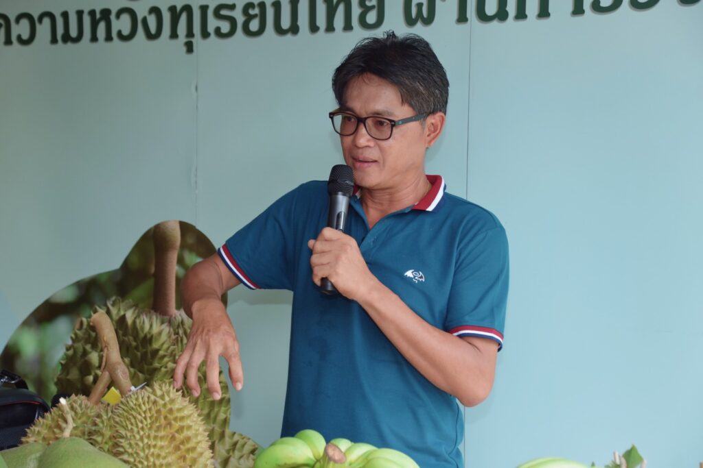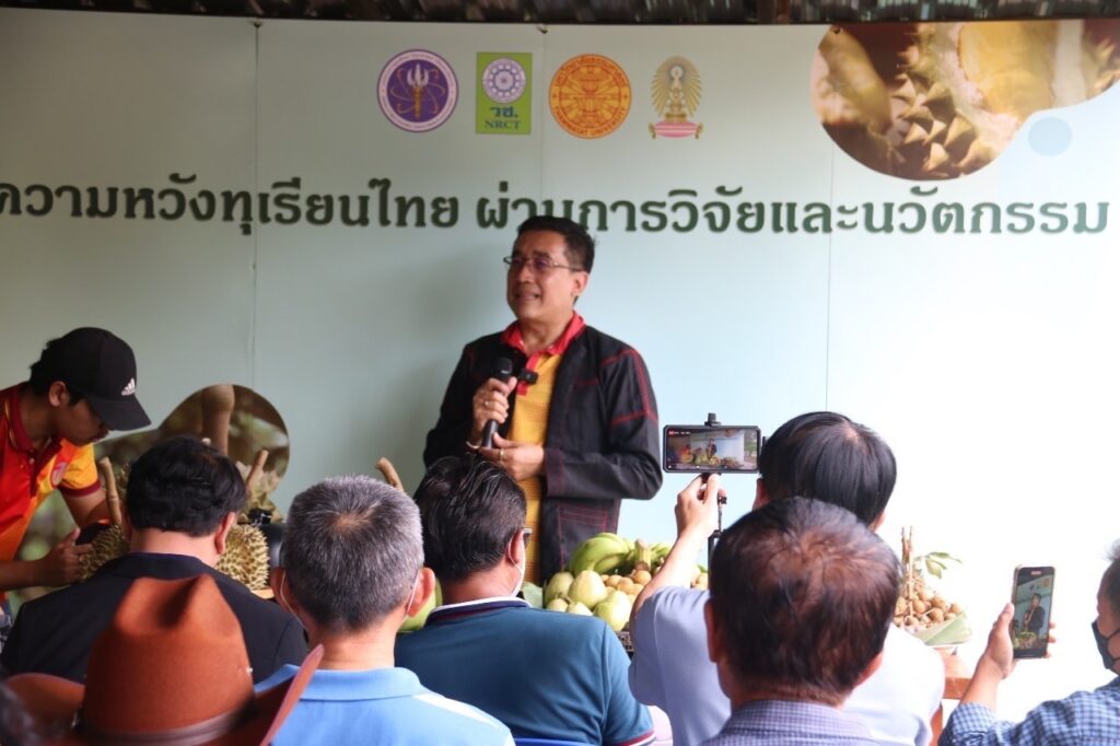 ทุเรียน ราชาผลไม้ไทย ที่เป็นพืชเศรษฐกิจมูลค่าส่งออกกว่าแสนล้าน ทำให้เกษตรกรหันมาเพาะปลูกทุเรียนกันในหลายพื้นที่ของประเทศไทย แต่การปลูกต้นทุเรียนของเกษตรกรไทยประสบปัญหาเรื่องการผลิต การดูแลรักษา การให้น้ำปุ๋ย การบังคับให้เกิดดอกและผลิตผล และเมื่อติดผลแล้วทำอย่างไรให้ติดผลผลิตมีคุณภาพสำหรับตลาดส่งออกทั้งในประเทศและต่างประเทศ สำนักงานการวิจัยแห่งชาติ (วช.) กระทรวงการอุดมศึกษา วิทยาศาสตร์ วิจัยและนวัตกรรม (อว.) เล็งเห็นถึงปัญหาดังกล่าว จึงได้สนับสนุนทุนวิจัยให้กับโครงการท้าทายไทย โครงการพัฒนาเกษตรไทยสู่ Smart Farmer (กรณีศึกษาการพัฒนาเกษตรกรผู้ปลูกทุเรียนเพื่อการส่งออก)” ของ รศ.ดร.วรภัทร วชิรยากรณ์สาขาวิชาเทคโนโลยีการเกษตร คณะวิทยาศาสตร์และเทคโนโลยี มหาวิทยาลัยธรรมศาสตร์ (มธ.) เป็นผู้บริหารจัดการโครงการวิจัย เพื่อคิดค้นนวัตกรรมการให้น้ำทุเรียนแบบ Basin Fertigation และนวัตกรรมการสร้างระบบนิเวศชักนำรากลอย รวมถึงได้นำเทคโนโลยีลงไปถ่ายทอดสู่เกษตรกรในหลายพื้นที่ในประเทศไทย ด้วย