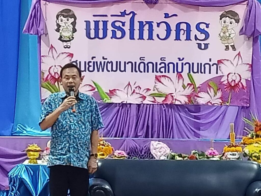 เมื่อเวลา 09.00 น. วันพฤหัสบดีที่ 15 มิถุนายน พ.ศ.2566 ณ. ศูนย์พัฒนาเด็กเล็กบ้านเก่า องค์การบริหารส่วนตำบลบ้านเก่า อำเภอพานทอง จังหวัดชลบุรี นายวินัย คุ้มครอง นายกองค์การบริหารส่วนตำบลบ้านเก่า ได้เดินทางมาเป็นประธานพิธีไหว้ครู ประจำปี 2566 มี ว่าที่ร้อยตรีสุขสันต์ นูพิมพ์ ปลัดองค์การบริหารส่วนตำบลบ้านเก่า เข้าร่วมด้วย โดยมี ผู้อำนวยการศูนย์พัฒนาเด็กเล็กบ้านเก่า ครูผู้ชำนาญการ ผู้ช่วยครูผู้ดูแล เด็กนักเรียน ร่วมงานจำนวนกว่า 120 คน ด้วยกัน บรรยากาศภายในงานได้มีพิธีกราบไหว้พระพุทธรูป สวดมนต์ไหว้พระ ต่อจากนั้นเด็กนักเรียนได้กล่าวปฏิญาณ จะปฏิบัติตนใหเป็นเด็กดี รักชาติ ศาสนา พระมหากษัตริย์ ฯลฯ และ ต่อจากนั้น เด็กนักเรียนได้คุกเข่าและได้นำเอาพานพุ่มดอกไม้ พวงมาลัย มามอบให้กับนายวินัย คุ้มครอง นายกองค์การบริหารส่วนตำบลบ้านเก่า ประธานพิธีและนายสุขสันต์ นูพิมพ์ ปลัดองค์การบริหารส่วนตำบลบ้านเก่า พร้อมกับก้มกราบไหว้