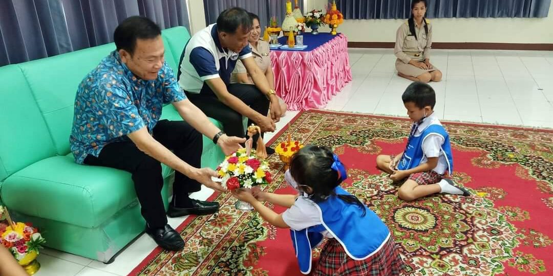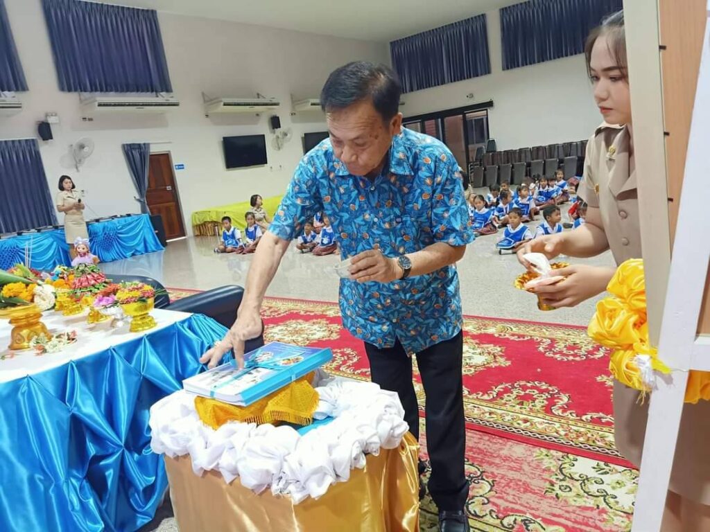 โดยเด็กนักเรียนได้คุกเข่า พร้อมถือพานพุ่มดอกไม้ พวงมาลัย มอบให้กับ นายกฯวินัย คุ้มครอง ประธานพิธี และ ปลัดฯสุขสันต์ นูพิมพ์ ทางนายกฯวินัย คุ้มครอง ประธานพิธีและปลัดฯ สุขสันต์ นูพิมพ์ ได้มอบเงินให้กับเด็กนักเรียนทุกคน และทางนายกฯวินัย คุ้มครอง ได้ทำการเจิมหนังสือเรียนประจำปีการศึกษา 2566 ภาคเรียนใหม่ ให้อีกด้วย พร้อมกับได้กล่าวในงานว่า วันนี้ผมมีความรู้สึกยินดีที่ได้มาเป็นประธานพิธีไหว้ครู ประจำปี 2566 ขอให้เด็กนักเรียนทุกคนได้มีความตั้งใจเรียน เพื่อที่จะได้มีอนาคตที่ดีของตัวเองต่อไป และ ขอให้เป็นลูกที่ดีของพ่อแม่ ผู้ปกครอง เป็นลูกศิษย์ที่ดีของคุณครู ผมขอให้คุณครูทุกท่านได้ช่วยอบรมสั่งสอนและดูแลเด็กทุกคนในศูนย์พัฒนาเด็กเล็กฯของตำบลบ้านเก่า ให้เป็นไปด้วยดีด้วยครับ
