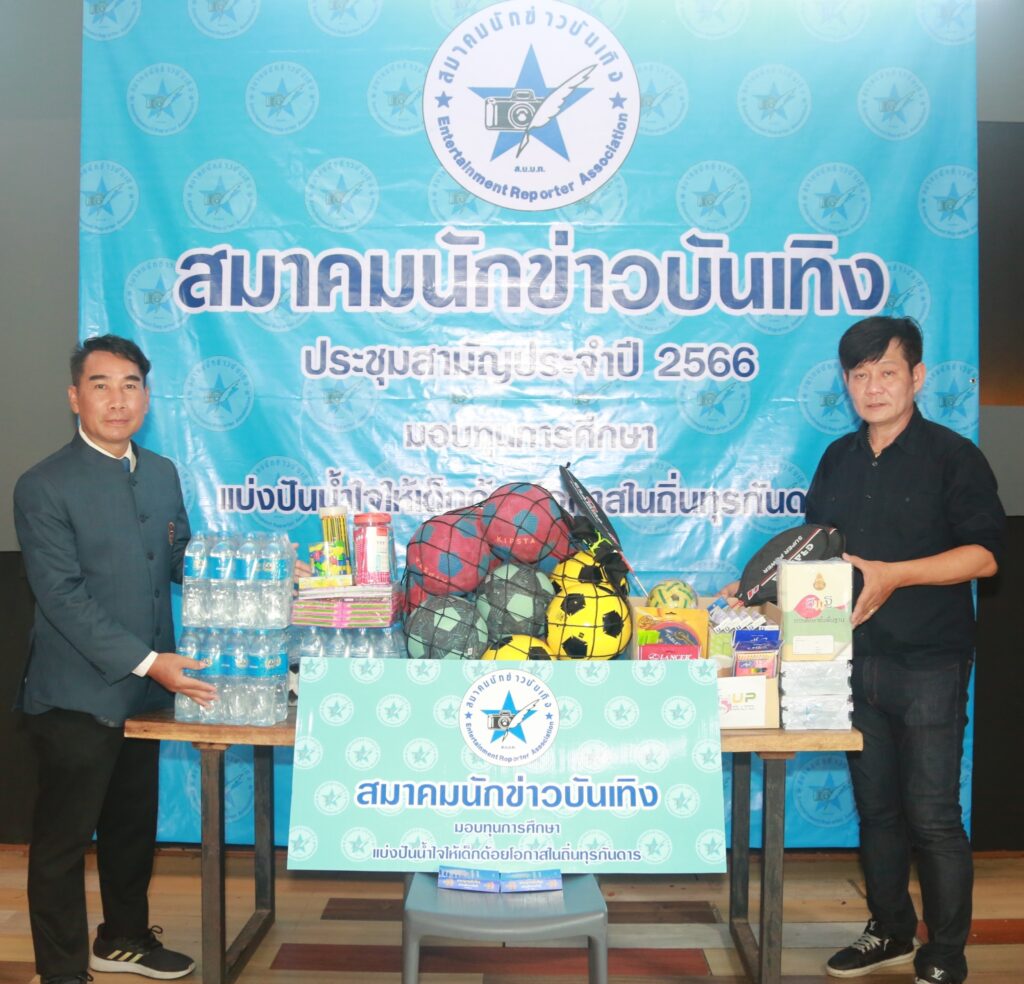 ทั้งนี้สมาคมนักข่าวบันเทิง จึงเรียนเชิญชวนร่วมบริจาคอุปกรณ์กีฬา อุปกรณ์การศึกษา หรือเงินสบทบทุนการศึกษา แบ่งปั่นน้ำใจให้เด็กด้อยโอกาส ณ ศูนย์การเรียนตำรวจตระเวนชายแดนหลวงประกอบนิติสารและท่านผู้หญิงถวิล ที่ตั้ง หมู่ที่ 4 ต.ชะแล อ.ทองผาภูมิ จ.กาญจนบุรี โดยมีกำหนดจะเดินทางไปมอบ ประมาณ เดือน พฤศจิกายน 2566นี้ สามรถติดต่อประสานงานสอบถามเพิ่มเติมได้ที่ : คุณปราโมทย์ สารรัตน์ เบอร์โทร 080 803 2576 ,คุณสุเทพ เบอร์โทร 090-6510421