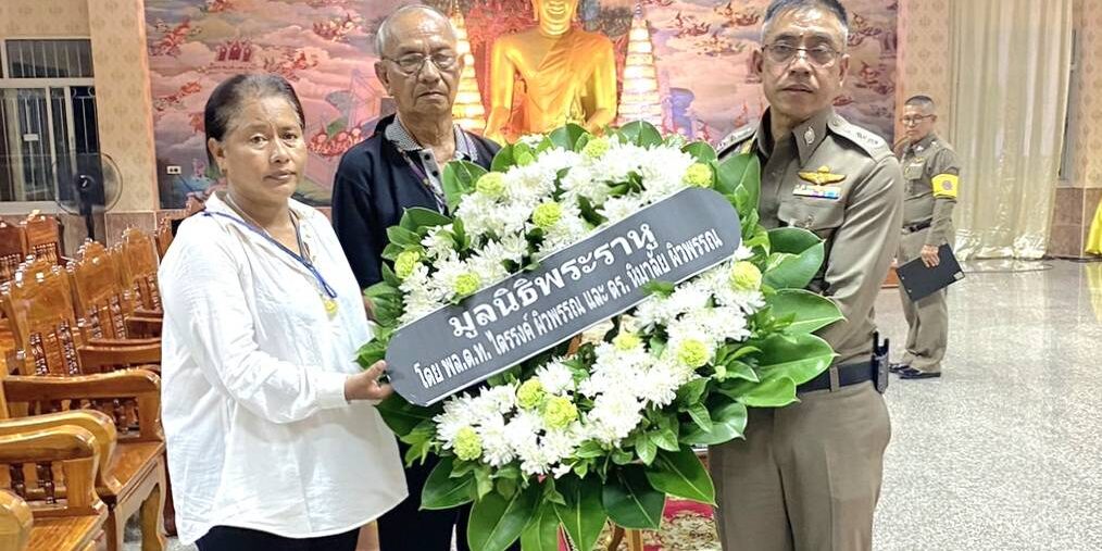 เมื่อวันที่ 12 มิ.ย.66 เวลา 19.30 น.ณ วัดนาประดู่ ต.นาประดู่ อ.โคกโพธิ์ จ.ปัตตานี ดร.หิมาลัย ผิวพรรณ ประธานที่ปรึกษามูลนิธิฯ และพล.ต.ท.ไตรรงค์ ผิวพรรณ ผบช.กมค.ในนาม มูลนิธิพระราหู ร่วมกับ พล.ต.ต.อาชาน จันทร์ศิริ ผบก.ภ.จ.ปัตตานี เข้าร่วมไว้อาลัยและเคารพศพ ส.ต.ท.พิจักษณ์ บัวแก้ว อายุ 22 ปี ผู้บังคับหมู่ หน่วยปฏิบัติการพิเศษ สภ.นาประดู่ (ผบ.หมู่ นปพ.สภ.นาประดู่) อ.โคกโพธิ์ จ.ปัตตานี ซึ่งเสียชีวิตจากเหตุผู้ก่อการร้ายลอบยิงบริเวณป้อมกั้นทางรถไฟในเขตเทศบาลตำบลนาประดู่ อ.โคกโพธิ์ จ.ปัตตานี เมื่อวันที่ 10 มิ.ย. 66 เวลา 11.50 น.ที่ผ่านมา