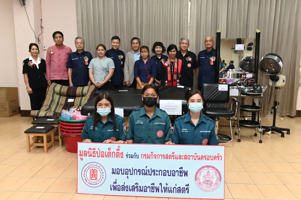 นายวิชิต ชินวงศ์วรกุล รองประธานกรรมการ เปิดเผยว่า สำหรับโครงการส่งเสริมอาชีพเพื่อสตรี มูลนิธิป่อเต็กตึ๊ง ร่วมกับ กรมกิจการสตรีและสถาบันครอบครัว กระทรวงการพัฒนาสังคมและความมั่นคงของมนุษย์ โดยมูลนิธิฯ กำหนดมอบวัสดุอุปกรณ์ประกอบอาชีพให้แก่สตรีที่มีรายได้น้อย มีภาระหน้าที่ดูแลคนในครอบครัว เป็นแม่เลี้ยงเดี่ยว หรือด้อยโอกาสทางสังคม เป็นผู้มีความรู้ความสามารถ แต่ขาดแคลนวัสดุอุปกรณ์ประกอบอาชีพ รวม 8 ศูนย์เรียนรู้การพัฒนาสตรีและครอบครัว ได้แก่ จังหวัดนนทบุรี สงขลา ศรีสะเกษ ขอนแก่น ลำพูน ลำปาง เชียงราย และจังหวัดพิษณุโลก ให้ได้มีวัสดุอุปกรณ์ไปประกอบอาชีพเลี้ยงตนเองและครอบครัว เพื่อเป็นการลดปัญหาความเหลื่อมล้ำในสังคม สร้างความสุขสู่ชุมชน สังคม และประเทศชาติอย่างยั่งยืนต่อไป โดยนับตั้งแต่เริ่มดำเนินการลงพื้นที่ในเดือนเมษายนจนถึงในวันนี้ มูลนิธิฯ มอบอุปกรณ์ประกอบอาชีพรวมจำนวน 7 แห่ง 40 ราย คิดเป็นมูลค่าทั้งสิ้น 662,290 บาท (หกแสนหกหมื่นสองพันสองร้อยเก้าสิบบาทถ้วน