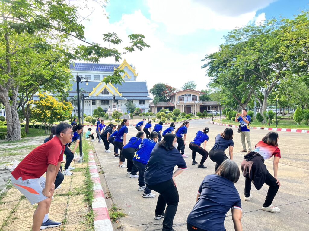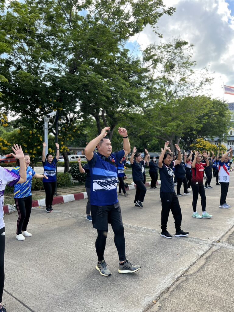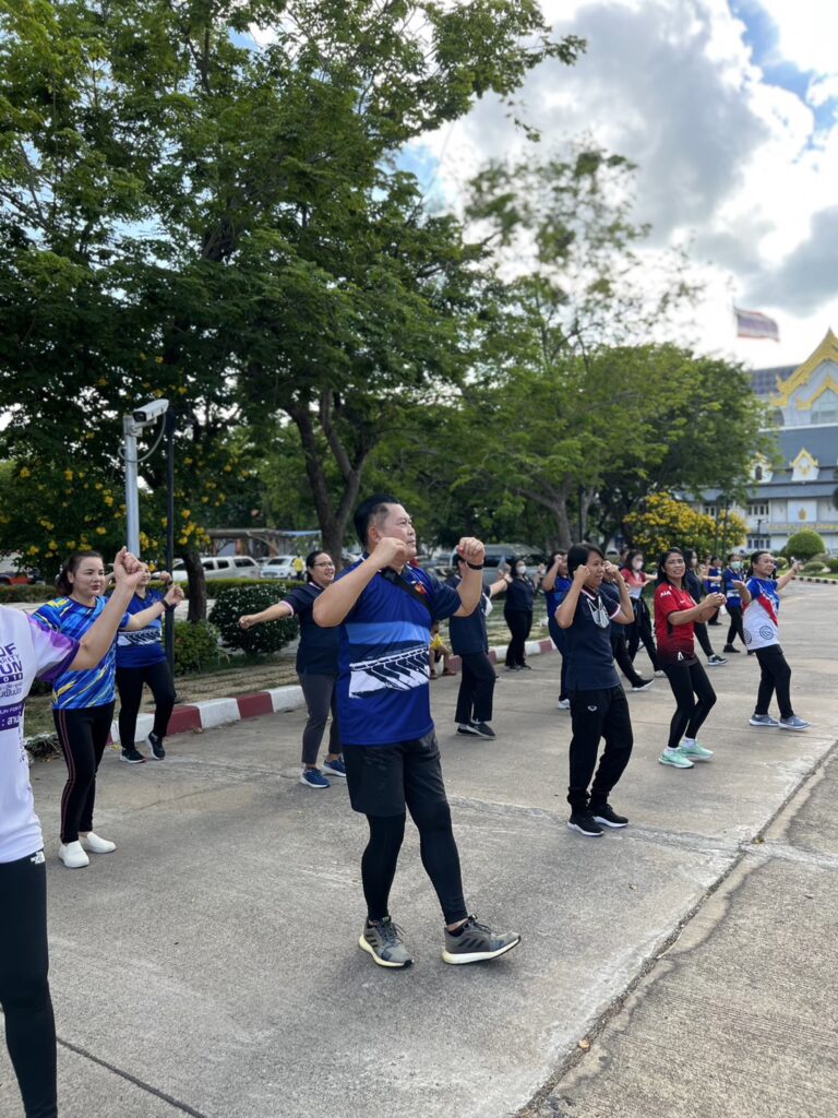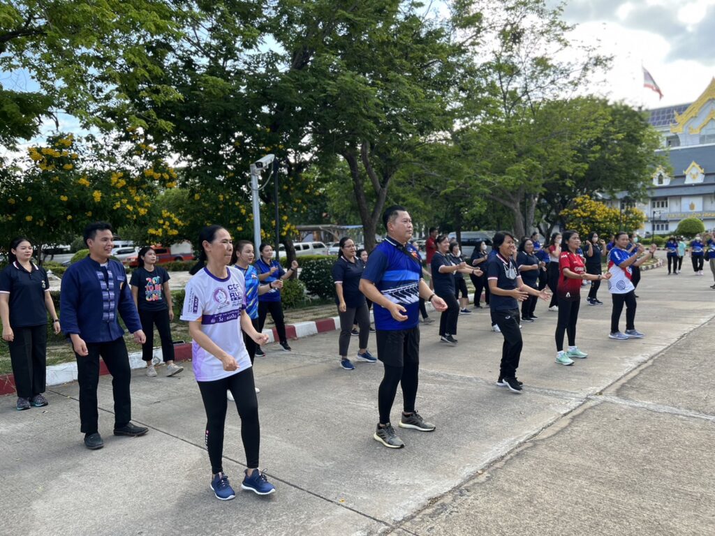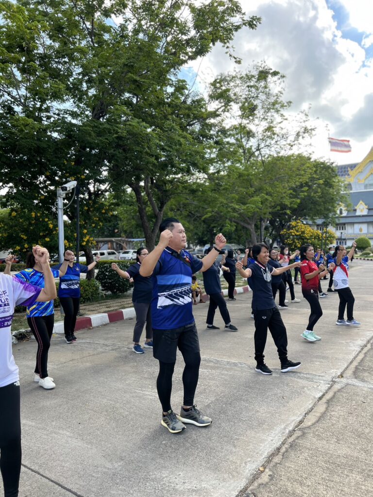 ท่องเที่ยวและกีฬาจังหวัดลพบุรี นำเจ้าหน้าที่และพนักงานออกมาออกกำลังกายเช่นแอโรบิค เพื่อสุขภาพแข็งแรง.