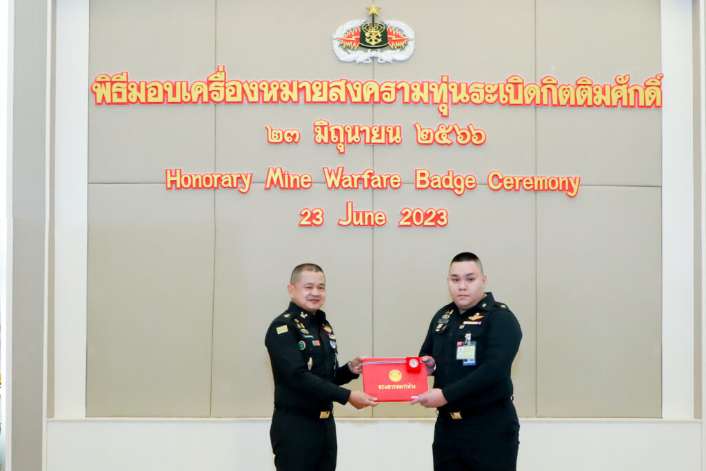 ทหารซึ่งสำเร็จการศึกษาหลักสูตรสงครามทุ่นระเบิดจะได้รับมอบ เครื่องหมายสงครามทุ่นระเบิดติดที่อกเสื้อด้านขวาเหนือป้ายชื่อ และบุคคลผู้ซึ่งทำคุณประโยชน์ให้แก่กรมการทหารช่างและเหล่าทหารช่าง ที่กองทัพบกได้พิจารณามอบเครื่องหมายสงครามทุ่นระเบิดกิตติมศักดิ์ และประกาศนียบัตรให้ในวันสถาปนาเหล่าทหารช่างประจำปีนั้น มีสิทธิ์ประดับเครื่องหมายนี้เพื่อเป็นเกียรติได้