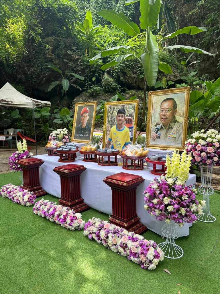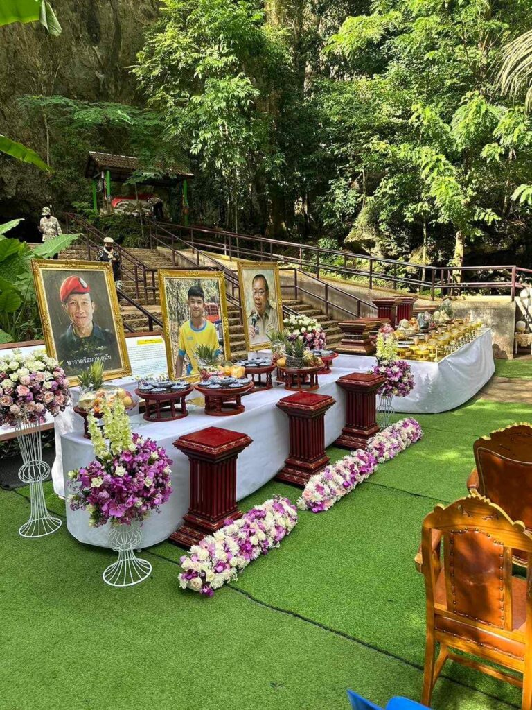 วันที่ 23 มิถุนายน 2566 เพจเฟซบุ๊ก PR.Thailand โฟสต์ภาพการเตรียมสถานที่พิธีทำบุญอุทิศถึง นายณรงค์ศักดิ์ โอสถธนากร หรือ ผู้ว่าฯหมูป่า , นาวาตรี สมาน กุนัน หรือ จ่าแซม และน้องดอม ดวงเพชร พรหมเทพ