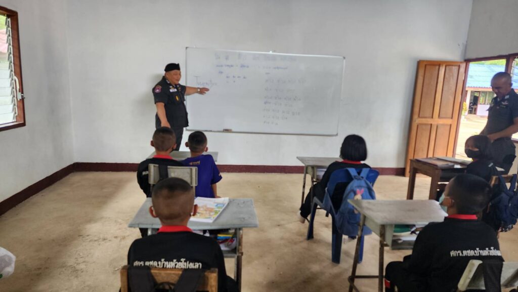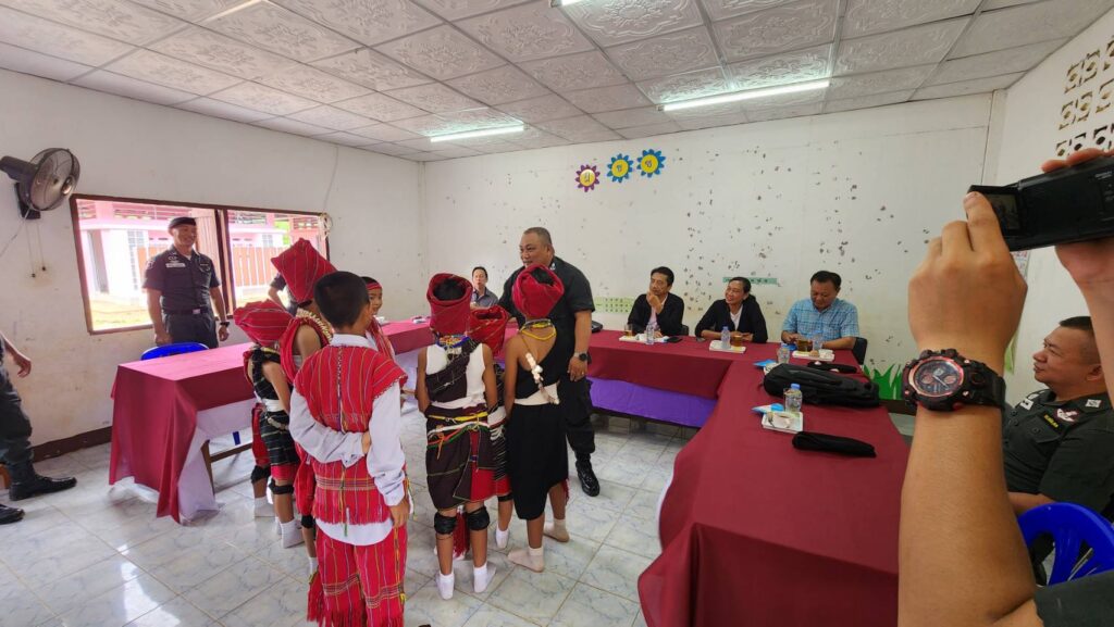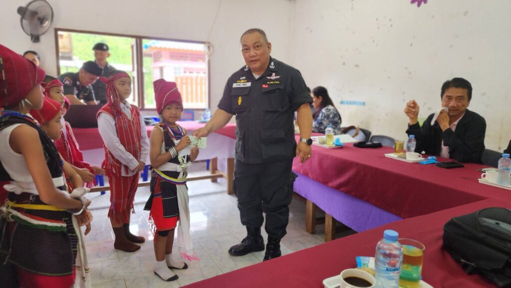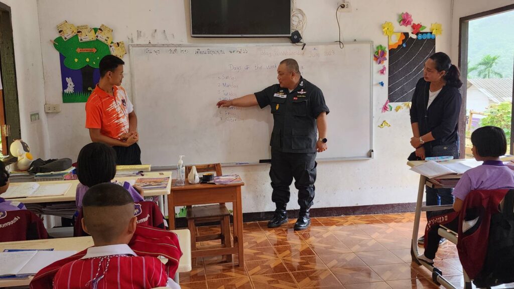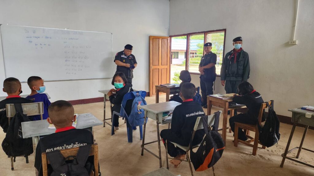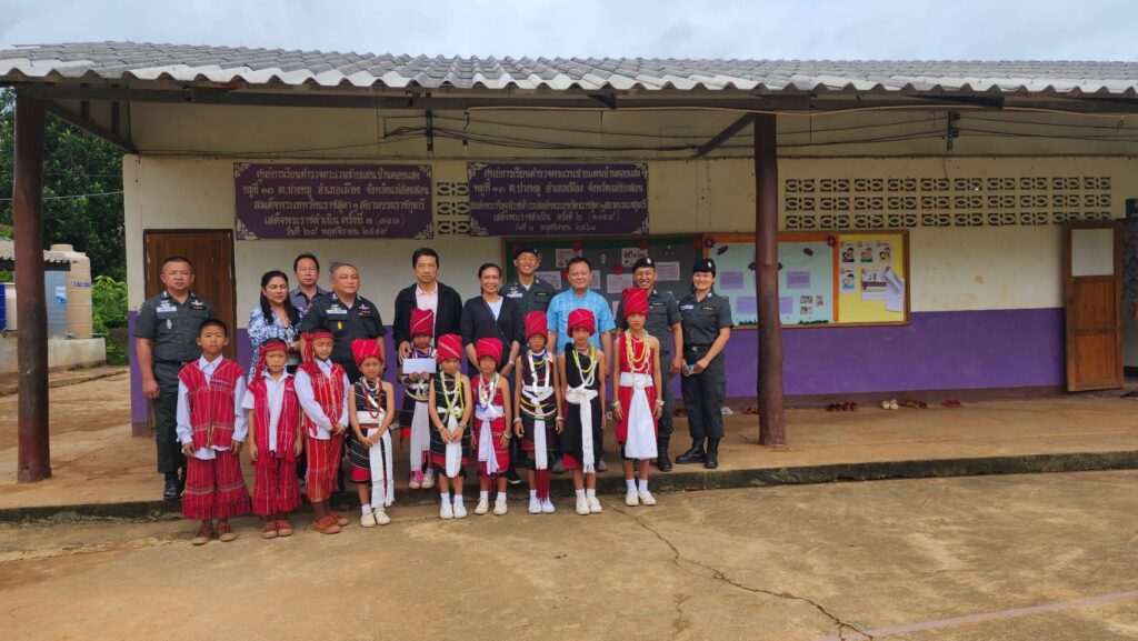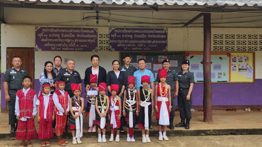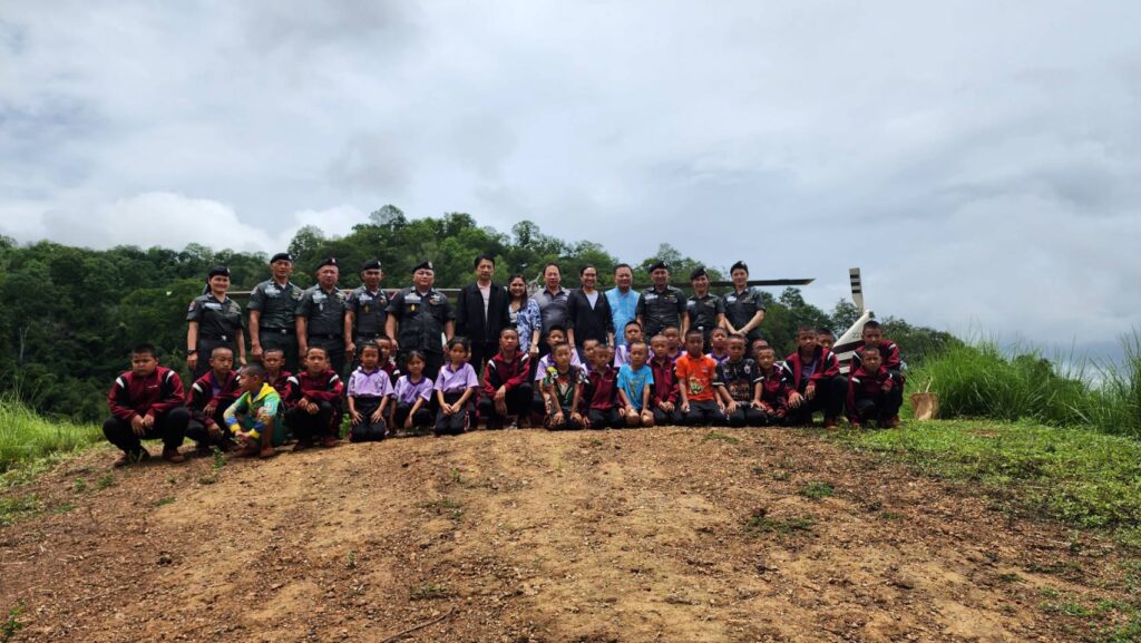 จากนั้นเดินทางต่อเพื่อไปตรวจเยี่ยม รร.ตชด.ห้วยโป่งเลา ต.แม่กิ๊ อ.ขุนยวม จ.แม่ฮ่องสอน เพื่อสำรวจจุดที่จะติดตั้ง ระบบไฟฟ้าโซล่าเซลล์ ให้ รร.ตชด.
