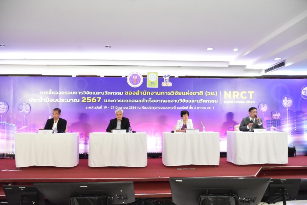 เมื่อวันที่ 23 มิถุนายน 2566 สำนักงานการวิจัยแห่งชาติ (วช.) กระทรวงการอุดมศึกษา วิทยาศาสตร์ วิจัยและนวัตกรรม (อว.) จัดการประชุมชี้แจงกรอบการวิจัยและนวัตกรรม ประจำปีงบประมาณ 2567 (NRCT Open House 2023) และแถลงผลสำเร็จจากการวิจัยและนวัตกรรม ด้านสัตว์เศรษฐกิจ โดยมี ดร.วิภารัตน์ ดีอ่อง ผู้อำนวยการสำนักงานการวิจัยแห่งชาติ (ผอ.วช.) เป็นประธานเปิดการประชุมฯ เพื่อประชาสัมพันธ์เกี่ยวกับการรับข้อเสนอการวิจัยและนวัตกรรม และกรอบการวิจัยและนวัตกรรมที่ (วช.) ให้การสนับสนุนทุนการวิจัยและนวัตกรรม ประจำปีงบประมาณ 2567 ซึ่งกิจกรรมดังกล่าว จัดขึ้นระหว่างวันที่ 19-27 มิถุนายน 2566 ในรูปแบบ onsite ณ ห้องจอมพลสฤษดิ์ ธนะรัชต์ ณ อาคาร วช.1 และรูปแบบออนไลน์ผ่าน (VDO Conference) ด้วยระบบ Zoom การถ่ายทอดสด (Live Streaming) ผ่านช่องทางออนไลน์ Facebook ของสำนักงานการวิจัยแห่งชาติ
