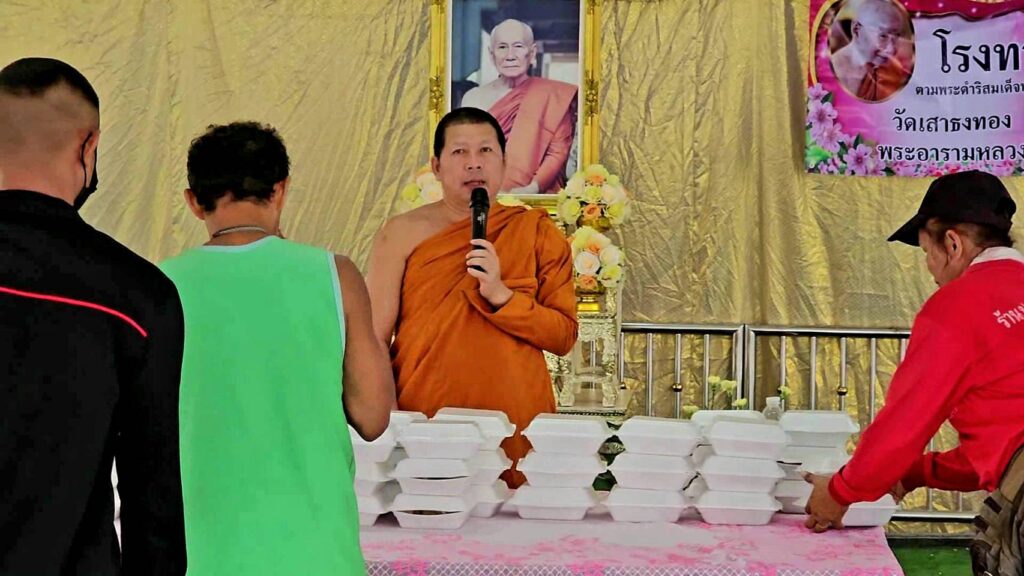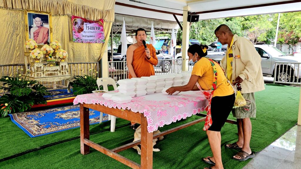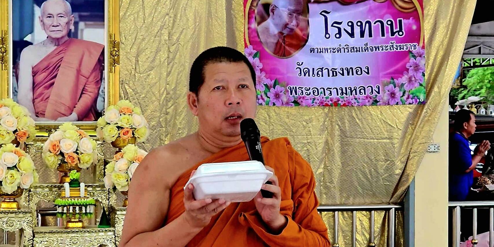 ทั้งนี้ พระครูสิริจริยาภรณ์ เจ้าคณะอำเภอเมืองลพบุรี วัดเสาธงทองพระอารามหลวง กล่าวว่า…ด้วยสำนึกในพระมหากรุณาธิคุณสมเด็จพระอริยวงศาคตญาณสมเด็จพระสังฆราชสกลมหาสังฆปริณายก ที่ได้ทรงบำเพ็ญพระกรณียกิจนานัปการ ยังประโยชน์ต่อการพัฒนาของพุทธศาสนา นำมาซึ่งความร่มเย็นเป็นสุขแก่พุทธศาสนิกชนชาวไทย และในโอกาสเจริญพระชนมายุครบ 8 รอบ 96 พรรษา ในวันที่ 26 มิถุนายน 2566 คณะสงฆ์วัดเสาธงทองพระอารามหลวง จึงได้ได้ร่วมกับคณะญาติธรรมและผู้มีจิตศรัทธา ได้จัดตั้งโรงครัวชั่วคราว เพื่อประกอบอาหารปรุงสุก ในการจัดทำอาหาร แจกจ่าย ข้าวกล่อง เพื่อบรรเทาความเดือนร้อนลดค่าใช้จ่ายให้แก่ประชาชน ซึ่งได้รับความสนใจจากประชาชนเป็นจำนวนมาก