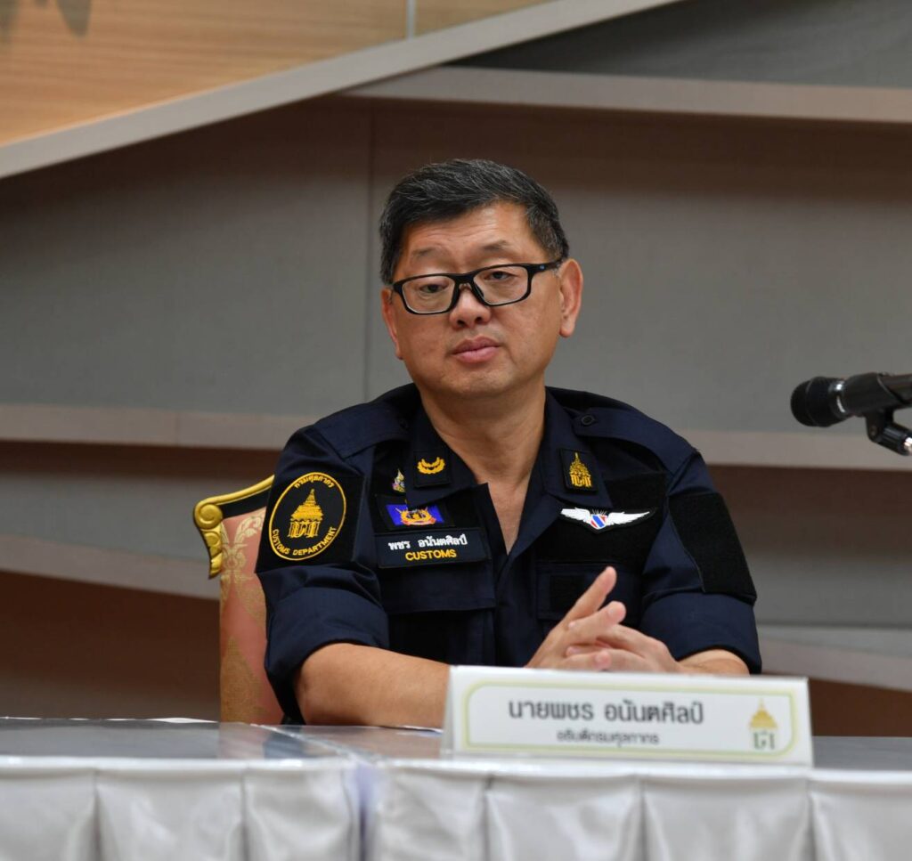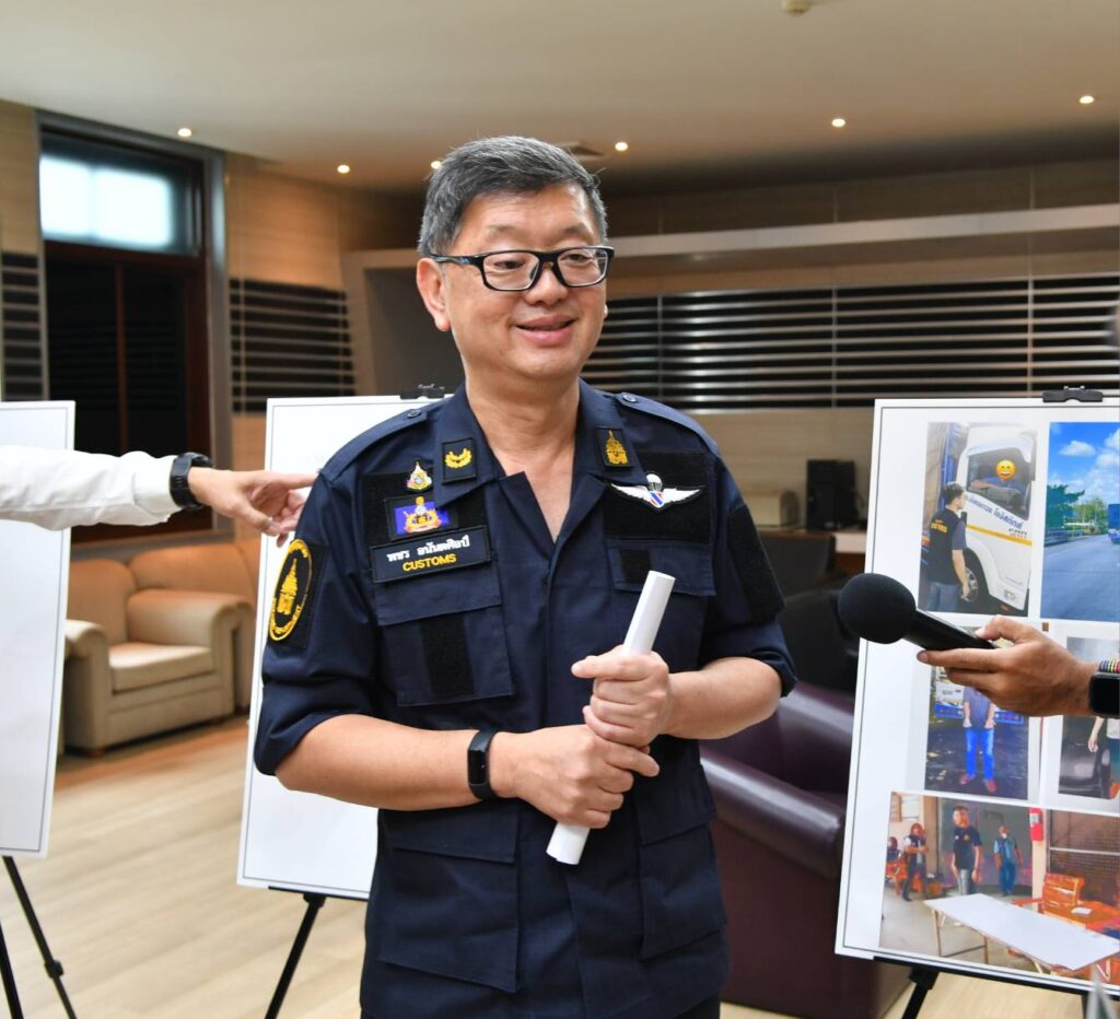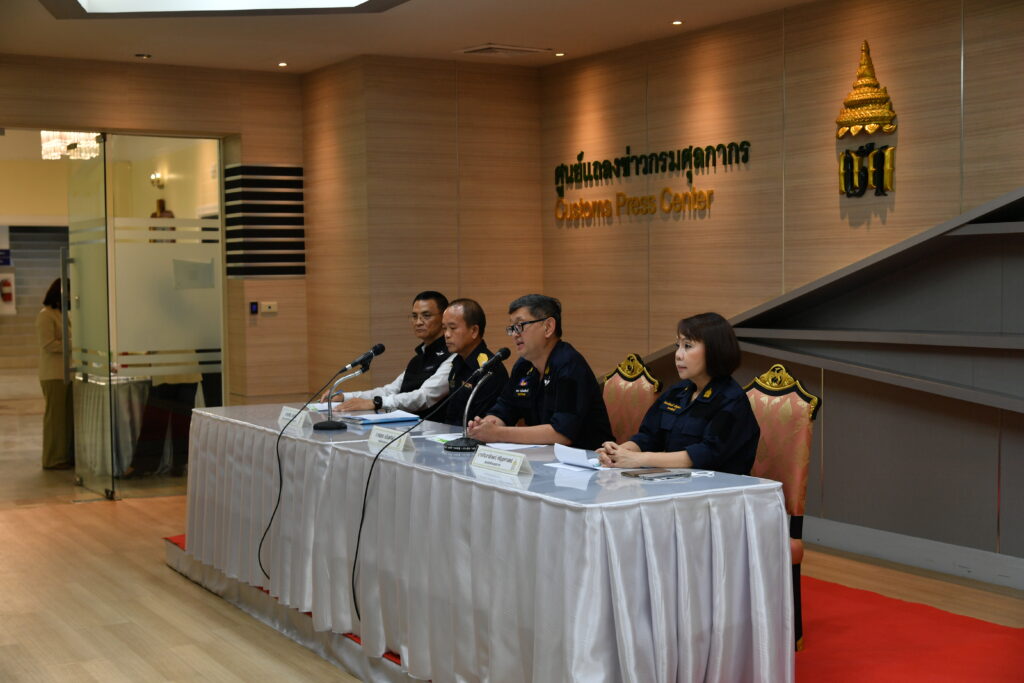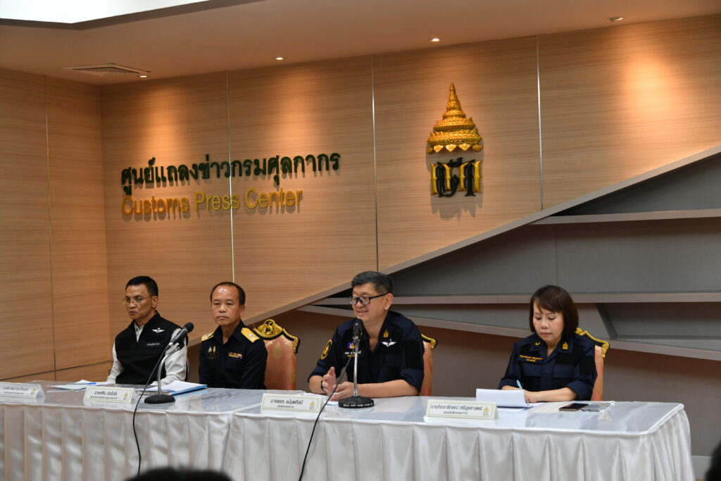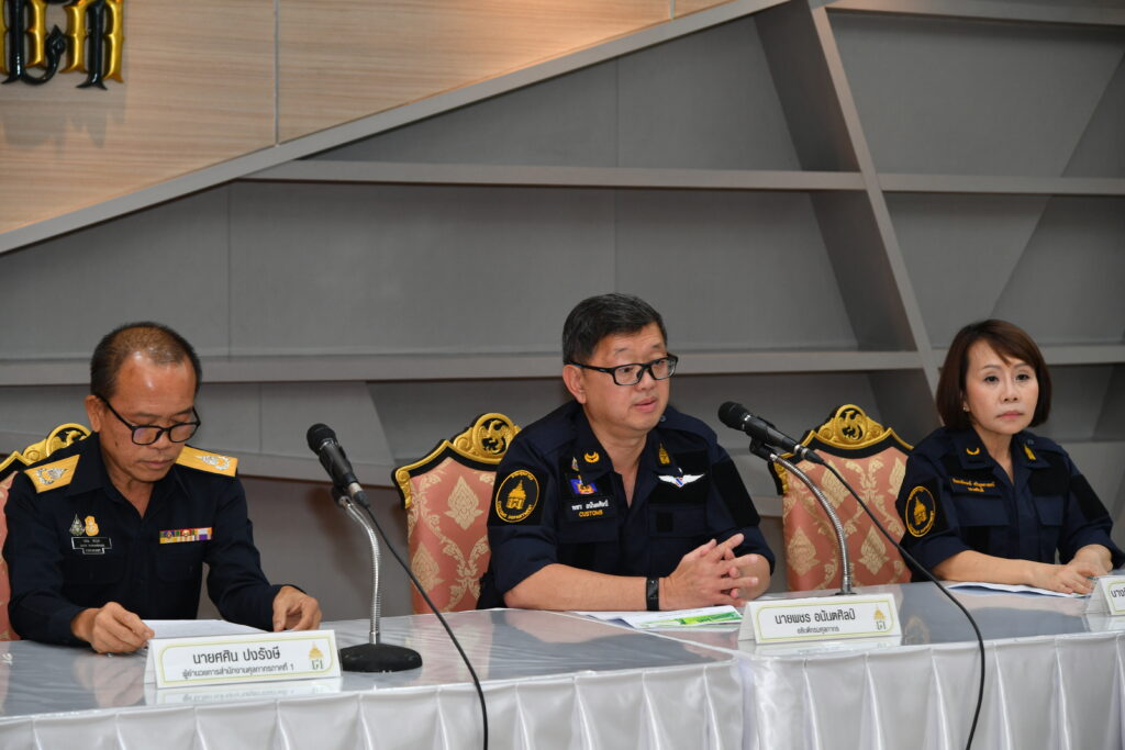 เมื่อวันที่ 26 มิถุนายน 2566 เวลา 14.00 น. ณ ศูนย์แถลงข่าว อาคาร 1 ชั้น 2 กรมศุลกากร : นายพชร อนันตศิลป์ อธิบดีกรมศุลกากร นางกิจจาลักษณ์ ศรีนุชศาสตร์ รองอธิบดี และนายศศิน ปงรังสี ผู้อำนวยการสำนักงานศุลกากรภาคที่ 1 แถลงข่าวชี้แจงกรณีจับทุเรียนลักลอบนำเข้าจากแนวชายแดนไทย-กัมพูชา บริเวณ ต.คลองน้ำใส อ.อรัญประเทศ จ.สระแก้ว จำนวน 8,240 กิโลกรัม มูลค่ากว่า 1 ล้านบาท
