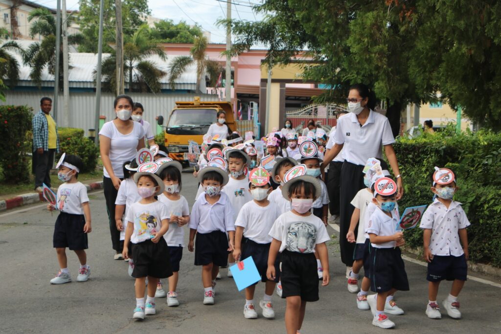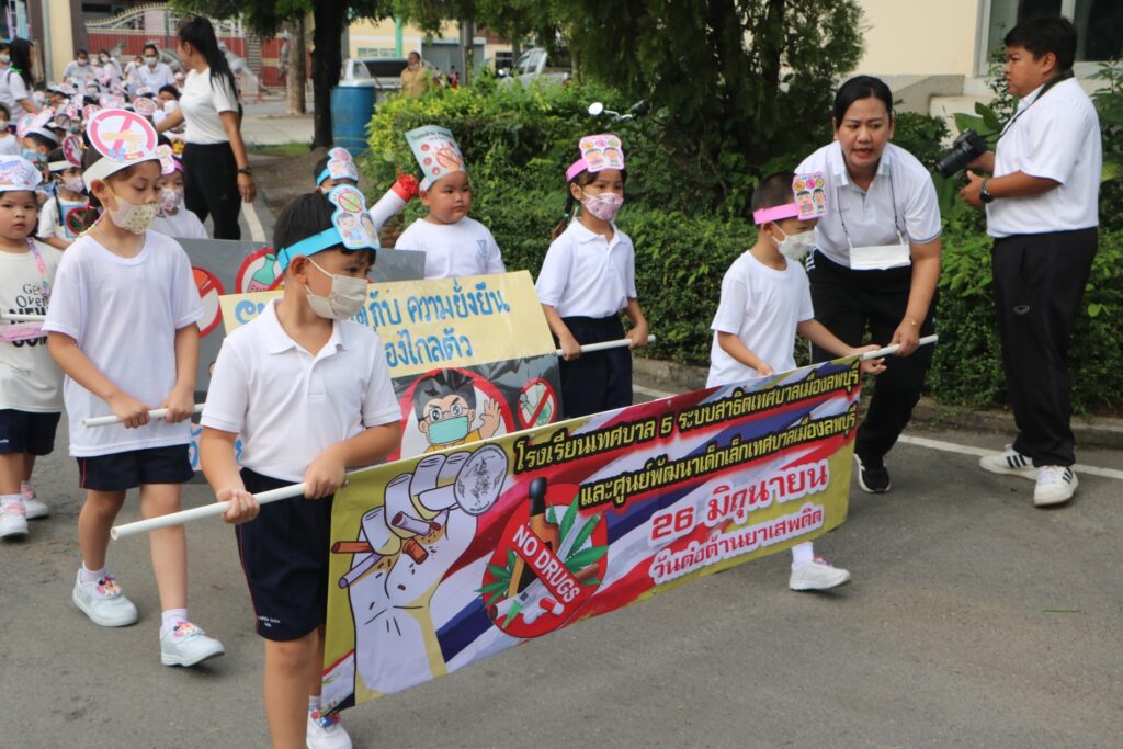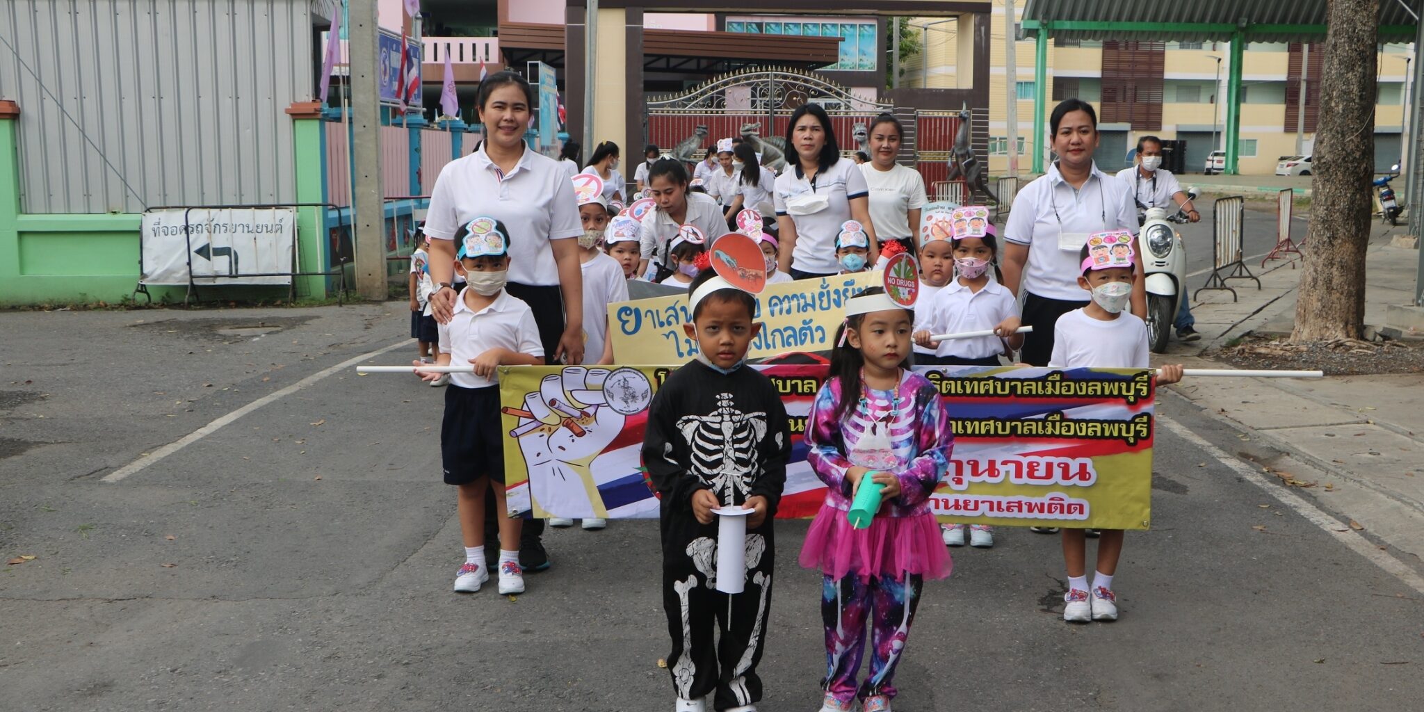 เมื่อวันที่ ๒๖ มิถุนายน ๒๕๖๖ นางสาวสุกัญญา วงษ์ประภา รักษาราชการแทนผู้อำนวยการสถานศึกษา โรงเรียนเทศบาล ๕ ระบบสาธิตเทศบาลเมืองลพบุรี เเละ รักษาราชการแทน หัวหน้าศูนย์พัฒนาเด็กเล็กเทศบาลเมืองลพบุรี พร้อมด้วยคณะครูเเละนักเรียน ร่วมเดินรณรงค์ต่อต้านยาเสพติด เนื่องในวันต่อต้านยาเสพติดโลก ตรงกับวันที่ ๒๖ มิถุนายนของทุกปี ตามประกาศตามมติของสมัชชาใหญ่แห่งสหประชาชาติ (UNGA) เป็นวันสำคัญสากล เพื่อต่อต้านการใช้ยาในทางผิด และค้ายาที่ไม่ถูกต้องตามกฎหมายแสดง“พลังแผ่นดินเอาชนะยาเสพติด”การขับเคลื่อนการดำเนินงานตามนโยบายของนายจำเริญ สละชีพ นายกเทศมนตรีเมืองลพบุรีและรัฐบาล