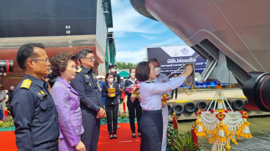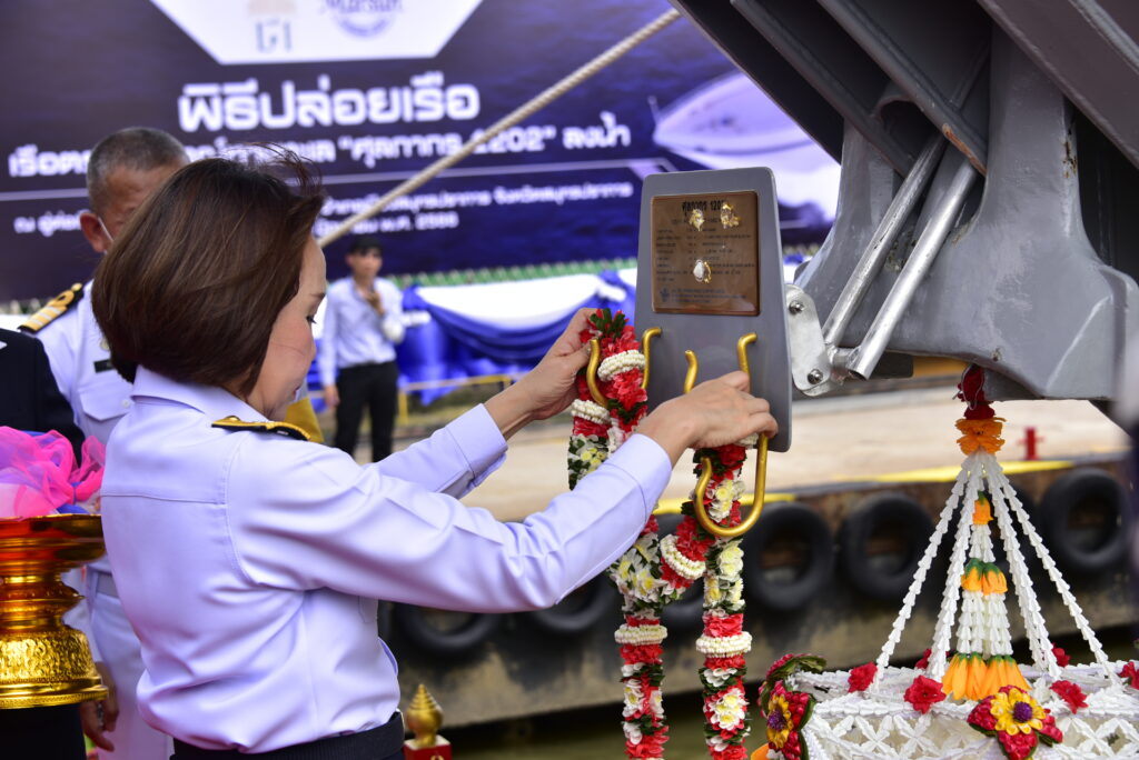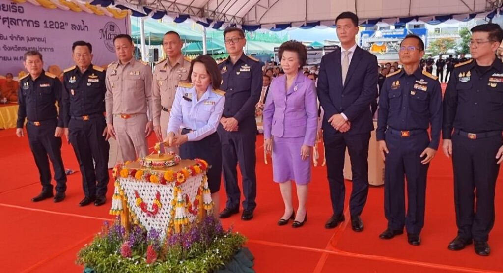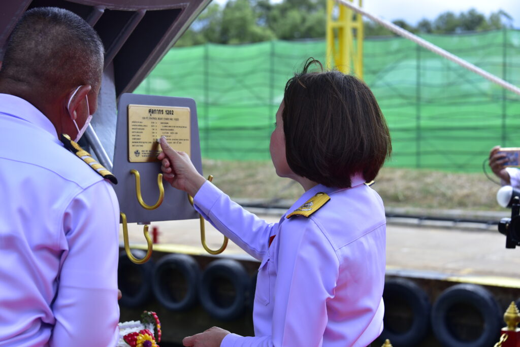 ทางทะเล “ศุลกากร 1202” ลงน้ำ โดยมีนางกิจจาลักษณ์ ศรีนุชศาสตร์ รองอธิบดีกรมศุลกากร เป็นสุภาพสตรีผู้ประกอบพิธีปล่อยเรือลงน้ำตามประเพณีโบราณ ณ อู่ต่อเรือบริษัท มาร์ซัน จำกัด (มหาชน) อำเภอเมืองสมุทรปราการ จังหวัดสมุทรปราการ