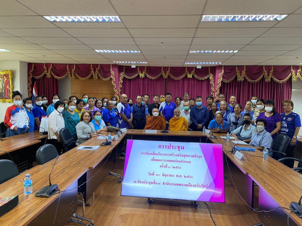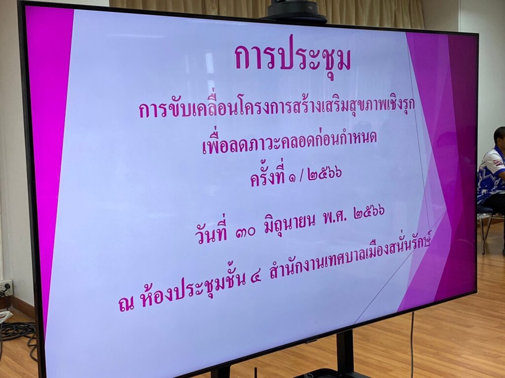 เมื่อ 15.30 น. วันที่ 30 มิถุนายน 2566 เทศบาลเมืองสนั่นรักษ์ ตำบลบึงน้ำรักษ์ อำเภอธัญบุรี จังหวัดปทุมธานี แต่งตั้งคณะกรรมการขับเคลื่อนโครงการสร้างเสริมสุขภาพเชิงรุก เพื่อลดภาวะคลอดก่อนกำหนดของเทศบาลเมืองสนั่นรักษ์ เพื่อกำหนดแนวทางการดำเนินการและการติดตามประเมินผลการดำเนินการให้เป็นไปตามเป้าหมายที่กำหนด โดยมีเป้าหมายเพื่อลดอัตราคลอดก่อนกำหนดในปีงบประมาณ พ.ศ.2566
