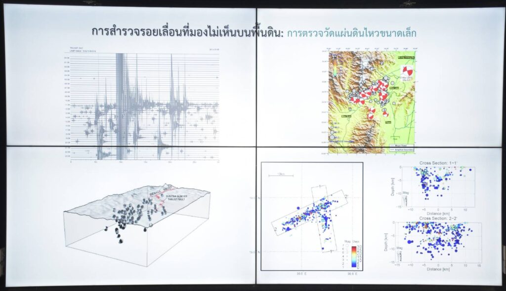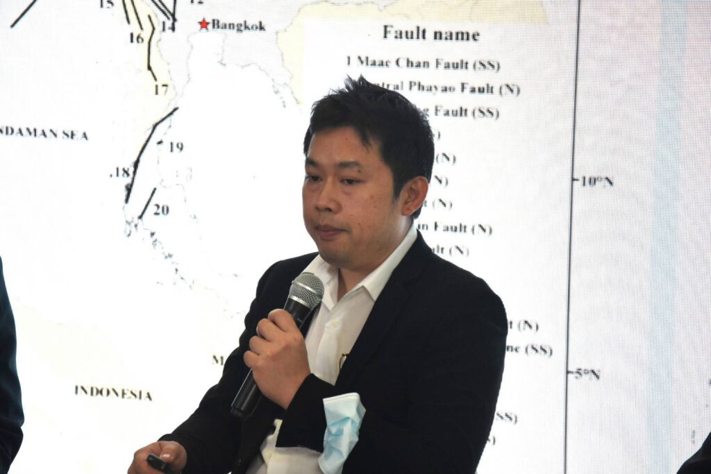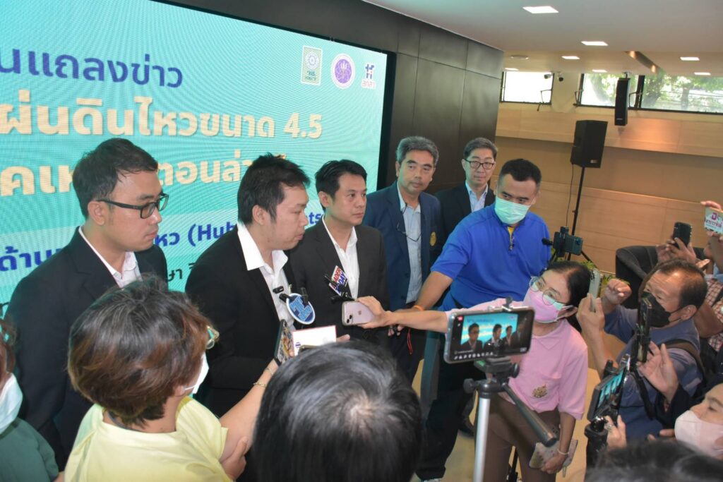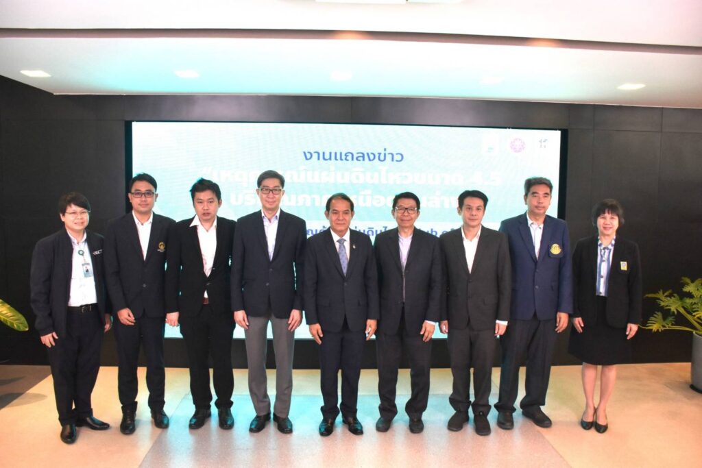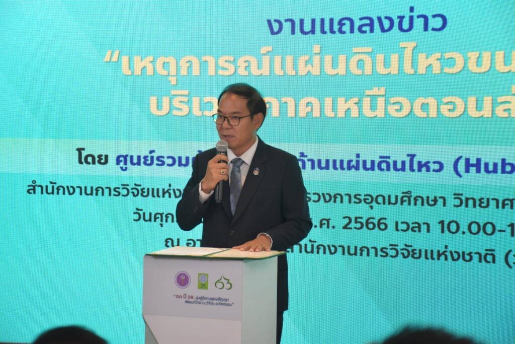 วันที่ 30 มิถุนายน 2566 สำนักงานการวิจัยแห่งชาติ (วช.) กระทรวงการอุดมศึกษา วิทยาศาสตร์ วิจัยและนวัตกรรม (อว.) โดย ดร.วิภารัตน์ ดีอ่อง ผู้อำนวยการสำนักงานการวิจัยแห่งชาติ (ผอ.วช.) ได้มอบหมายให้ นายเอนก บำรุงกิจ รองผู้อำนวยการสำนักงานการวิจัยแห่งชาติ (รอง ผอ.วช.) เป็นประธานกล่าวเปิดงานแถลงข่าว “เหตุการณ์แผ่นดินไหวขนาด 4.5 บริเวณภาคเหนือตอนล่าง” พร้อมด้วย ศ.ดร.วันชัย ดีเอกนามกูลคณะทำงานที่ปรึกษาเพื่อการพัฒนาศูนย์รวมผู้เชี่ยวชาญ (Hub of Talents) และศูนย์กลางด้านความรู้ (Hub of Knowledge) ของ (วช.) ซึ่งภายในงานได้จัดการแถลงข้อมูลเพื่อแลกเปลี่ยนความรู้ในการรับมือกับภัยพิบัติทางธรรมชาติ โดย ผศ.ดร.ปานนท์ ลาชโรจน์ นักวิจัยมหาวิทยาลัยมหิดล เป็นผู้ดำเนินรายการ ประกอบด้วย ประเด็น “ความเสี่ยงภัยแผ่นดินไหวและสถิติการเกิดแผ่นดินไหวในพื้นที่ภาคเหนือตอนล่าง” โดย รศ.ดร.ธีรพันธ์ อรธรรมรัตน์ นักวิจัยมหาวิทยาลัยมหิดล ประเด็น “ลักษณะรอยเลื่อนในพื้นที่ภาคเหนือตอนล่าง” โดย รศ.ดร.ภาสกร ปนานนท์ นักวิจัยมหาวิทยาลัยเกษตรศาสตร์ ประเด็น “ผลกระทบจากแผ่นดินไหวที่มีต่อโครงสร้าง” โดย ศ.ดร.อมร พิมานมาศ นักวิจัยมหาวิทยาลัยเกษตรศาสตร์ และประเด็น “ศูนย์รวมผู้เชี่ยวชาญด้านแผ่นดินไหวและการศึกษาวิจัยที่เกี่ยวข้อง” โดย รศ.ดร.สุทัศน์ ลีลาทวีวัฒน์ นักวิจัยมหาวิทยาลัยเทคโนโลยีพระจอมเกล้าธนบุรี ณ ศูนย์ข้อมูลสารสนเทศกลางด้านวิทยาศาสตร์ วิจัยและนวัตกรรมของประเทศ อาคาร วช.8