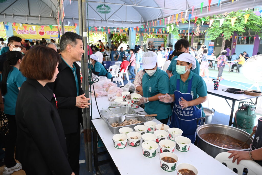 วันนี้ (วันเสาร์ที่ 1 กรกฎาคม พ.ศ. 2566) มูลนิธิป่อเต็กตึ๊ง นำโดย นายวิชิต ชินวงศ์วรกุล รองประธานกรรมการ เป็นประธานในพิธี พร้อมด้วยนางศิริกุล โอภาสวงศ์ กรรมการและเลขาธิการ นายนิพนธ์ โชคภิรมย์วงศา กรรมการปฏิคม และนายชาญกิจ วิทยาวรากรณ์ กรรมการ จัดคาราวานป่อเต็กตึ๊ง ปันความสุข ให้ชุมชน” ยกทัพอาสาสมัครศิลปิน นำโดย นายนพดล ทรงแสง (จิ้ม ชวนชื่น) นายธวัชชัย คชาอนันต์ (แฮ็ค ชวนชื่น) นายปิยะวัฒน์ รัตนหรูวิจิตร (หรูหรา) นางสาววรินดา คุปติธรรมกุล (ปุ๊กกี้) นางสาวอธิชา เทศขำ (เมย์-อธิชา) และอาสาสมัครศิลปินอีกหลายท่าน ร่วมกิจกรรมแจกอาหาร เครื่องดื่ม ของขวัญ และของรางวัลสุดพิเศษกว่า 100 รายการ พร้อมนำหน่วยแพทย์สงเคราะห์ชุมชนมูลนิธิป่อเต็กตึ๊ง และหน่วยงานในเครือ ได้แก่ โรงพยาบาลหัวเฉียว คลินิกการประกอบโรคศิลปะ สาขาการแพทย์แผนจีนหัวเฉียว และมหาวิทยาลัยหัวเฉียวเฉลิมพระเกียรติ ให้บริการทางด้านการแพทย์แก่ประชาชนโดยไม่มีค่าใช้จ่ายใดๆ อาทิ ตรวจรักษาโรคทั่วไป แจกจ่ายยา นวดทุยหนา ตรวจและแจกแว่นสายตา ตัดผม การบริการฉีดวัคซีนโควิด-19 การเจาะเลือด เพื่อตรวจการทำงานของตับ ไต ไขมันในเส้นเลือด น้ำตาลในเลือด และเก๊าท์เบื้องต้น ฯลฯ โดยมี อาสาสมัครมูลนิธิฯ และแขกผู้มีเกียรติ ร่วมในพิธี ณ โรงเรียนสุวรรณพลับพลาพิทยาคม เขตตลิ่งชัน กรุงเทพมหานคร
