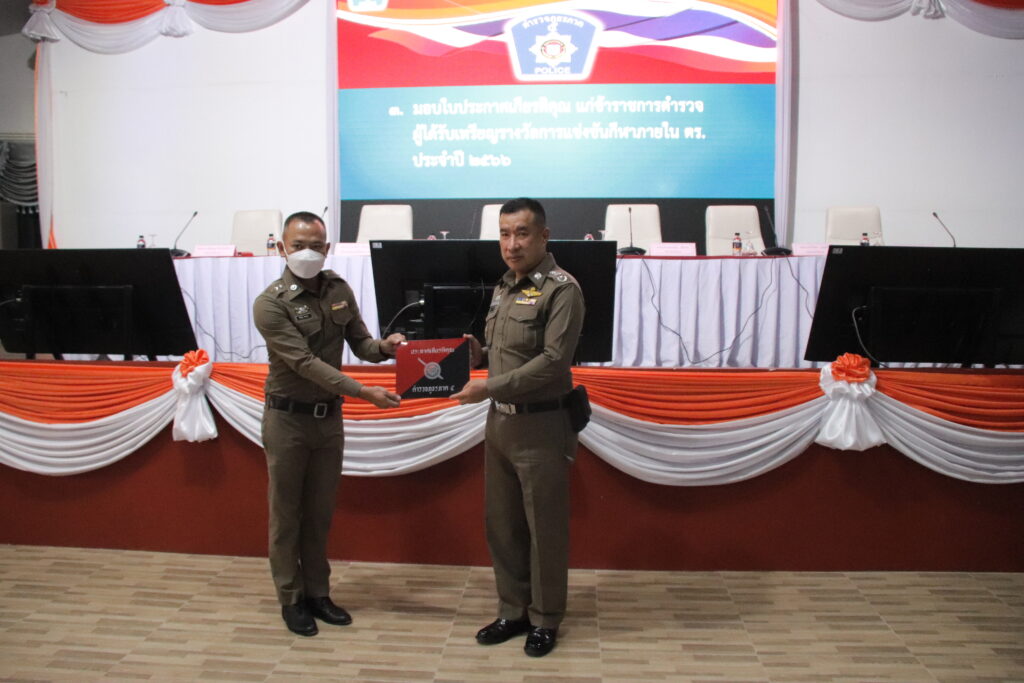 โดยผู้ได้รับเกียรติบัตร โครงการ “ทำดีมีรางวัล” ประเภทข้าราชการตำรวจ ระดับ รอง สว.- ผบ.หมู่ ทุกสายงาน ได้แก่ ด.ต.จีรศักดิ์ ทองประไพ ผบ.หมู่(ป) สภ.วังหงส์ จ.แพร่ เนื่องด้วยเป็นผู้มีความวิริยะอุตสาหะ ตั้งใจปฏิบัติหน้าที่ที่รับผิดชอบ ,ปฏิบัติหน้าที่ดีเด่นด้านการปราบปราม และช่วยเหลือประชาชนที่ประสบอุบัติเหตุทางรถยนต์ ยางหลังรั่วเป็นแนวยาว ซึ่งเจ้าของรถไม่มีอุปกรณ์ประจำรถ ได้ช่วยเหลือนำอุปกรณ์มาช่วยเปลี่ยนยางอะไหล่ให้ สามารถออกเดินทางต่อไปได้
