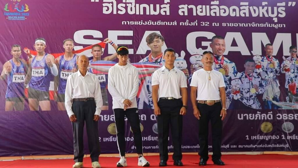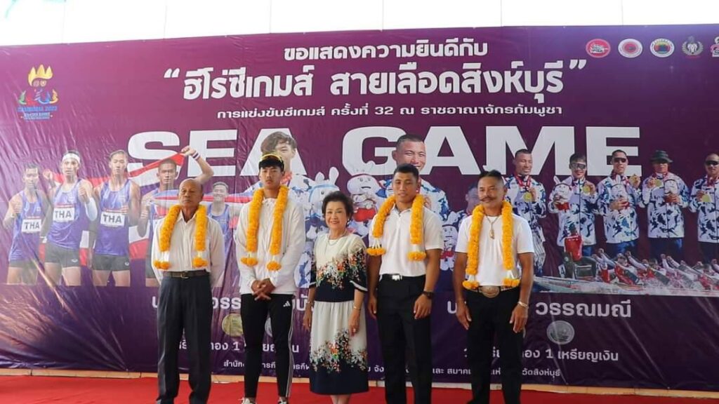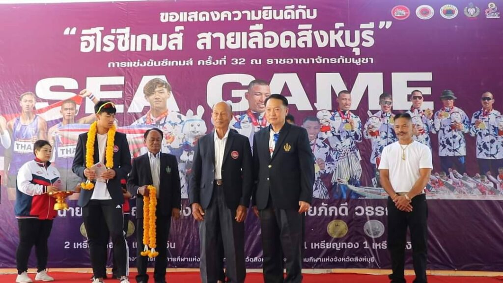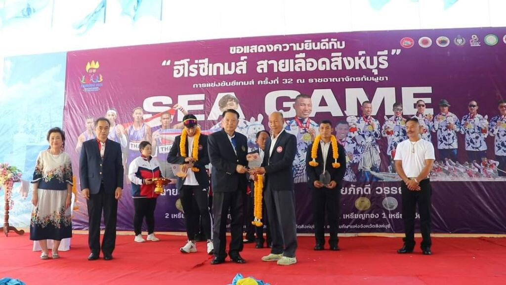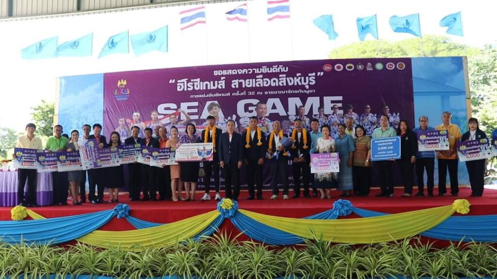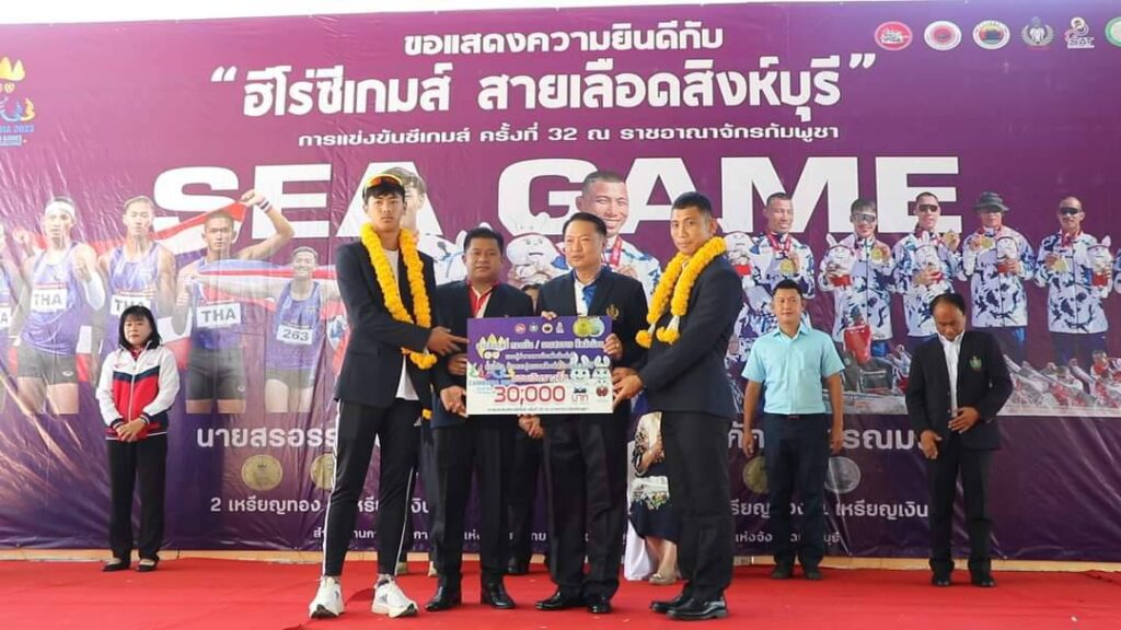 ทุกภาคส่วนในจังหวัดสิงห์บุรี ร่วมพิธีมอบเสื้อสามารถ โล่เชิดชูเกียรติ และเงินรางวัลให้กับนักกีฬาและผู้ฝึกสอน ให้กับนายสรอรรถ ดาบบัง คว้า 2 เหรียญทอง 1 เหรียญเงินกีฬากรีฑา และนายภักดี วรรณมณี คว้า 1 เหรียญทอง 1 เหรียญเงินกีฬาเรือพาย ประเภทเรือมังกร ทั้งสองคนเป็นสายเลือดของจังหวัดสิงห์บุรีได้สร้างชื่อเสียงให้กับประเทศชาติและสร้างผลงานให้กับตัวเองโดยการคว้าเหรียญรางวัลให้กับประเทศไทยและพี่น้องชาวจังหวัดสิงห์บุรีมีความภาคภูมิใจ