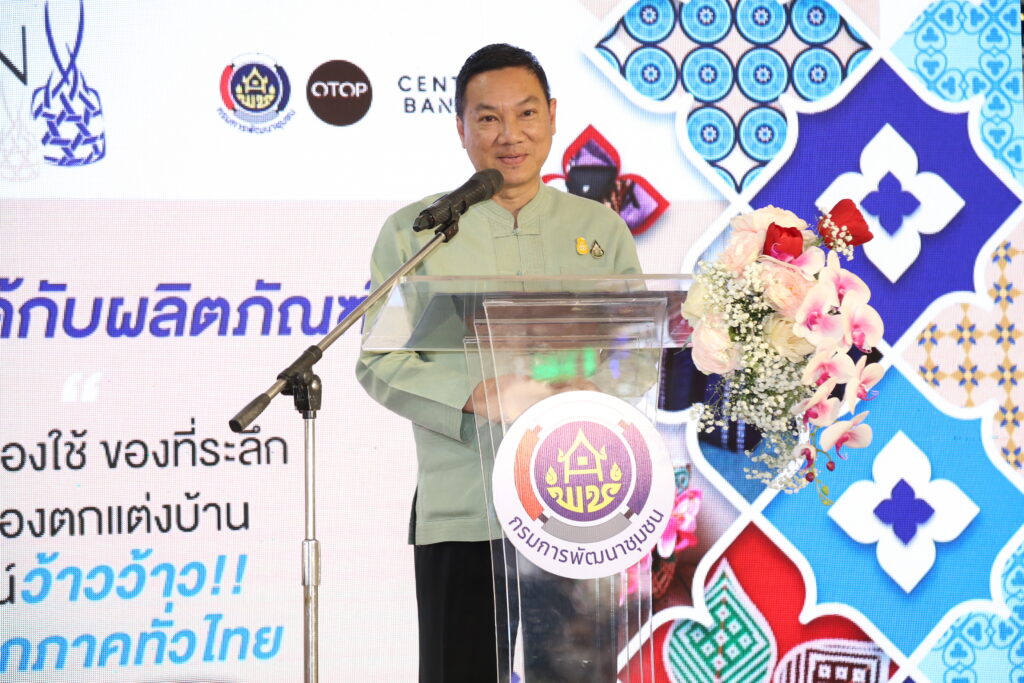นายอรรษิษฐ์ฯ กล่าวว่า กรมการพัฒนาชุมชนได้ดำเนินงานโครงการหนึ่งตำบล หนึ่งผลิตภัณฑ์ (OTOP) โดยส่งเสริมการลงทะเบียนผู้ผลิตและผู้ประกอบการ OTOP มาอย่างต่อเนื่อง ปัจจุบันมีจำนวนผู้ผลิต และผู้ประกอบการ OTOP จำนวน 97,761 กลุ่ม/ราย และมีผลิตภัณฑ์ OTOP จำนวน 220,788 ผลิตภัณฑ์ ในจำนวนนี้แยกเป็นผลิตภัณฑ์ ในกลุ่มปรับตัวสู่การพัฒนา (Quadrant D) จำนวน 178,157 ผลิตภัณฑ์ ซึ่งผลิตภัณฑ์กลุ่มนี้ยังมีข้อจำกัดเรื่องคุณภาพมาตรฐานผลิตภัณฑ์ รูปแบบผลิตภัณฑ์และบรรจุภัณฑ์ที่ยังไม่สวยงามโดดเด่นหรือยังไม่ตรงกับความต้องการของตลาด ขณะเดียวกัน ผลิต ผู้ประกอบการ OTOP ยังขาดองค์ความรู้ในด้านการบริหารจัดการการพัฒนาผลิตภัณฑ์ และเพื่อเป็นการการพัฒนายกระดับผลิตภัณฑ์ OTOP กลุ่มปรับตัวสู่การพัฒนา (Quadrant D) ประเภทของใช้ ของตกแต่ง ของที่ระลึก ประกอบด้วย สินค้าที่ทำมาจากไม้ สินค้าที่ทำจากโลหะเป็นหลัก สินค้าจักสาน ถักทอ ดอกไม้ประดิษฐ์ เซรามิค เครื่องปั้นดินเผา เคหะสิ่งทอ และอื่นๆ สำนักส่งเสริมภูมิปัญญาท้องถิ่นและวิสาหกิจชุมชน กรมการพัฒนาชุมชน จึงได้จัดทำโครงการพัฒนาผลิตภัณฑ์ OTOP กลุ่มปรับตัวสู่การพัฒนา (Quadrant D) ให้มีคุณภาพมาตรฐานตามกลุ่มคลัสเตอร์ ขึ้น โดยมีการคัดเลือกผู้ผลิตและผู้ประกอบการ OTOP ที่มีความโดดเด่น น่าสนใจ จำนวน 40 ผลิตภัณฑ์ จากทั้งหมด 369 ราย/กลุ่ม มาจัดแสดงและจำหน่ายให้กับผู้เข้าร่วมงาน