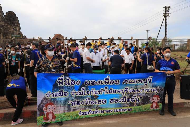 เมืองเก่าลพบุรี ในกิจกรรม “สองมือเธอ สองมือฉัน ช่วยกันทำความสะอาด” โดยแยกทำความสะอาด 3 พื้นที่ คือ พื้นที่หน้าอาคารท่องเที่ยว ใกล้ศาลพระกาฬ ไปยังถนนราชดำเนินหน้าห้างอภิญญา พื้นที่หน้าร้านชโยวานิชไปยังโรงภาพยนตร์มาลัยรามา และพื้นที่ปรางค์แขกไปยังพระนารายณ์ราชนิเวศน์ เพื่อปรับปรุงภูมิทัศน์ พัฒนาเมือง โบราณสถาน สถานที่ราชการ สถานศึกษา ศาสนสถาน สถานที่ท่องเที่ยวต่างๆ ให้เป็นระเบียบเรียบร้อย เอื้อต่อการอยู่อาศัยของประชาชน