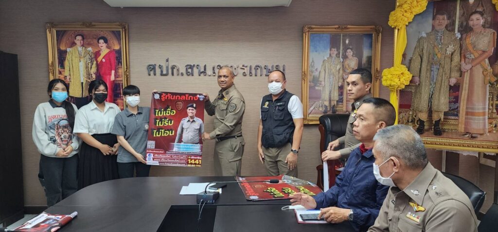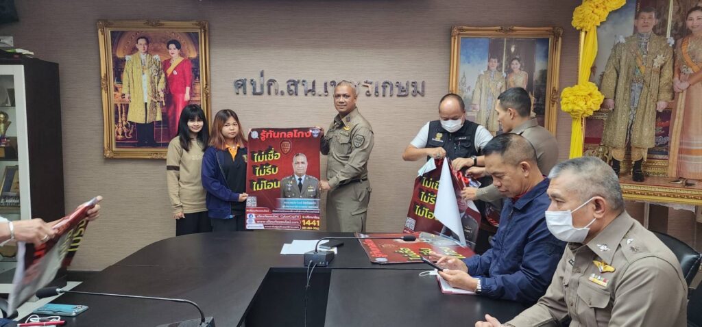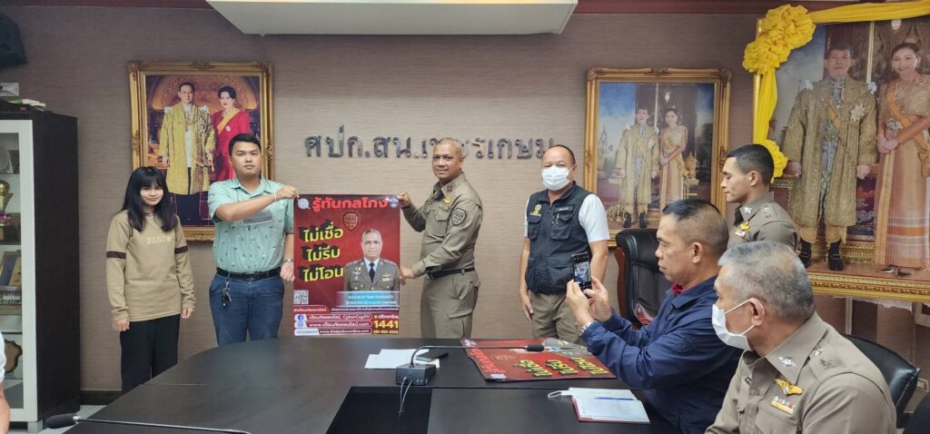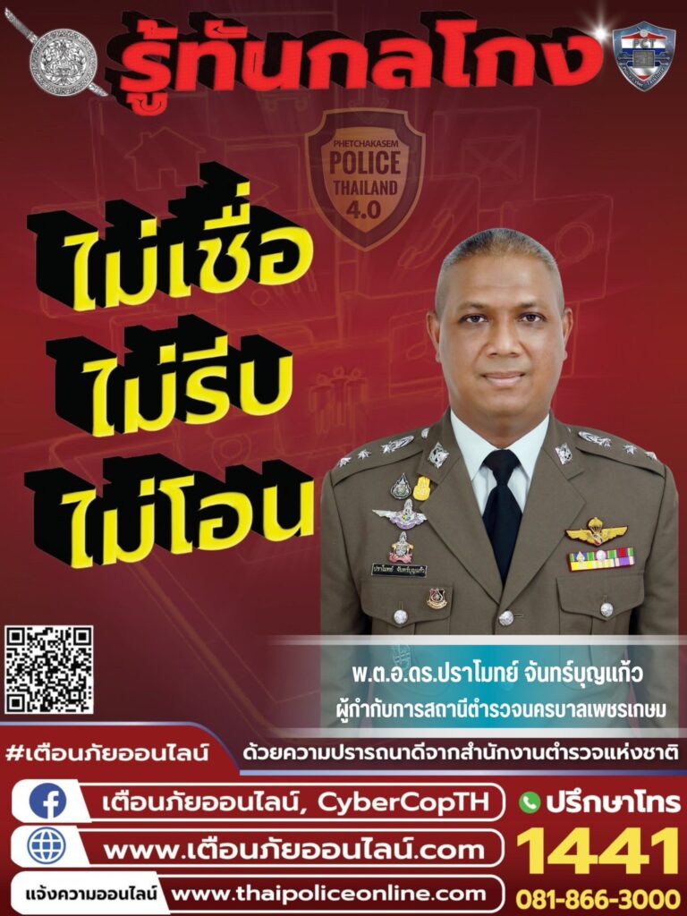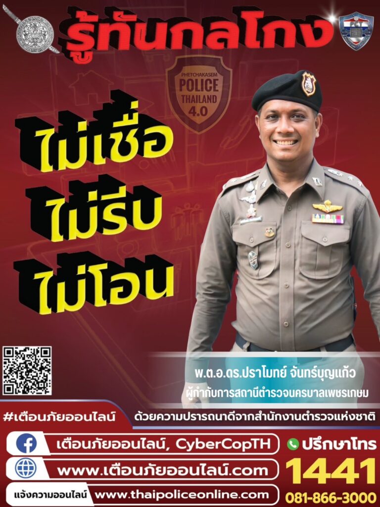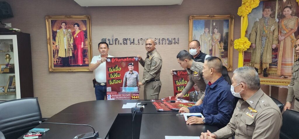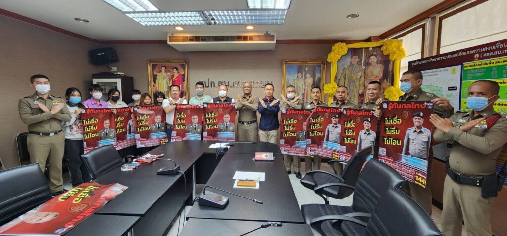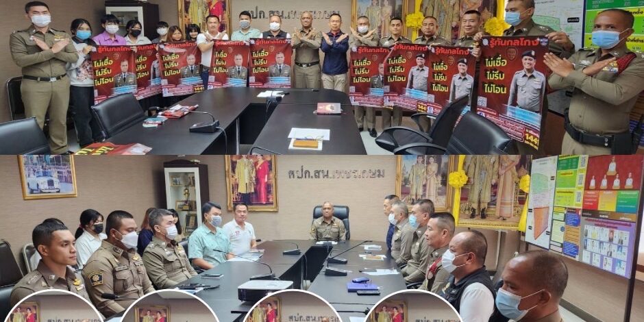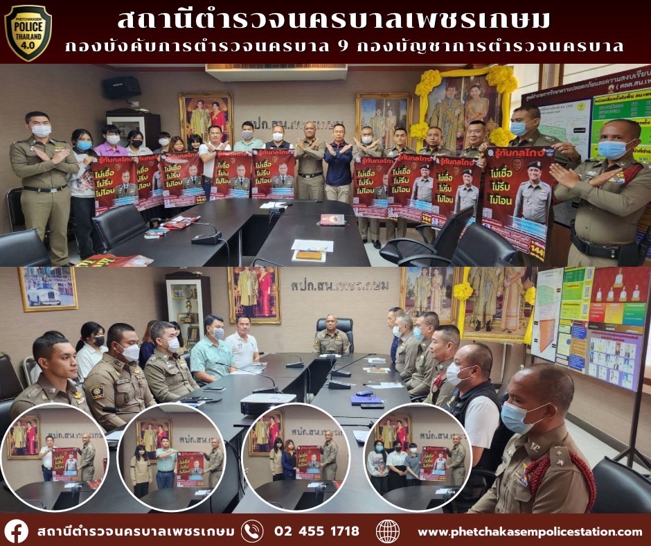 เมื่อวันที่ 5 ก.ค.2566 เวลาประมาณ 09.30 น.: พ.ต.อ.ดร.ปราโมทย์ จันทร์บุญแก้ว ผกก.สน.เพชรเกษม พร้อมด้วย คุณวรเศรษฐ์ กุศลธรรมรัตน์ ที่ปรึกษา กต.ตร.สน.เพชรเกษม,คุณณัฐชัย ตันสงวน ทนายอาสา ประจำ สน.เพชรเกษม พร้อมด้วยตัวแทนภาคประชาชน ร่วมฟังการประชุมพิธีเปิดการรณรงค์ “ผนึกกำลังร่วมใจ ต้านภัยไซเบอร์ ไม่เชื่อ ไม่รีบ ไม่โอน รู้ทันกลโกง” ผ่านระบบประชุมทางไกล ณ ห้องประชุม ชั้น 2 สน.เพชรเกษม