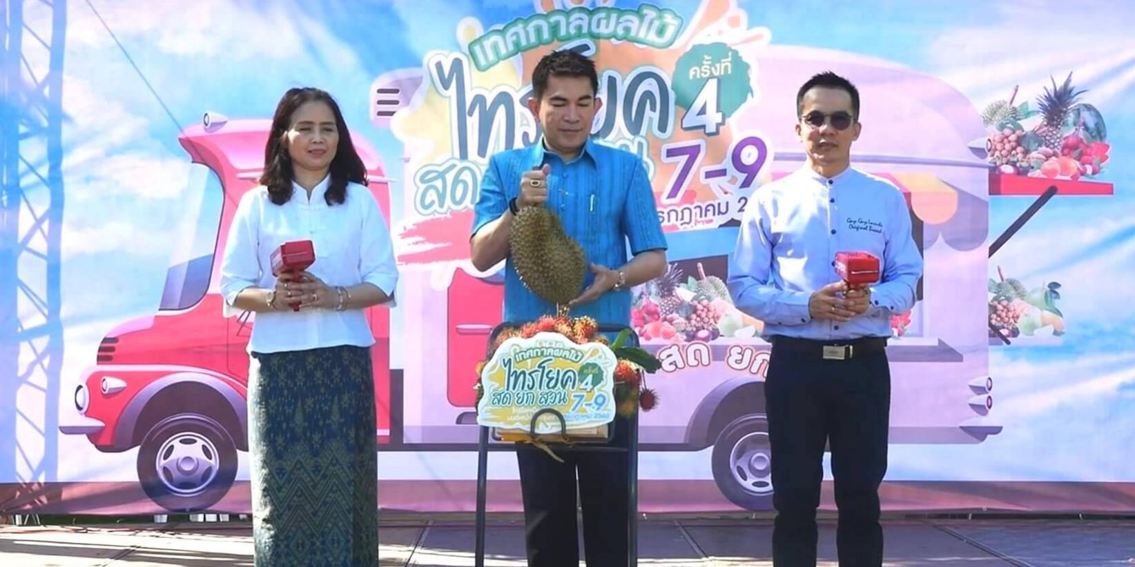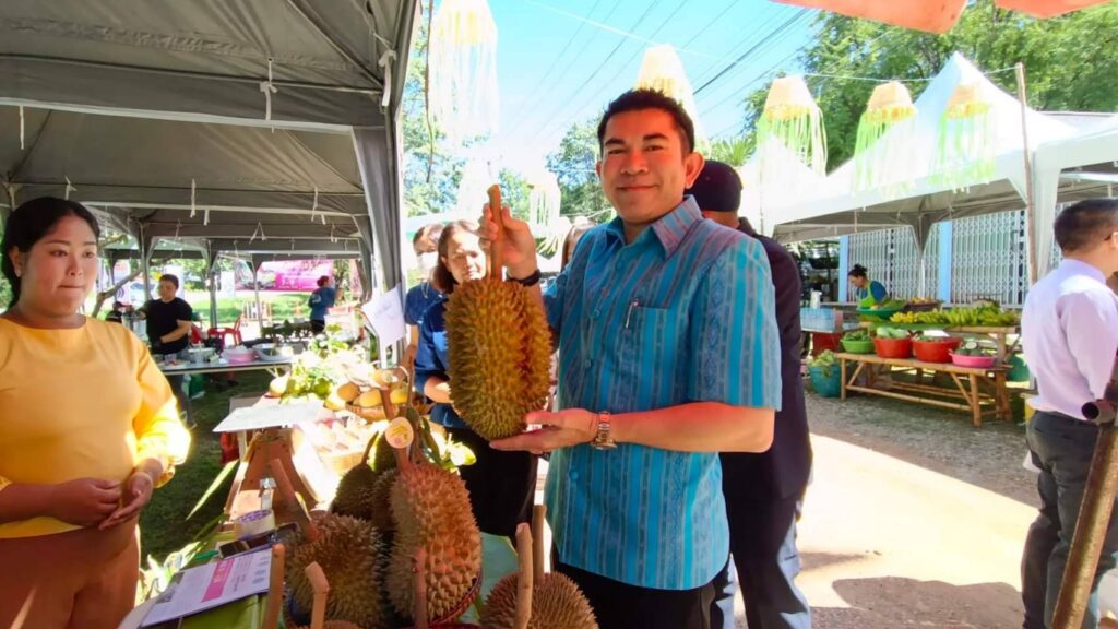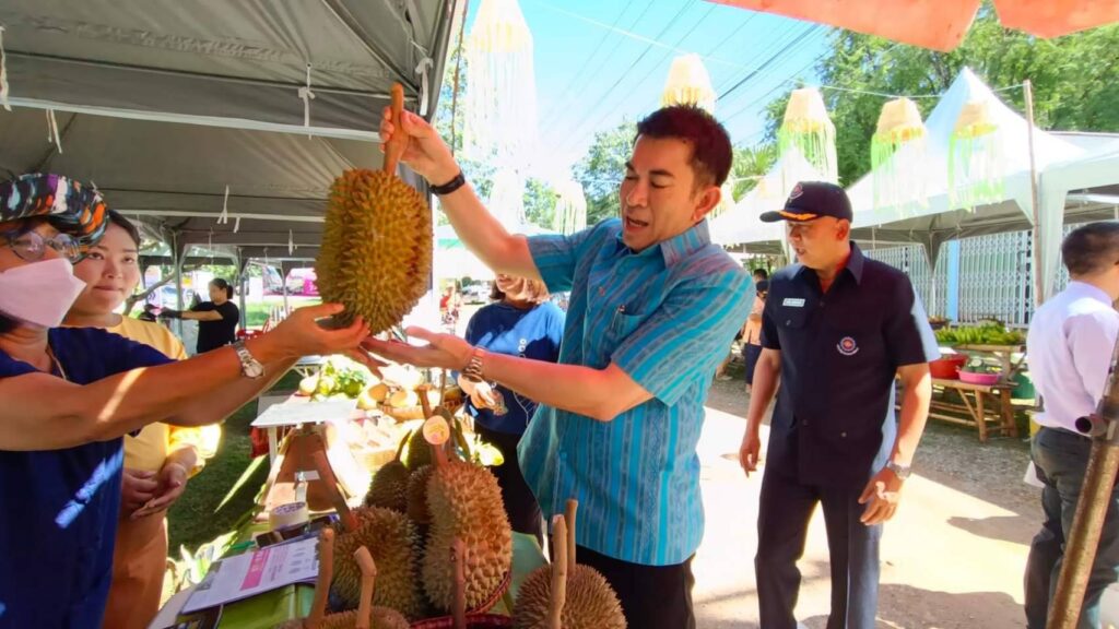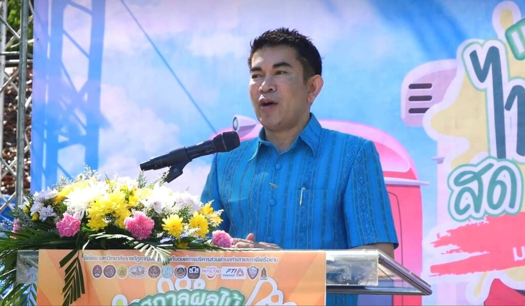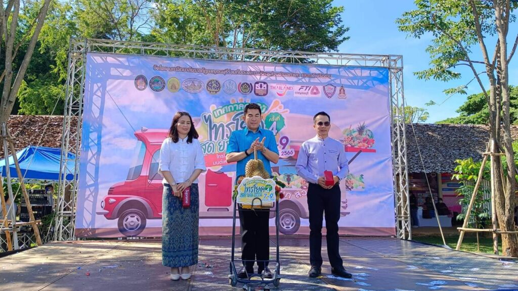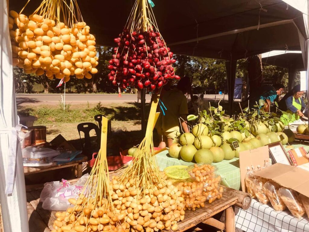 วันที่ 8 กรกฏาคม2566 เวลา 09.00น.ที่ ลานกิจกรรมหน้าวัดพุตะเคียน อำเภอไทรโยค จังหวัดกาญจนบุรี นายอธิสรรค์ อินทร์ตรา รองผู้ว่าราชการจังหวัดกาญจนบุรี เป็นประธานเปิดงานฯ นายชัยเฉลิม นุชนุ่ม นายกองค์การบริหารส่วนตำบลท่าเสา กล่าวต้อนรับ พระครูกาญจนสูตรภรณ์ เจ้าคณะอำเภอไทรโยค พระครูสุทธิสารโสภิต รองเจ้าคณะอำเภอไทรโยค เจ้าอาวาสวัดพุตะเคียน พร้อมหัวหน้าส่วนราชการ ผู้บริหารและคณะครูมหาวิทยาลัยราชภัฏกาญจนบุรี องค์กรปกครองส่วนท้องถิ่น เกษตรกร และชุมชน เข้าร่วมงาน โดยมีผู้ช่วยศาสตราจารย์ ดร.ขวัญนรี กล้าปราบโจร รองอธิการบดีมหาวิทยาลัยราชภัฏกาญจนบุรี กล่าวรายงานถึงวัตถุประสงค์ของงาน “ไทรโยคเมืองไม้ผล มนต์เสน่ห์แห่งขุนเขา ” พร้อมด้วย ผศ.จรายุทธ ประทีปวรกาญจน์ รองอธิการบดีมหาวิทยาลัยราชภัฏฯ โดยความร่วมมือขององค์การบริหารส่วนตำบลท่าเสา และภาคีเครือข่ายต่างๆทั้งภาครัฐและเอกชน ภายใต้โครงการยุทธศาสตร์มหาวิทยาลัยราชภัฏเพื่อการพัฒนาท้องถิ่น