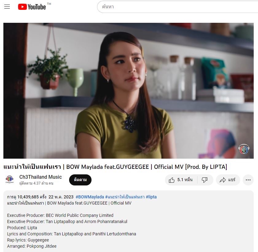 ติดตาม MV ช่องทาง >> https://www.youtube.com/watch?v=xkNAtS7_l9o #MVแนะนำให้เป็นแฟนเรา#BOWMaylada#GUYGEEGEE #LIPTA #Ch3ThailandMusic #3Plus#BOWMaylada #GUYGEEGEE #LIPTA #Ch3ThailandMusic #3Plus ติดตามข่าวสารเพิ่มเติมที่ Ch3Thailand